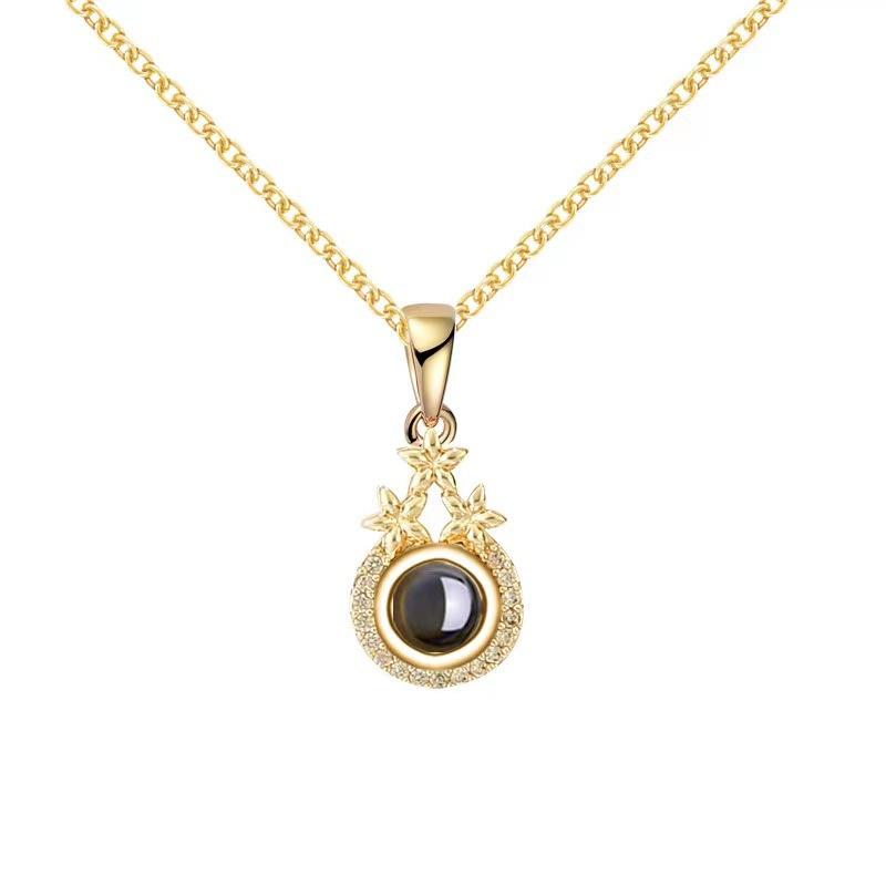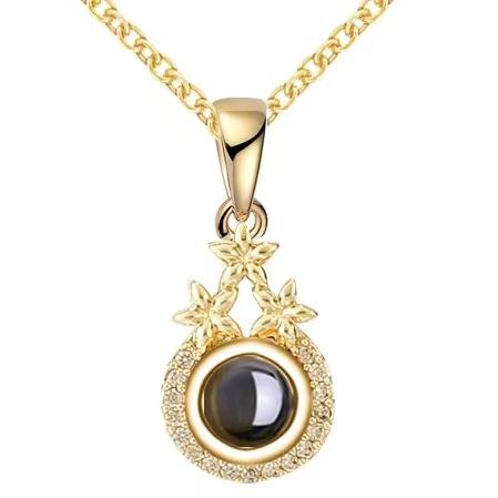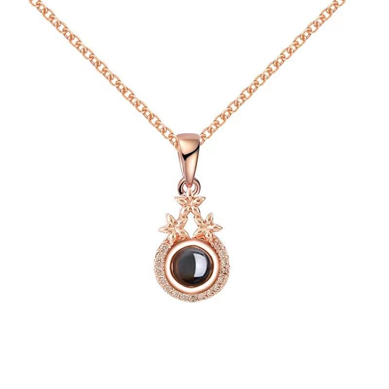 Collar de proyección redondo bañado en cobre, 100 idiomas, te amo, estrella de cinco puntas, cadena de clavícula de moda, personalización de imágenes