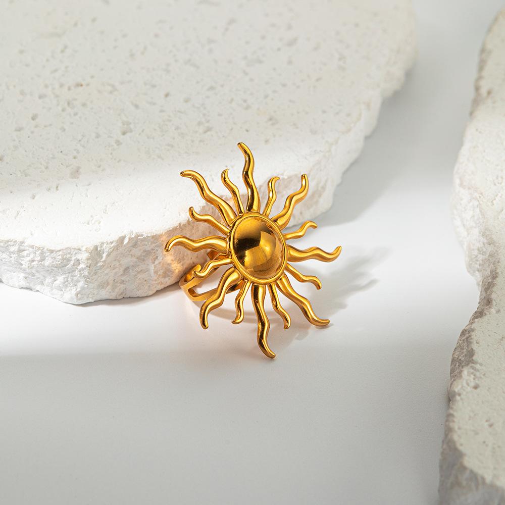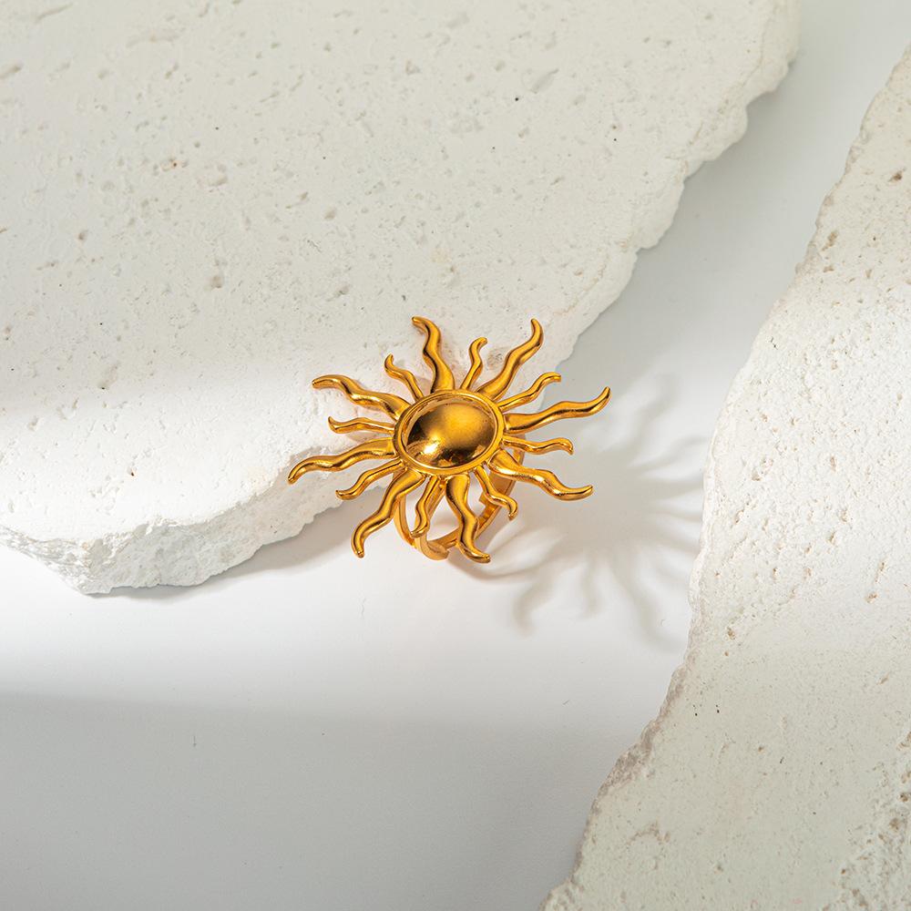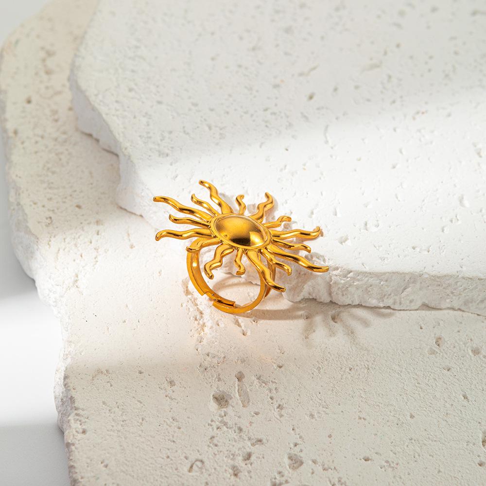 Anillo de diseño de apertura de girasol pequeño estilo INS transfronterizo de Europa y Estados Unidos, accesorio de moda de lujo de alta gama antiguo