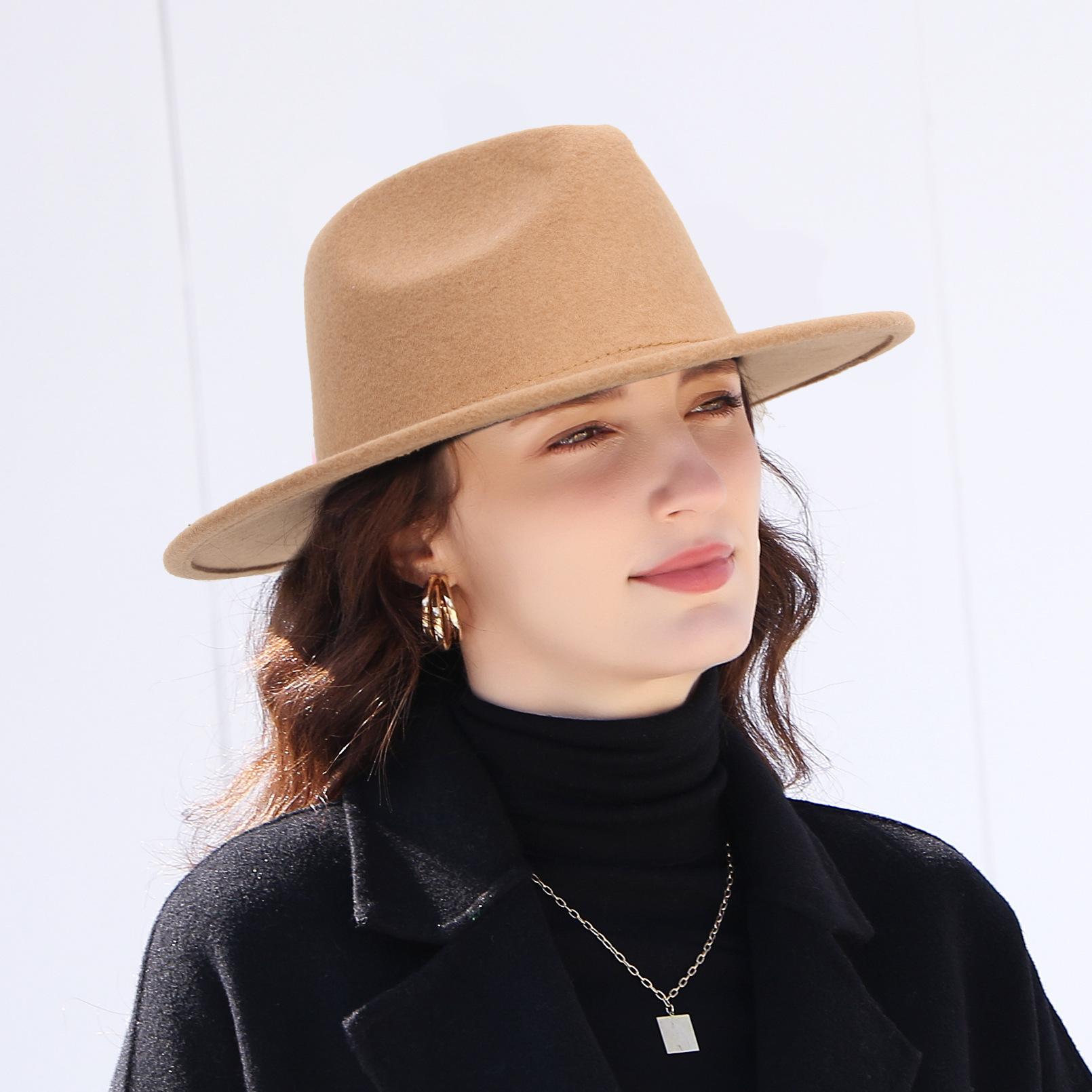 El Sombrero Fedora de Ala Ancha Transfronterizo de Nuevo Estilo de Amazon es un Sombrero Fedora de Lana Retro de Venta Caliente para Mujeres, a la Moda