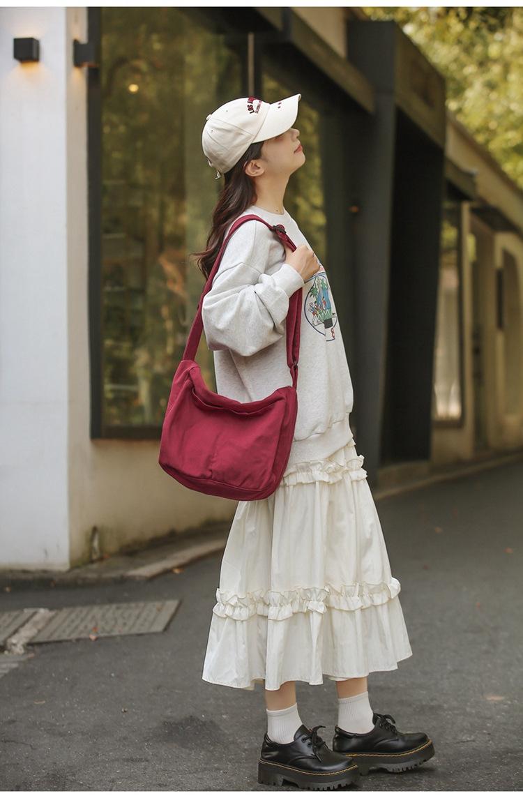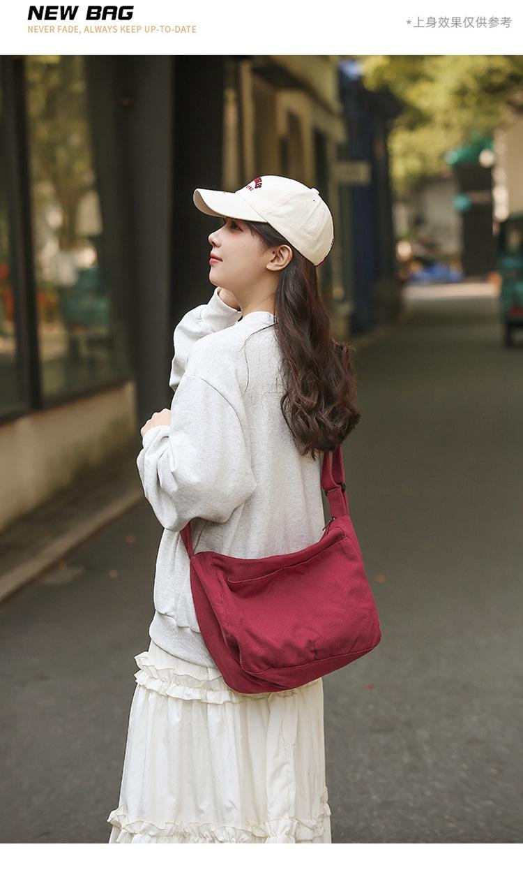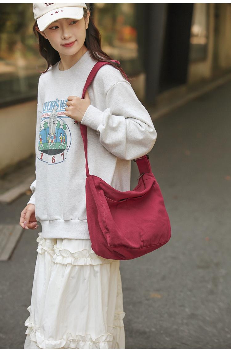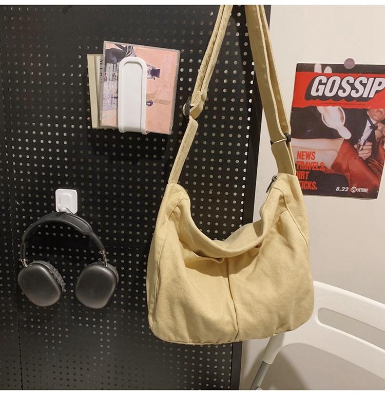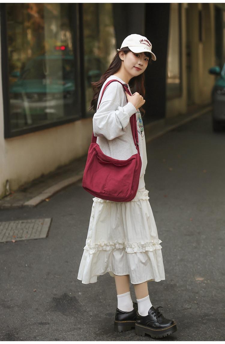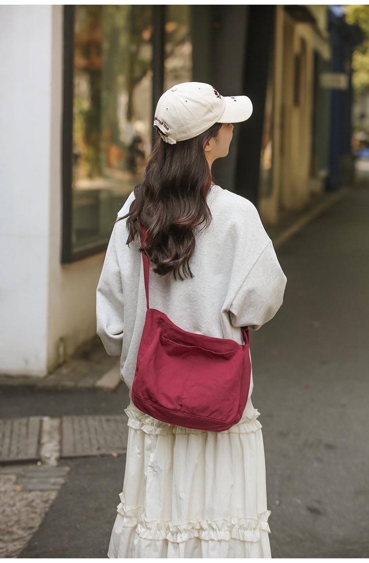 Bolso bandolera para mujer, estilo universitario, bolso de clase, estilo japonés, bolso de lona de gran capacidad, color sólido, bolso de hombro tipo tote.