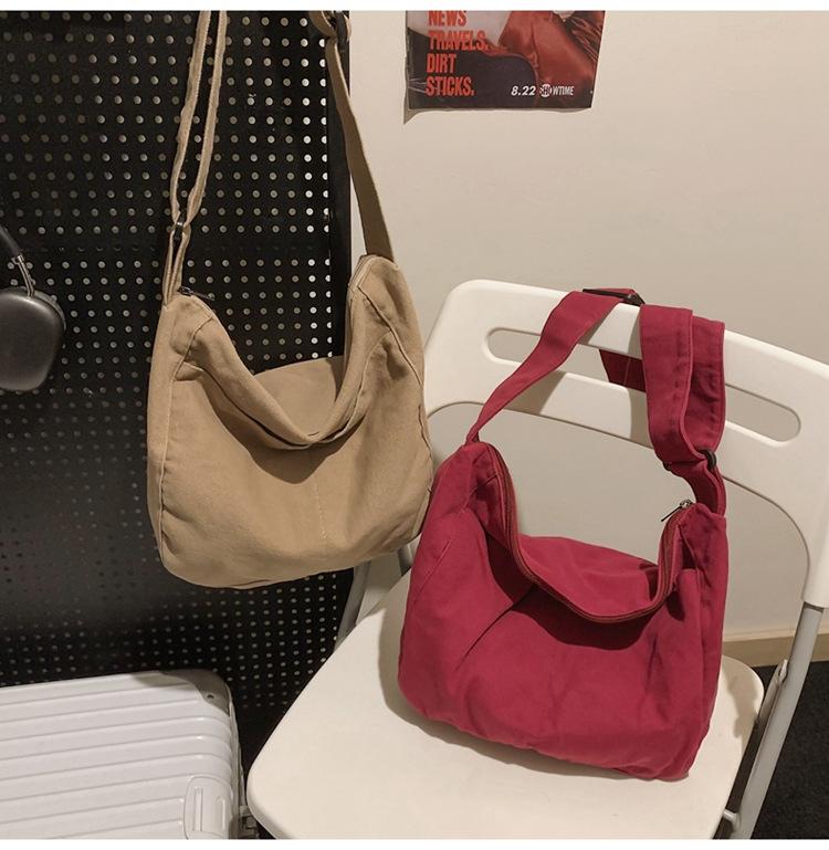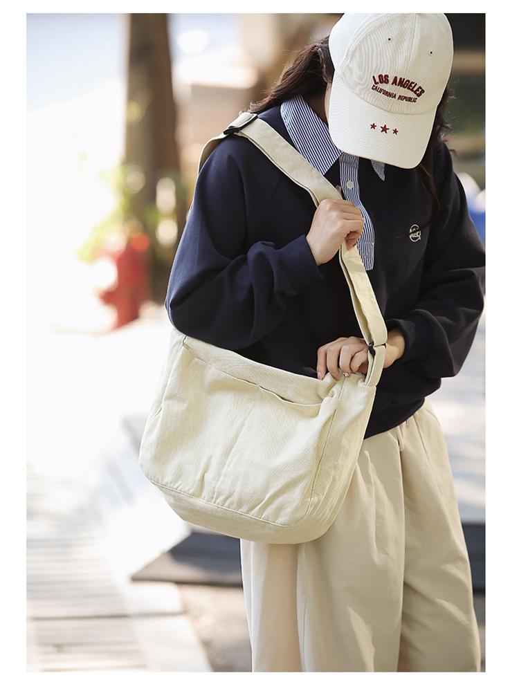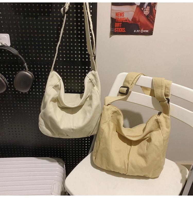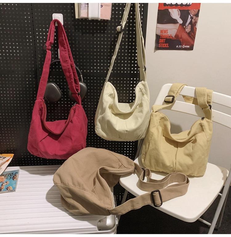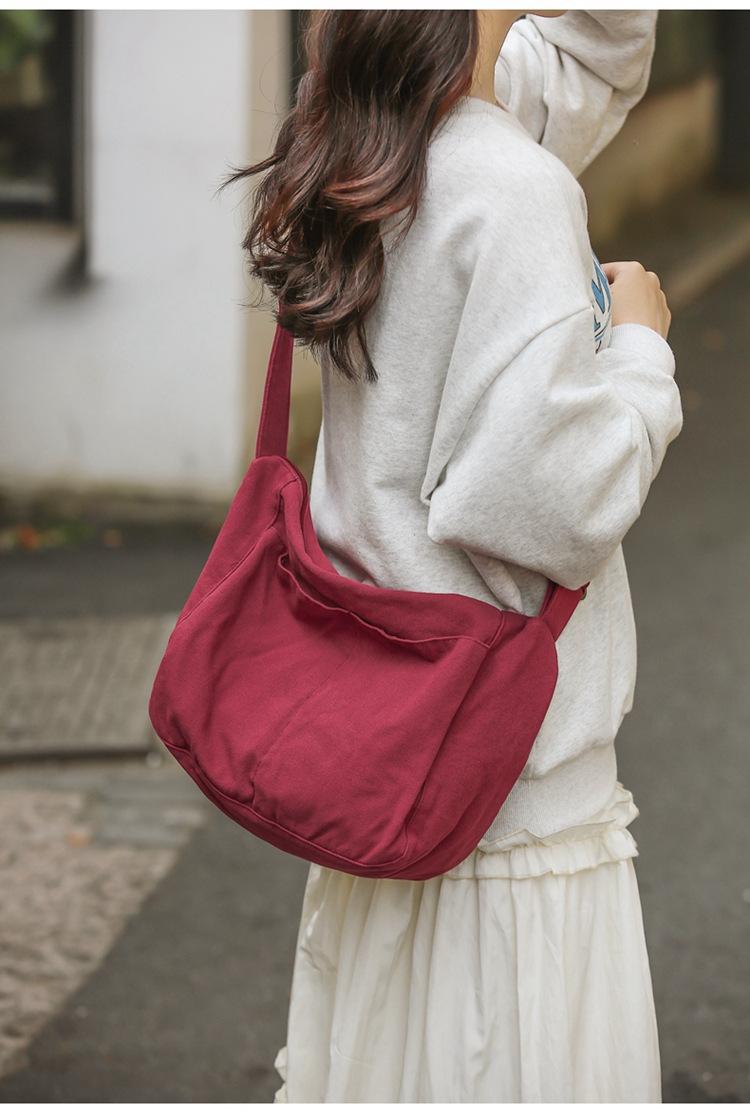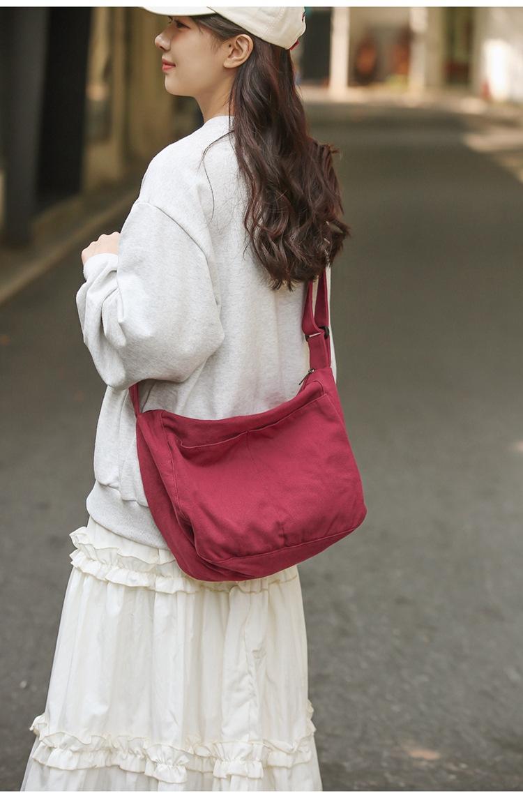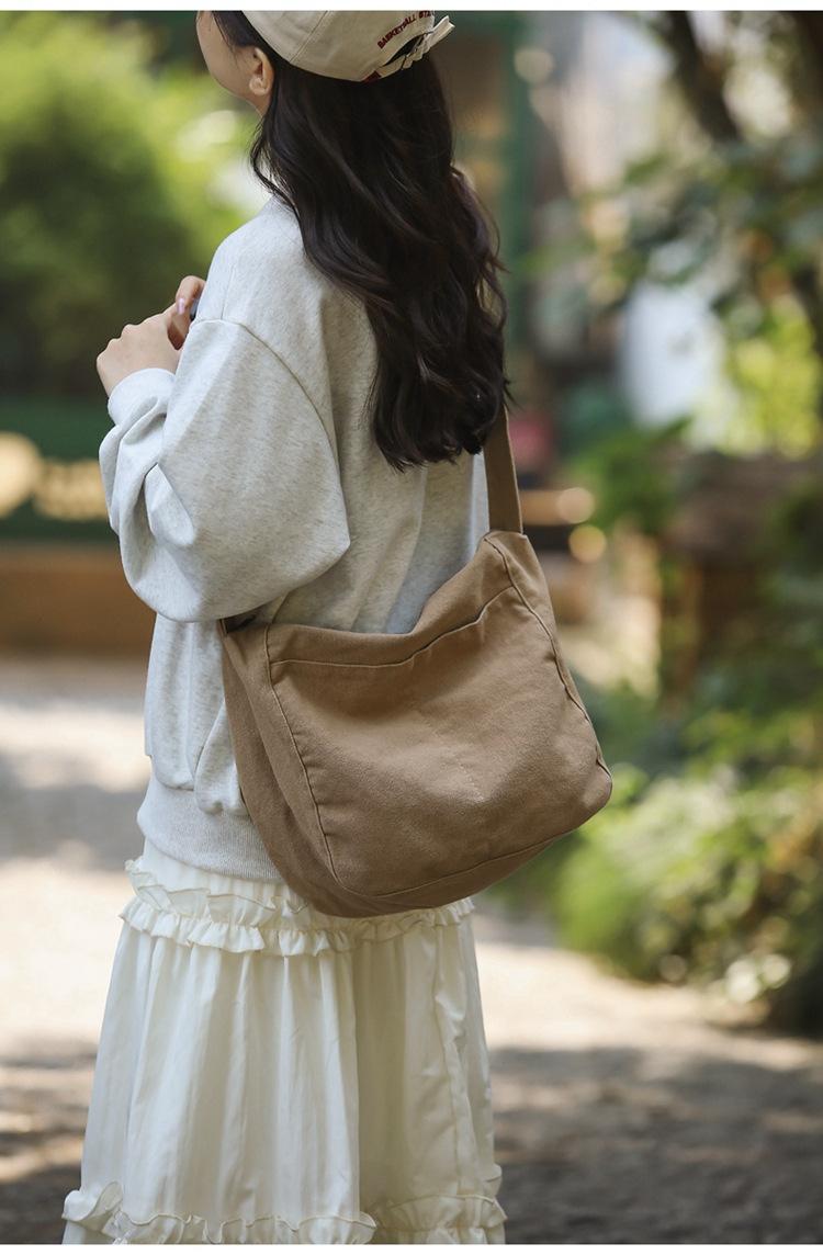 Bolso bandolera para mujer, estilo universitario, bolso de clase, estilo japonés, bolso de lona de gran capacidad, color sólido, bolso de hombro tipo tote.