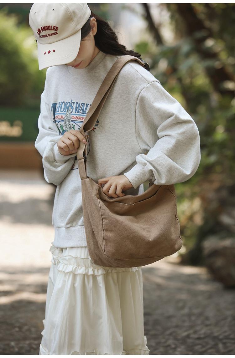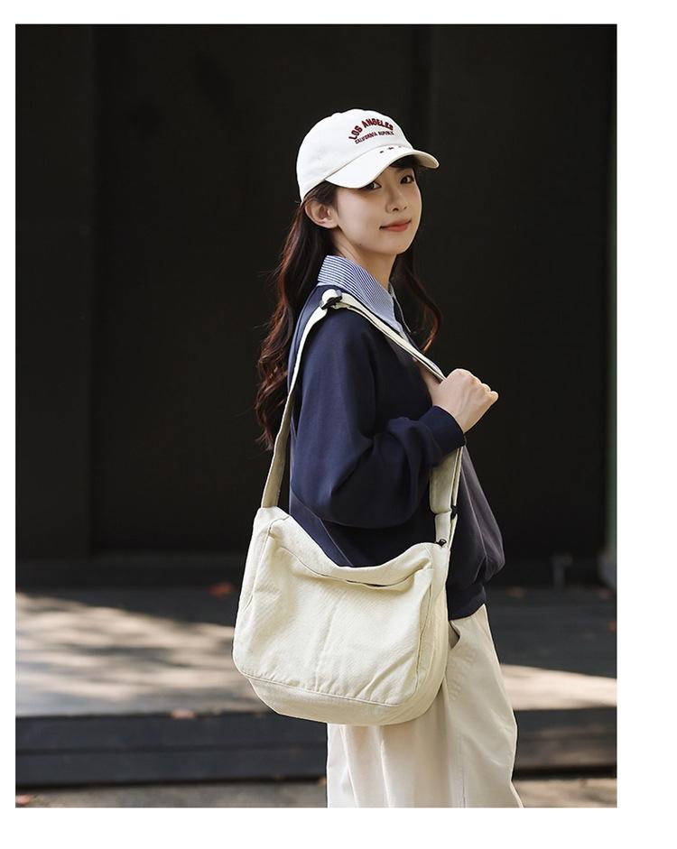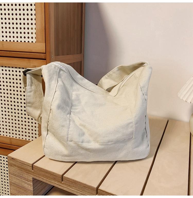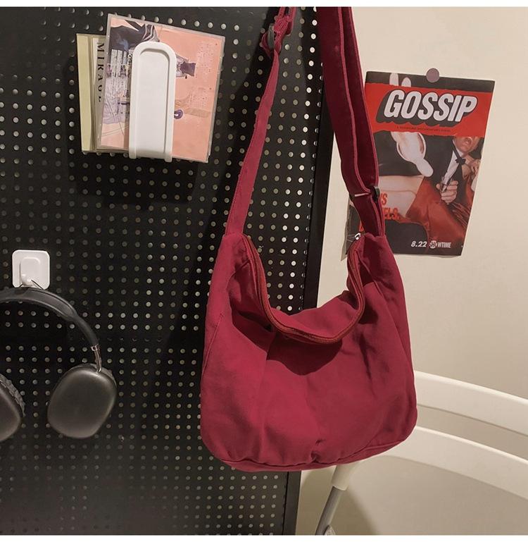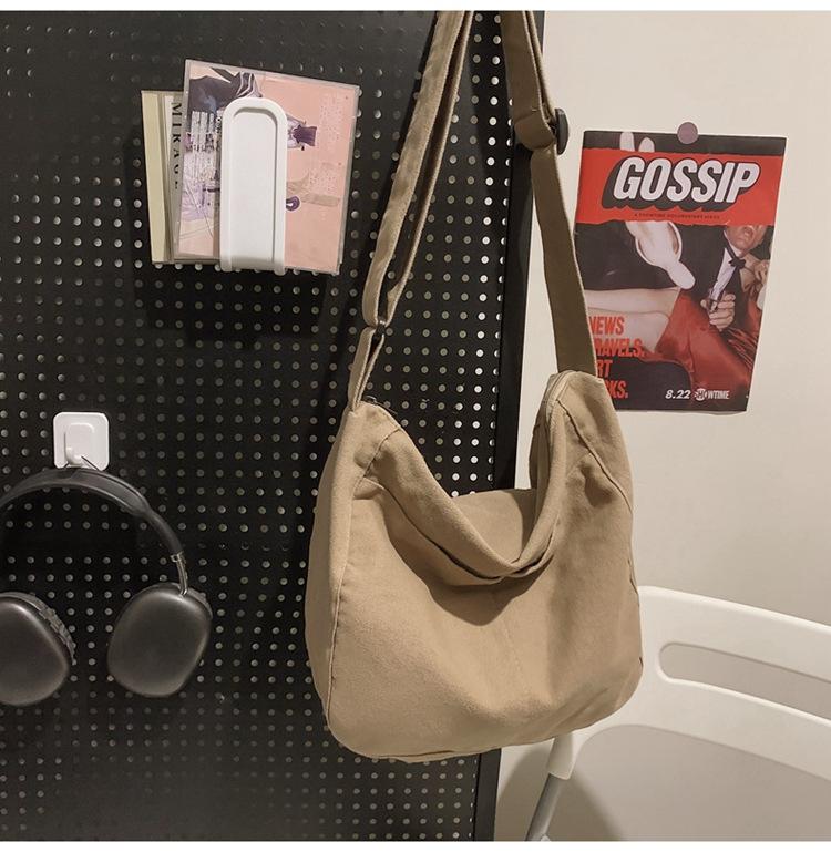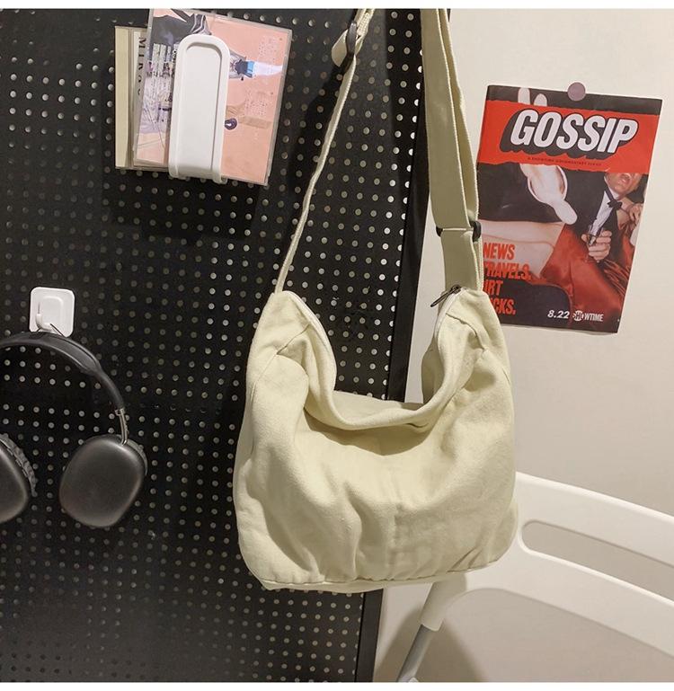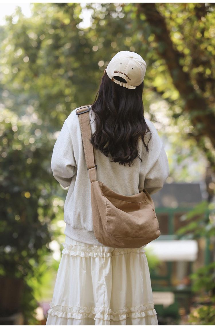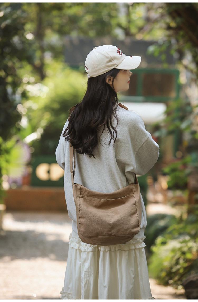Bolso bandolera para mujer, estilo universitario, bolso de clase, estilo japonés, bolso de lona de gran capacidad, color sólido, bolso de hombro tipo tote.