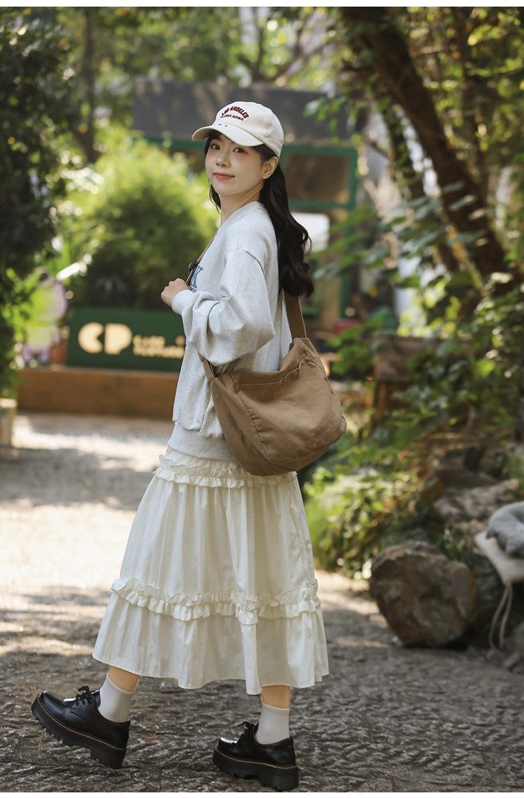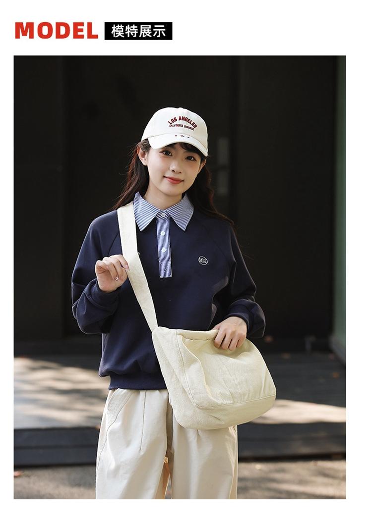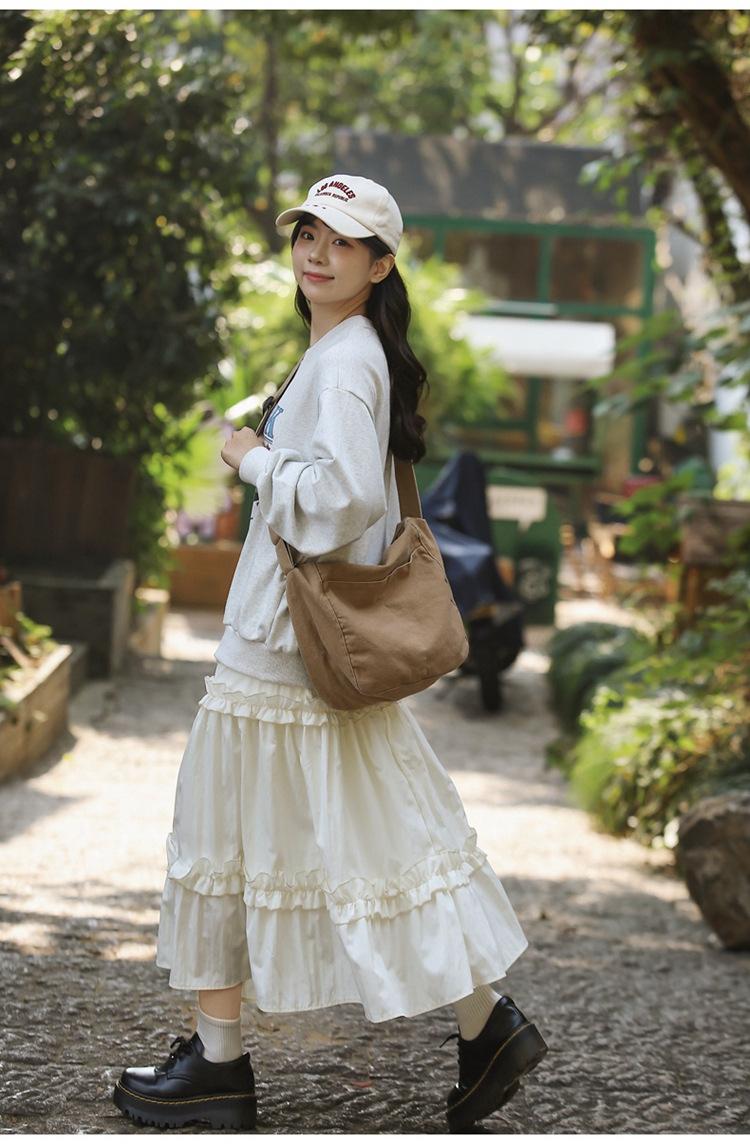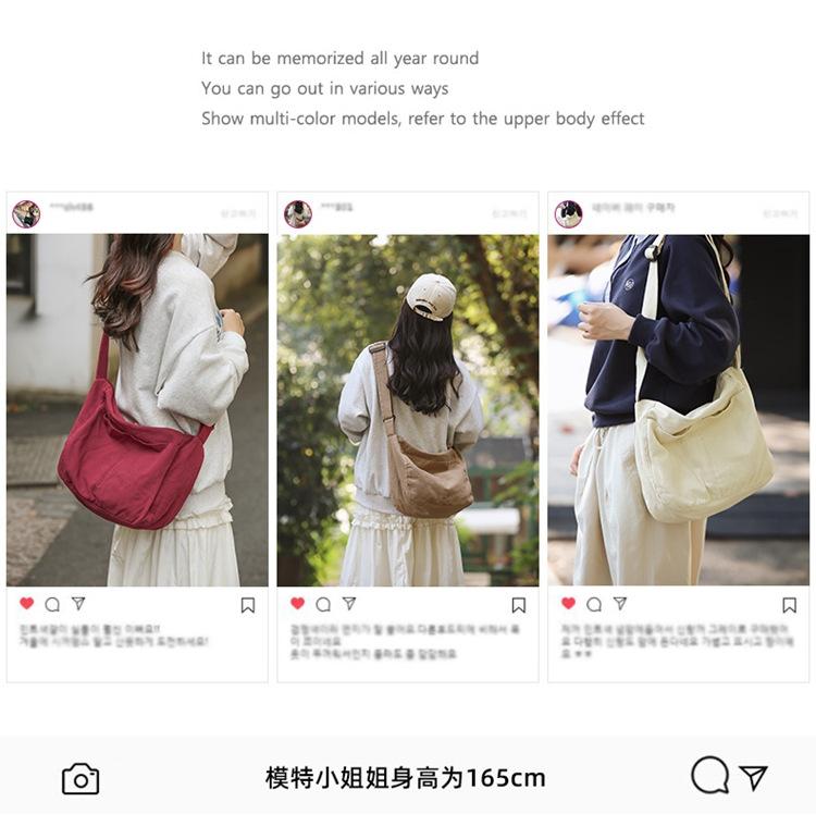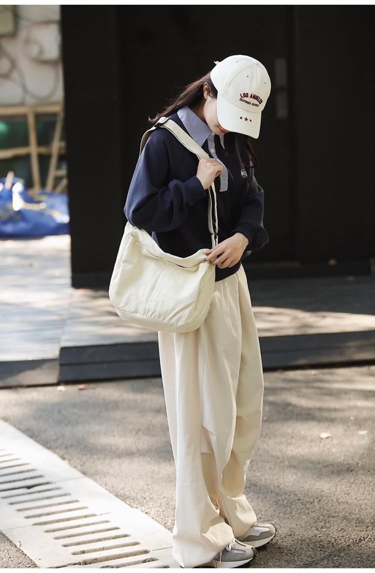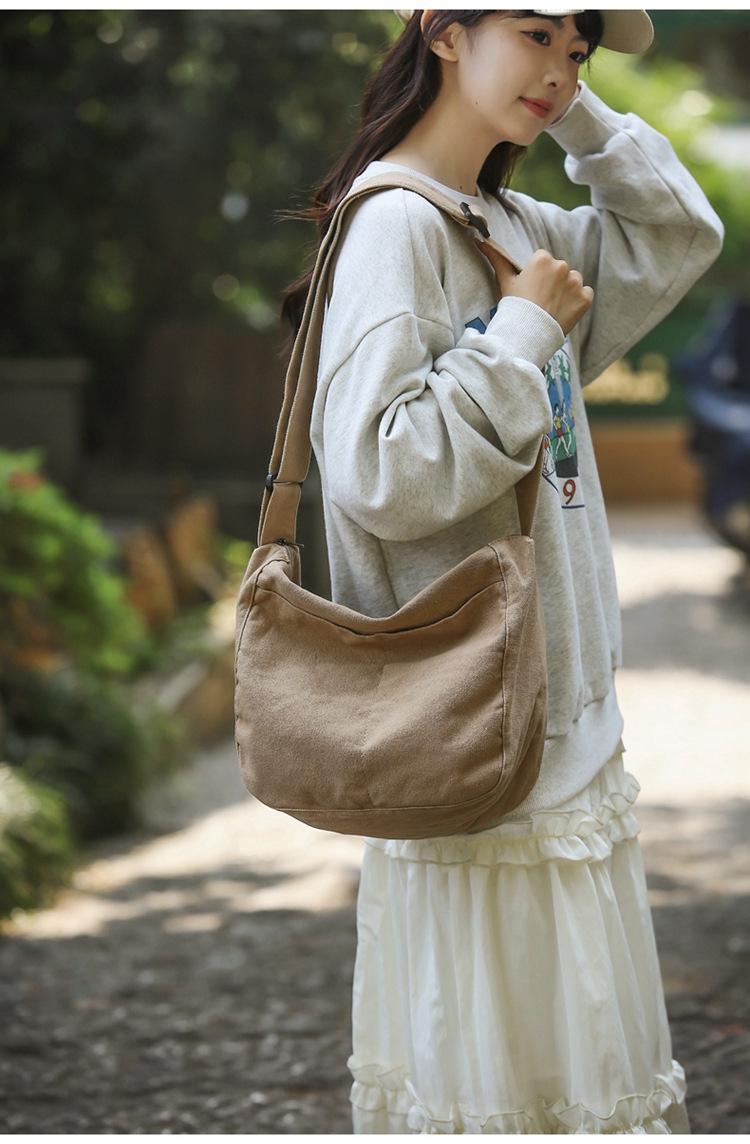 Bolso bandolera para mujer, estilo universitario, bolso de clase, estilo japonés, bolso de lona de gran capacidad, color sólido, bolso de hombro tipo tote.