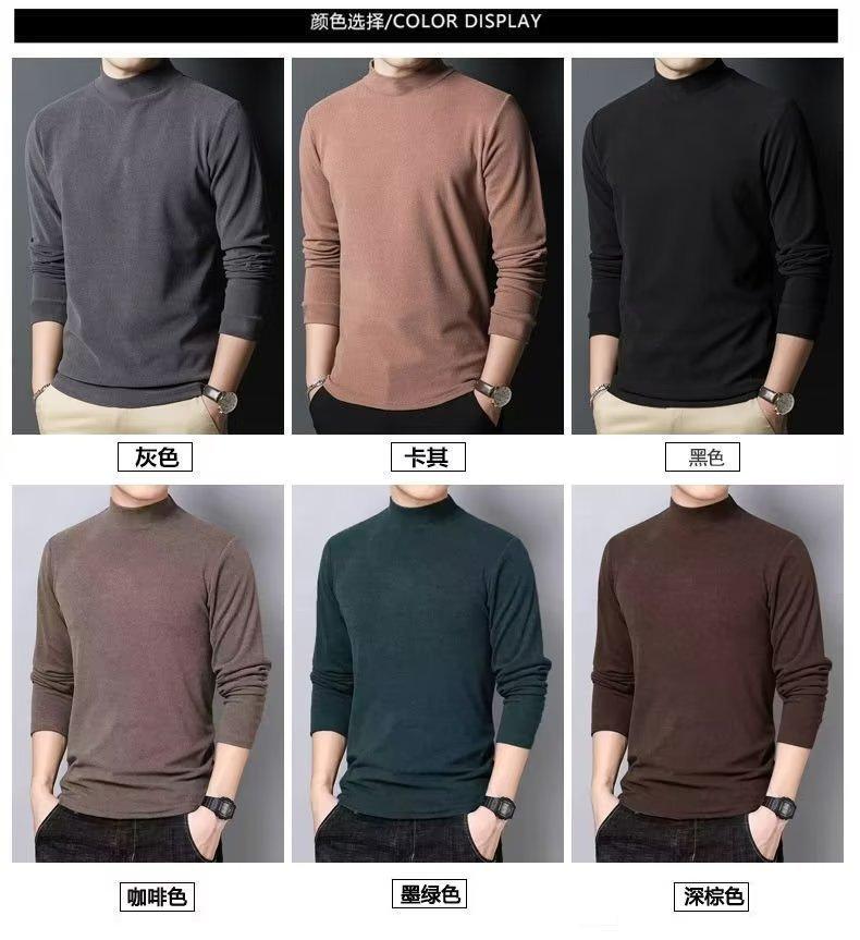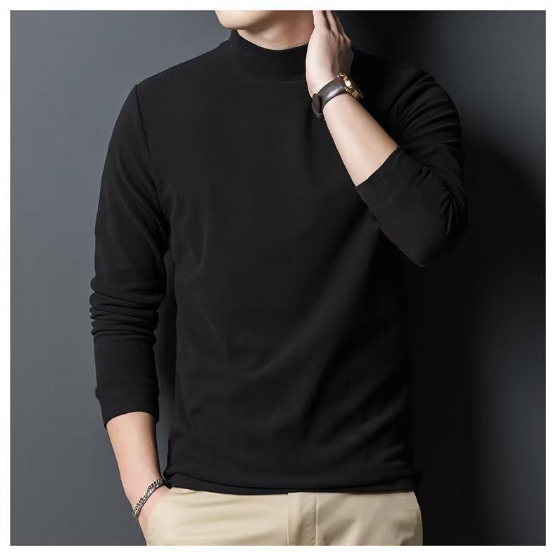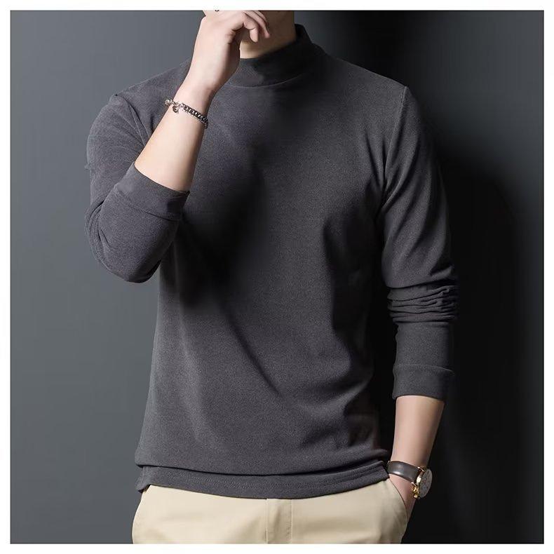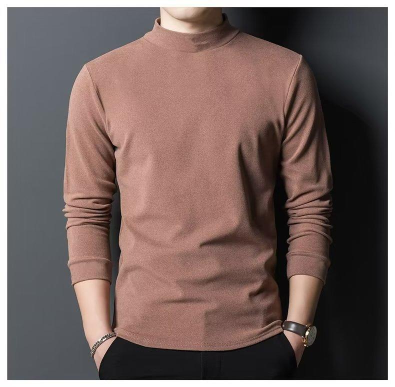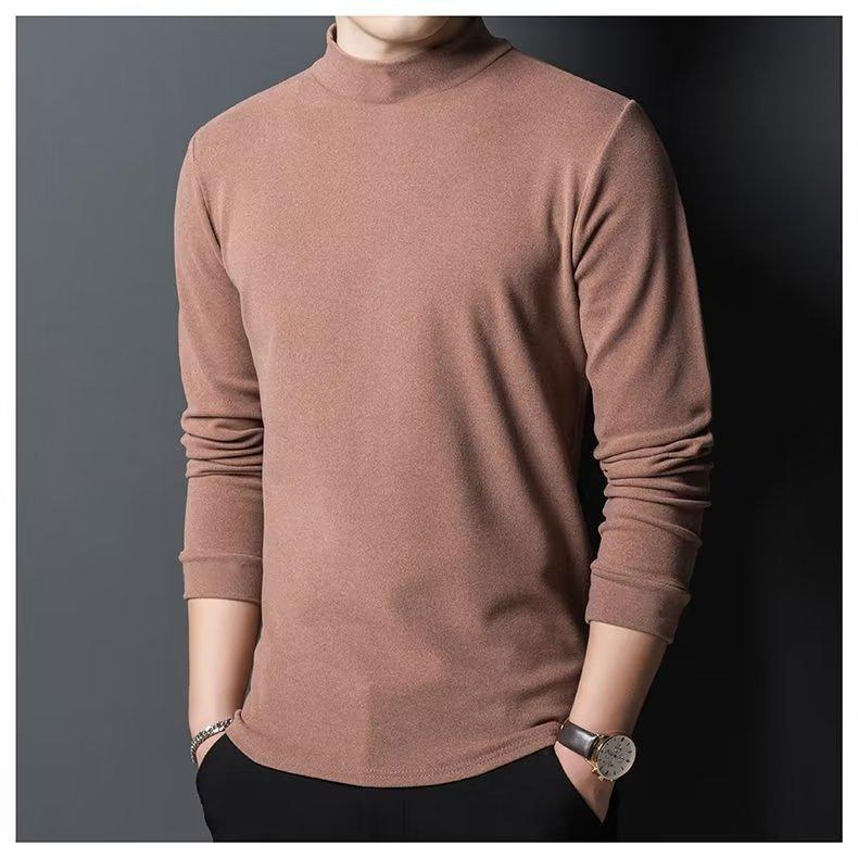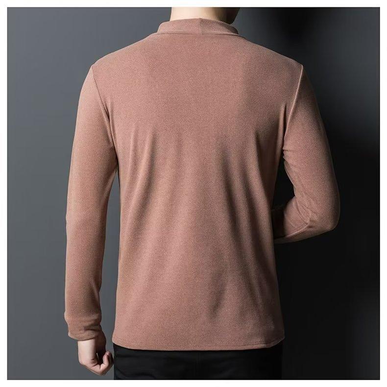 Camisa de manga larga con cuello medio y corte entallado de color liso para hombre de otoño e invierno con interior cepillado de terciopelo cálido y grueso