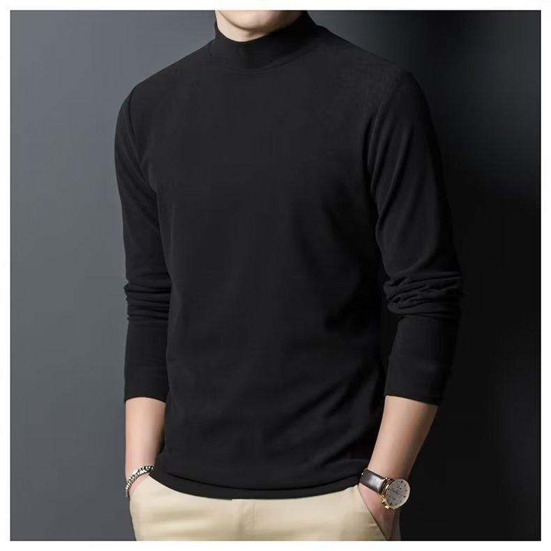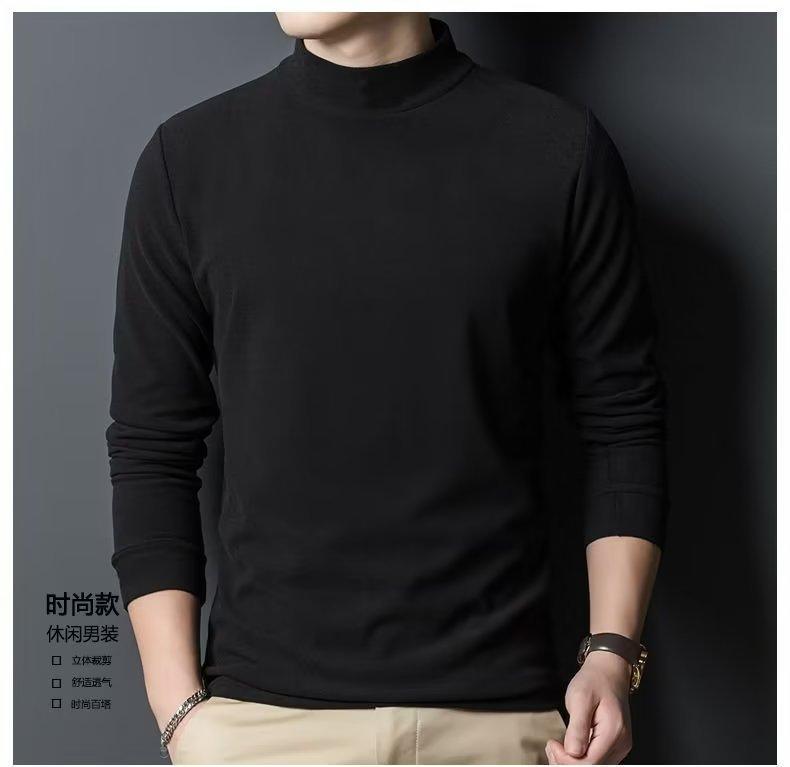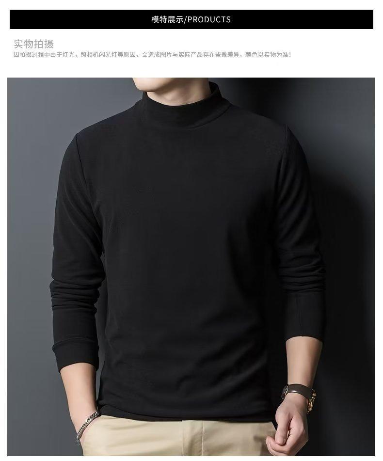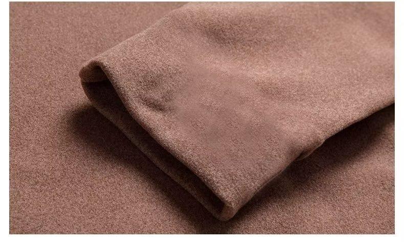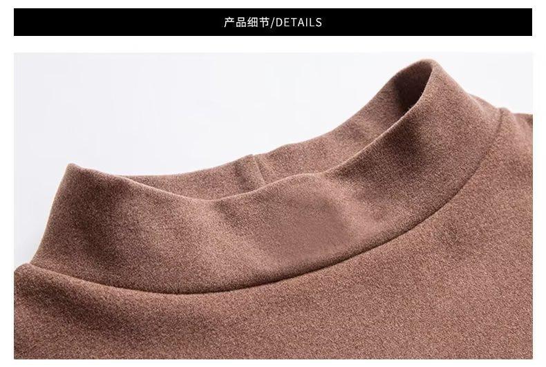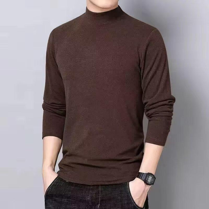 Camisa de manga larga con cuello medio y corte entallado de color liso para hombre de otoño e invierno con interior cepillado de terciopelo cálido y grueso