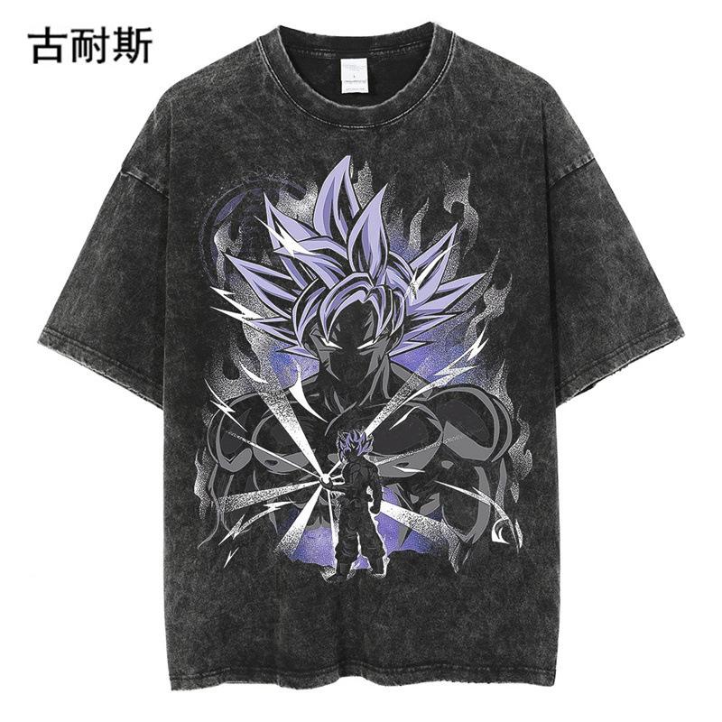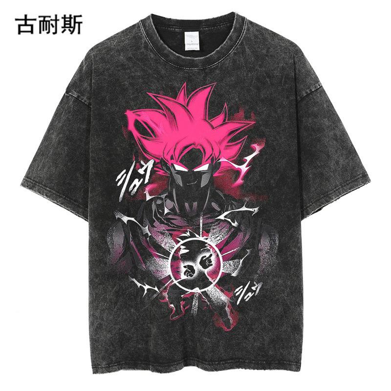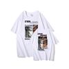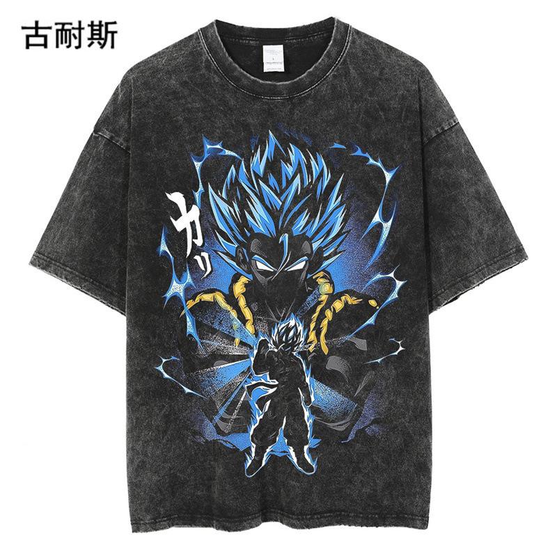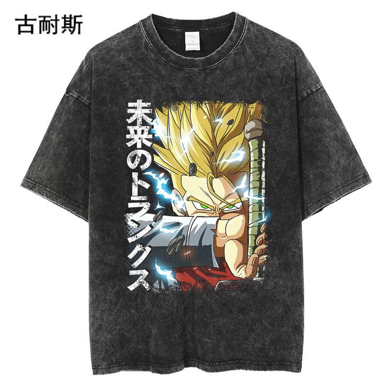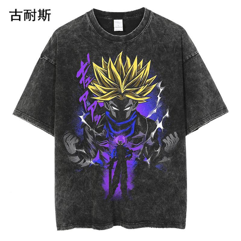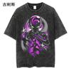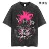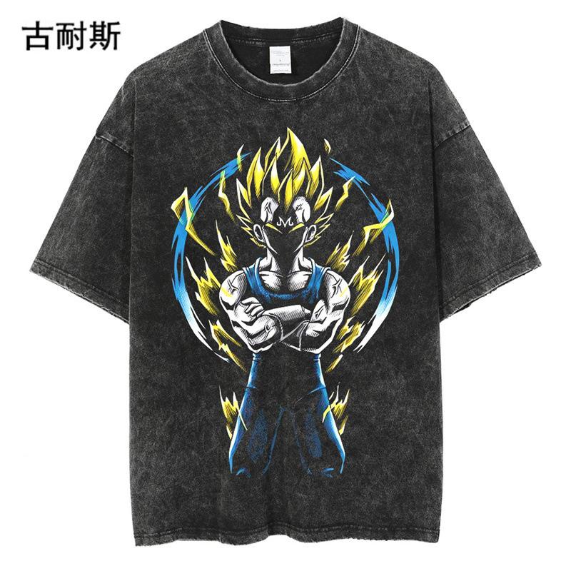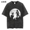 Camiseta de manga corta con cuello redondo, lavada, desgastada y retro transfronteriza, para hombre y mujer, camiseta juvenil de dibujos animados de calle de verano