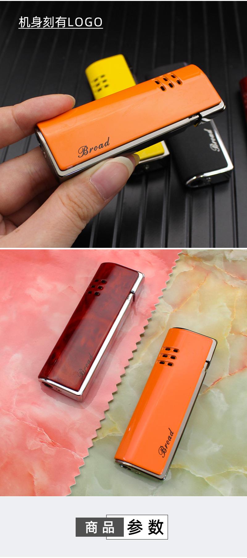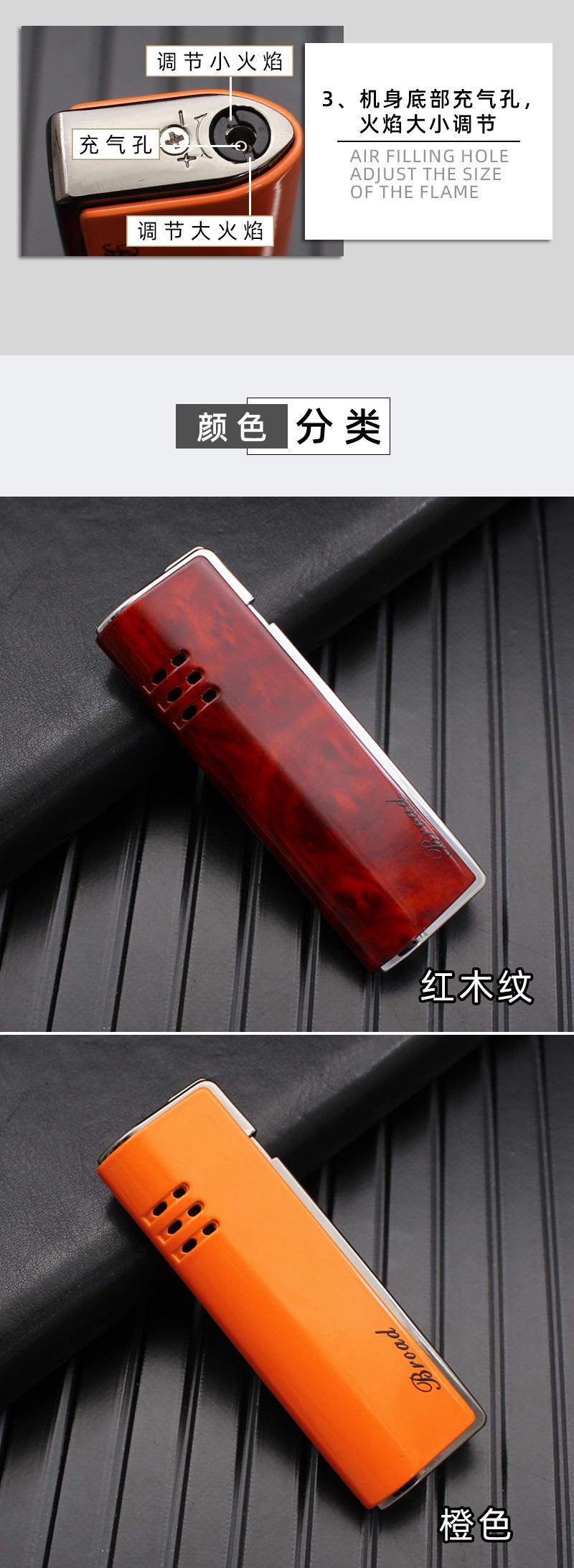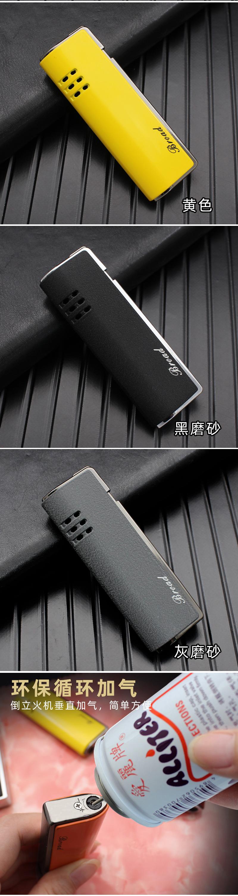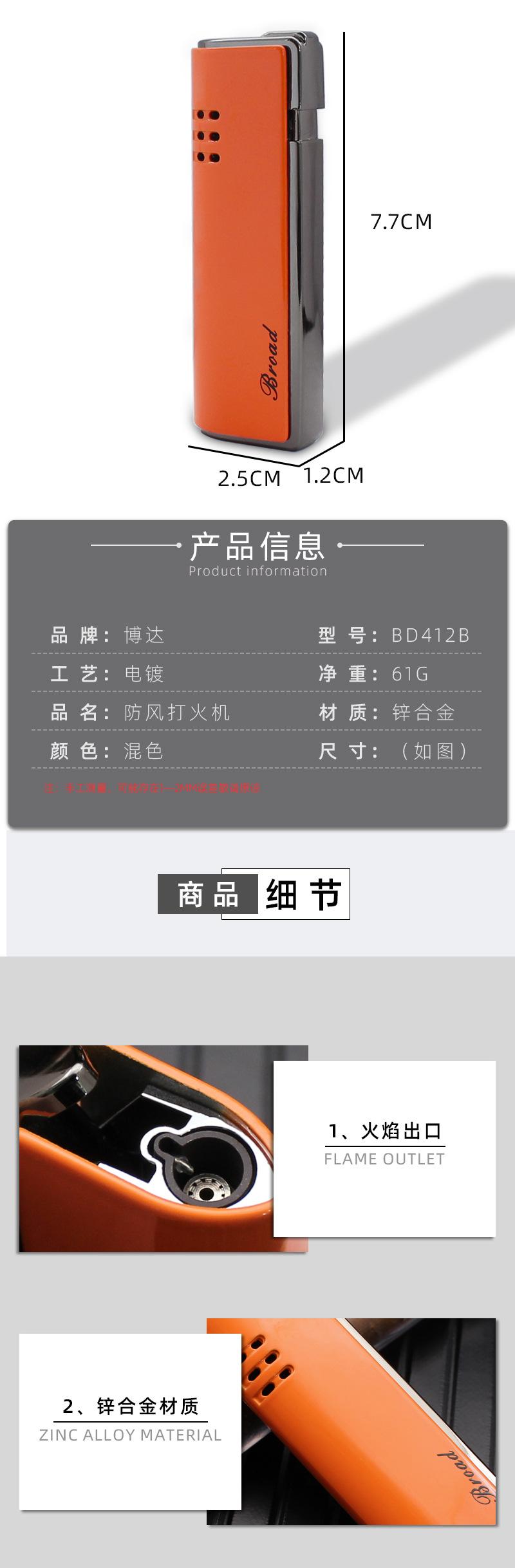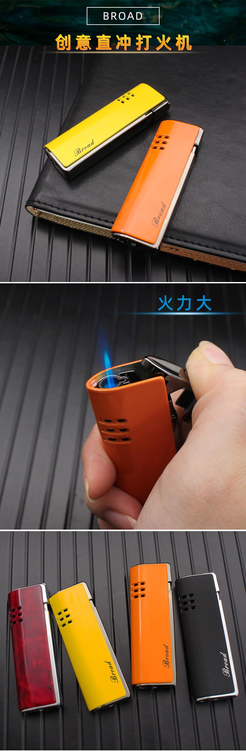 Encendedor de gas BD412B, creativo, recto, de metal, resistente al viento, para exteriores, para fumar, venta al por mayor