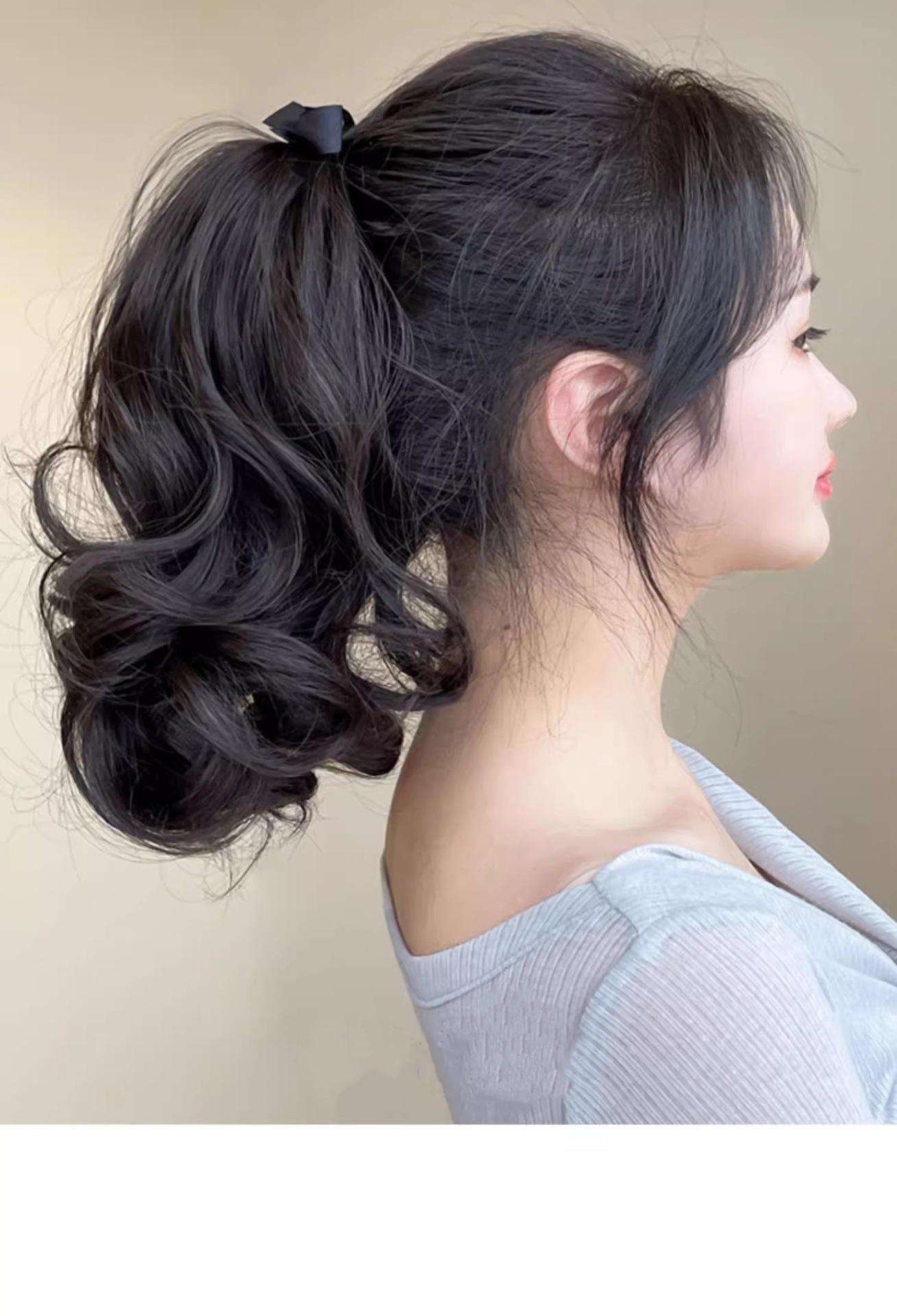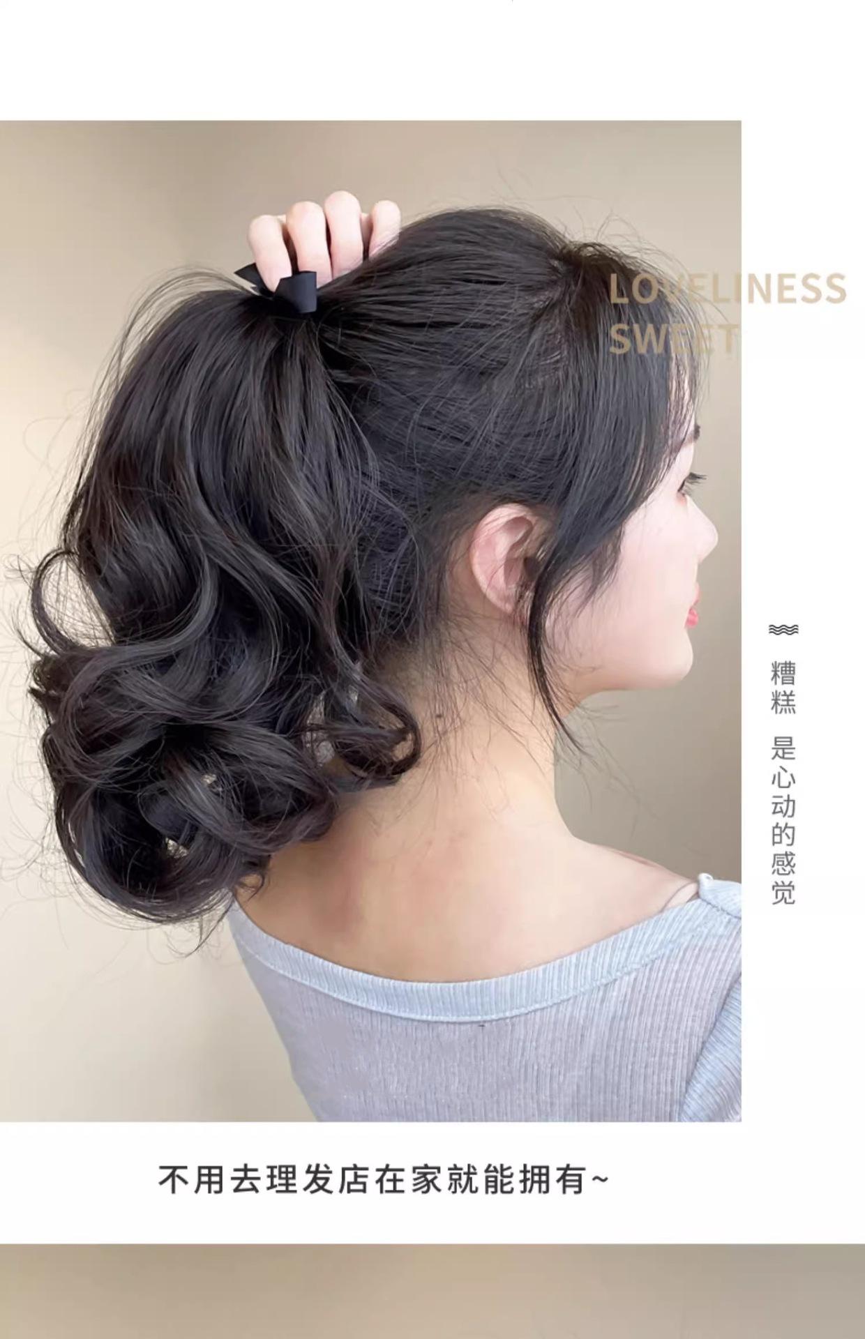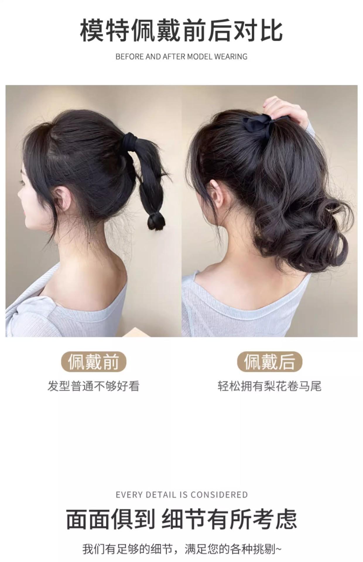 Peluca de Cola de Caballo de Flor de Pera Cabello Natural para Mujer Cabello Rizado Correa Clip de Cola de Caballo Corta Puede Atar Cola de Caballo Baja Trenza