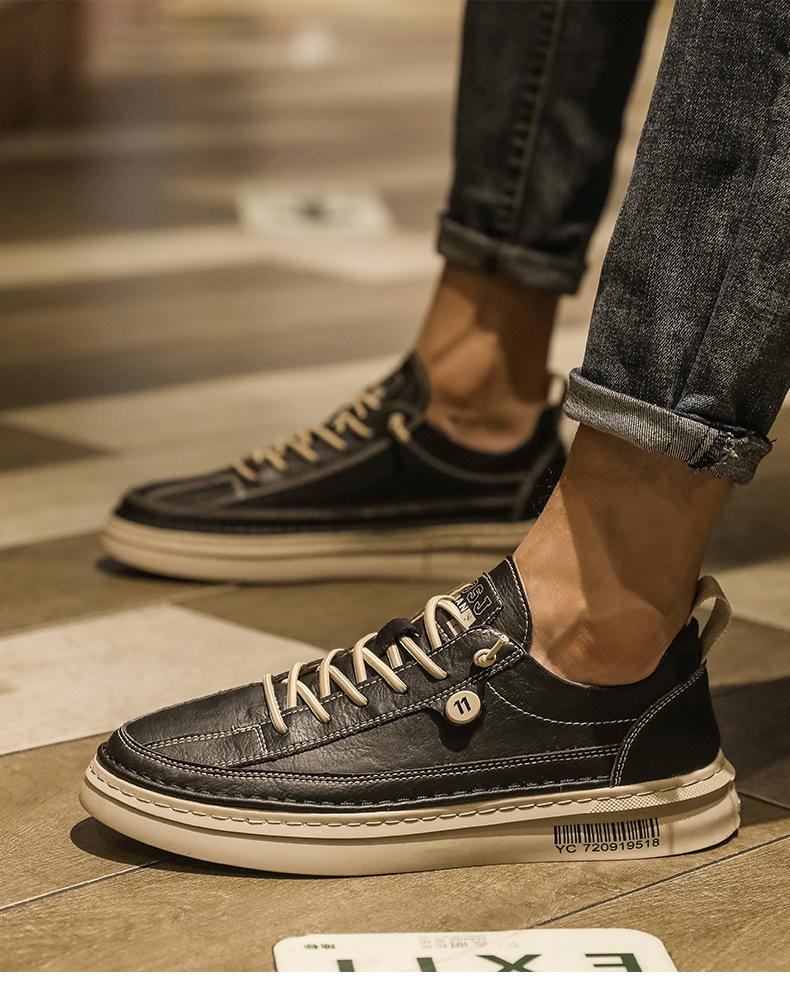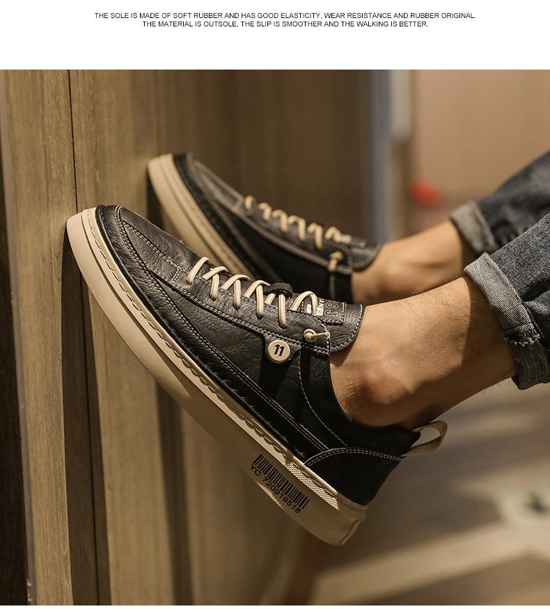 Zapatos de hombre Otoño 2020 Nuevos zapatos casuales de cuero británicos de moda para todo tipo de combinaciones Zapatillas negras antideslizantes impermeables para hombre Zapatos de moda