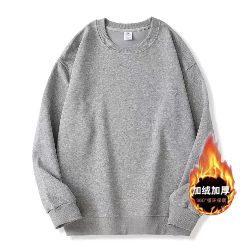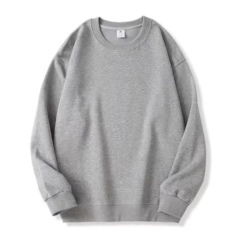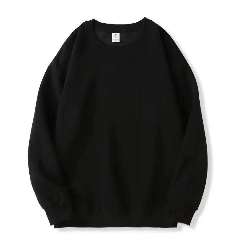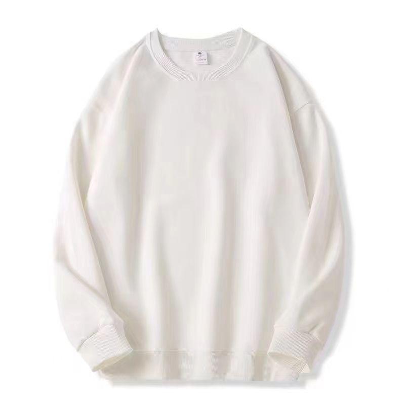 Suéter de cuello redondo de algodón chino con forro polar para primavera y otoño de 2023, suéter holgado de color sólido con hombros caídos para hombres y mujeres, simple