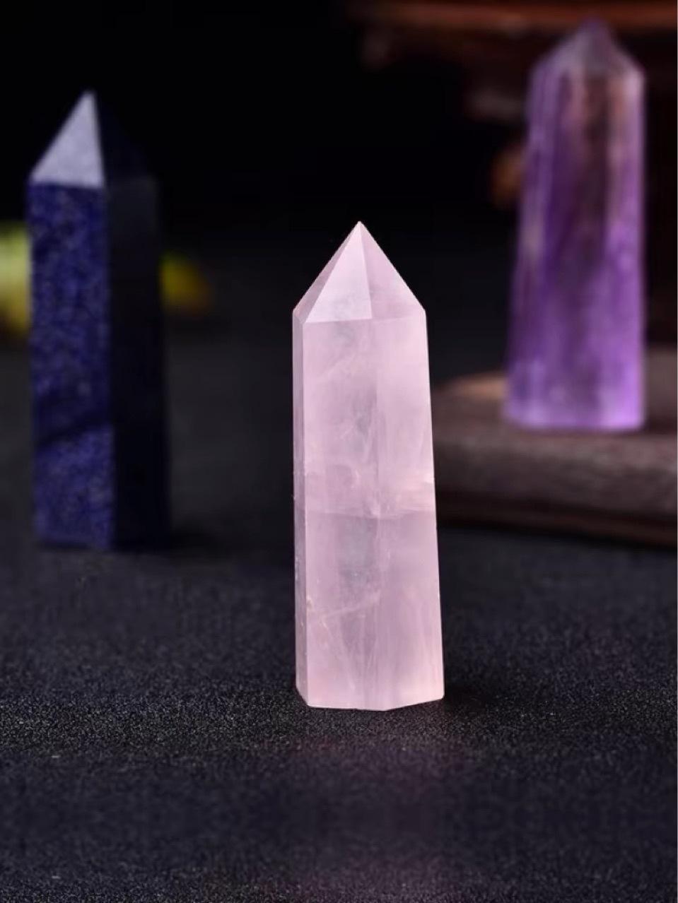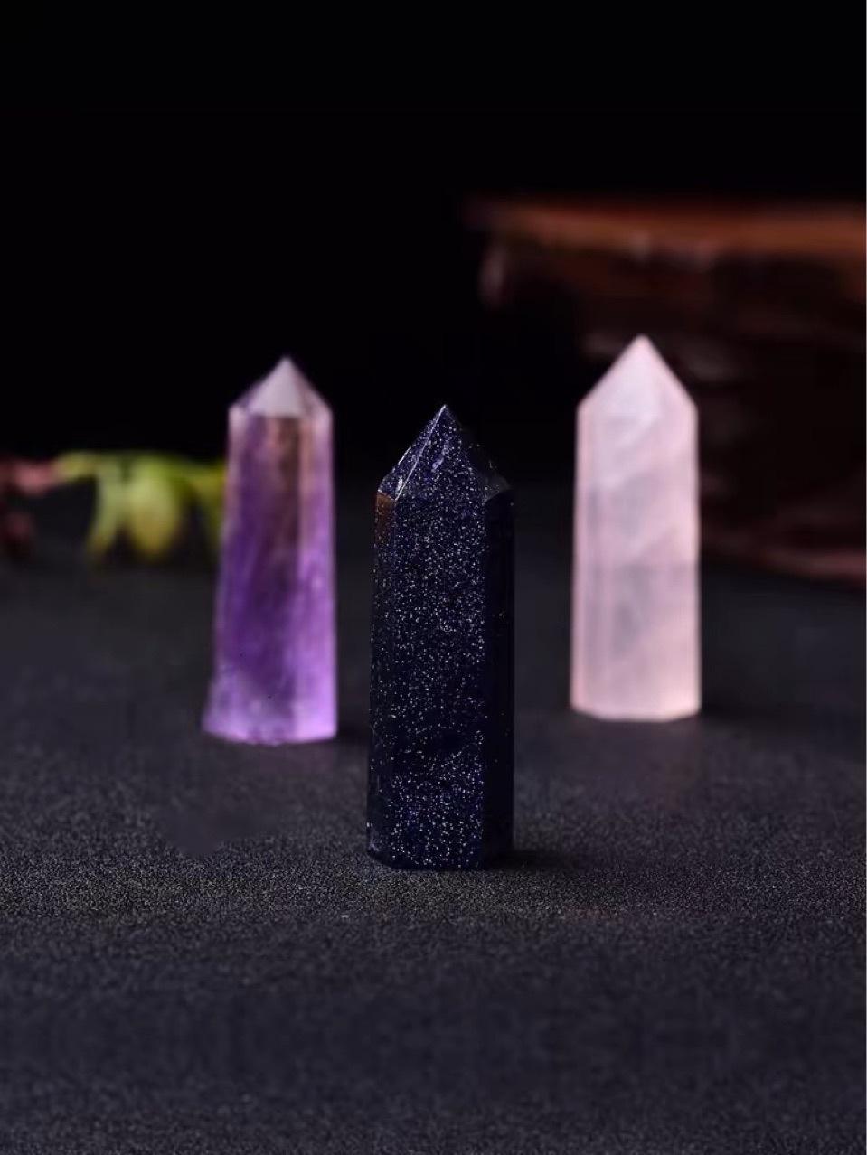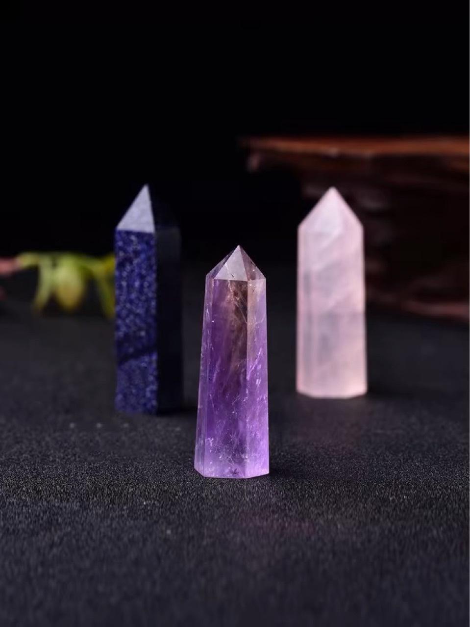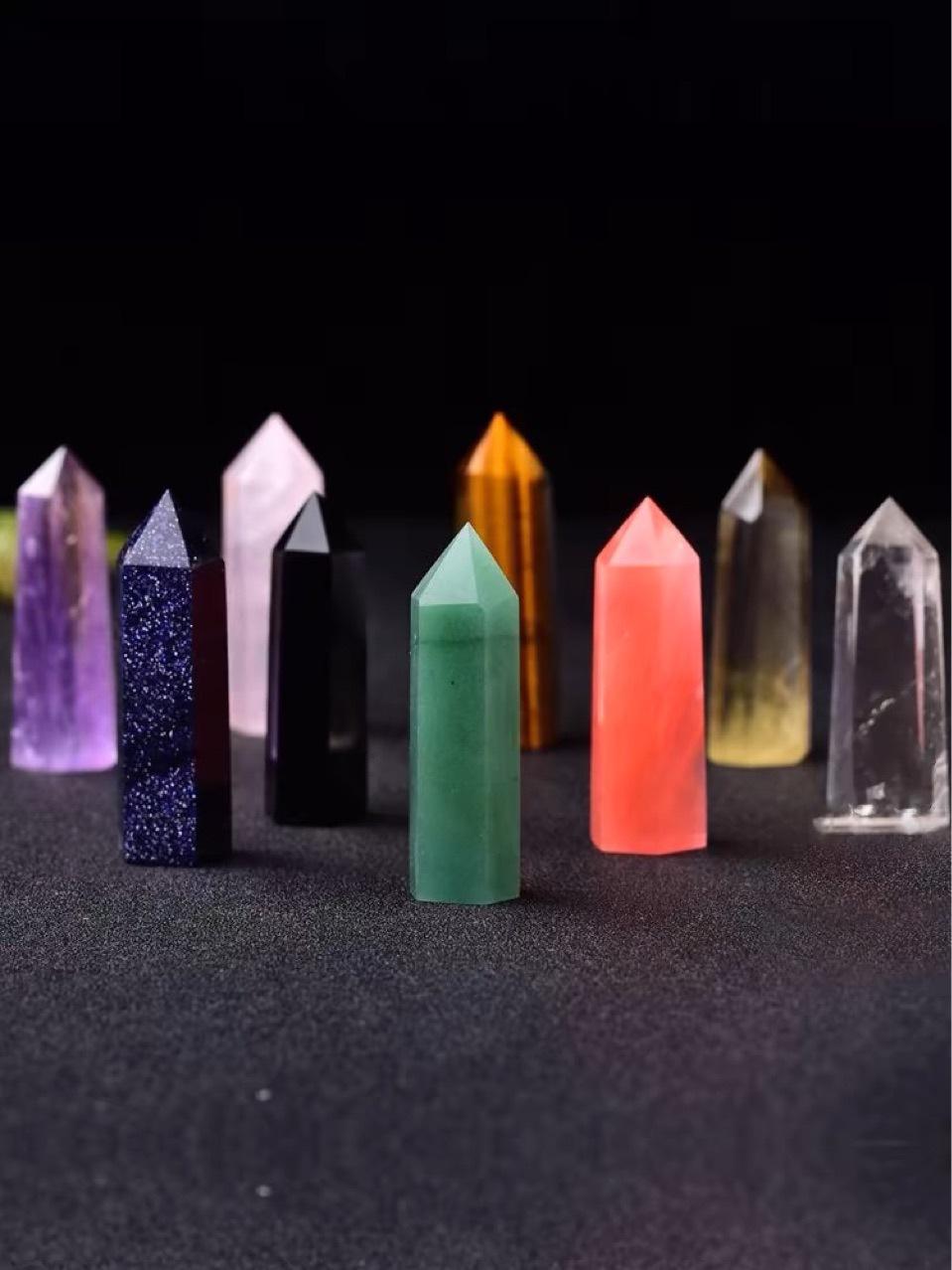 White crystal pillars 6x2cm, Pink crystal pillars 6x2cm, Tea crystal pillars 6x2cm, Obsidian pillars 6x2cm, Co...