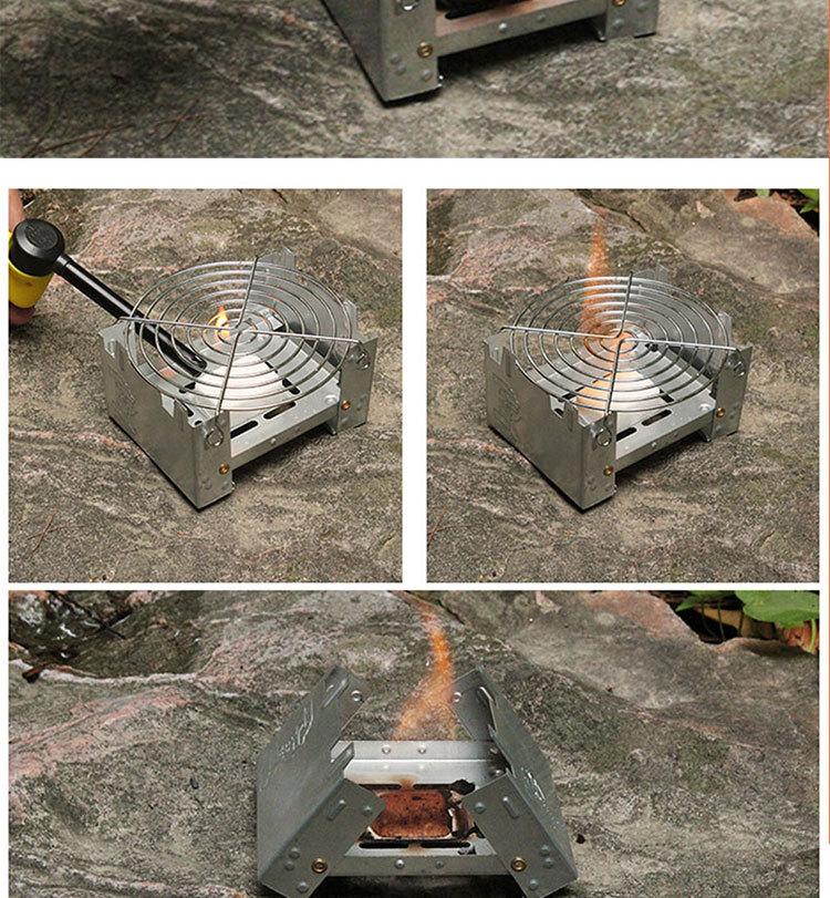 Estufa de barbacoa plegable para exteriores, portátil, pequeña, parrilla de barbacoa, estufa de alcohol sólido, estufa de camping individual a prueba de viento para exteriores