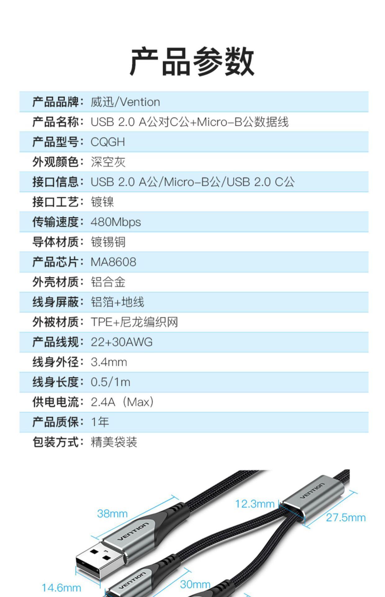 Deep Space Gray [woven] Type-c + Micro Usb interface, Deep Space Gray [woven] double Type-c mouth