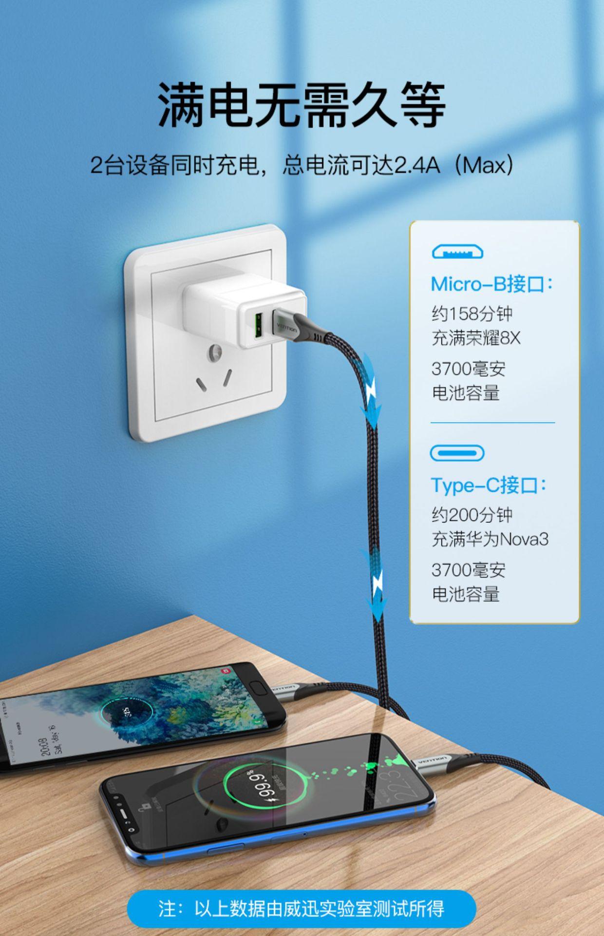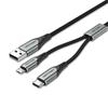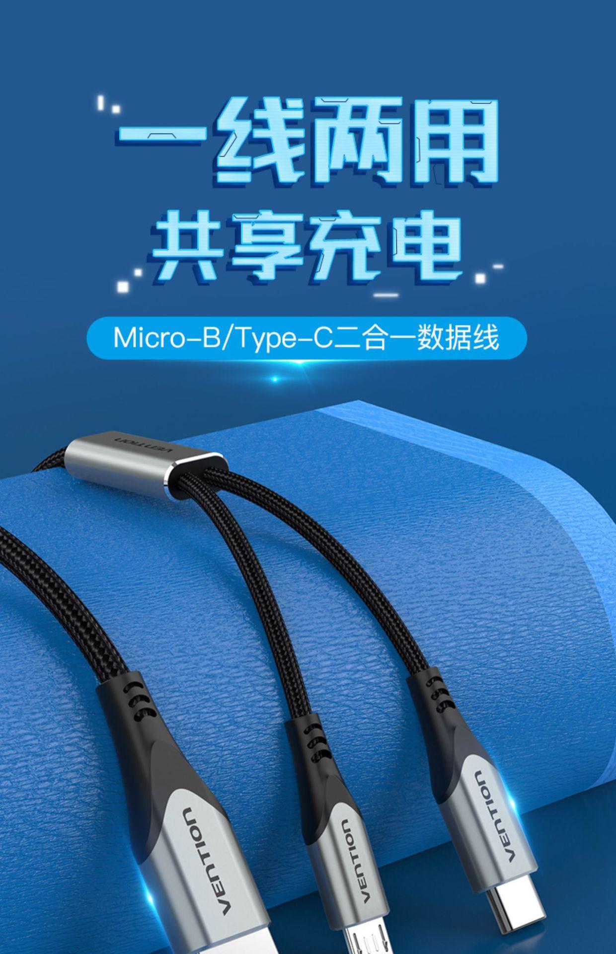 Cable de datos 2 en 1 Weixun carga rápida Android typec 1-2 micro usb carga para coche cable trenzado