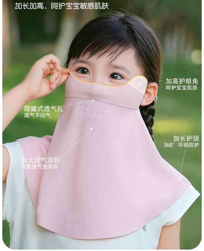 Mascarilla Infantil de Seda de Hielo con Protección Solar Especial Anti-UV Protección Completa de Cara y Cuello Sombrilla Máscara de Cuello Verano Transpirable