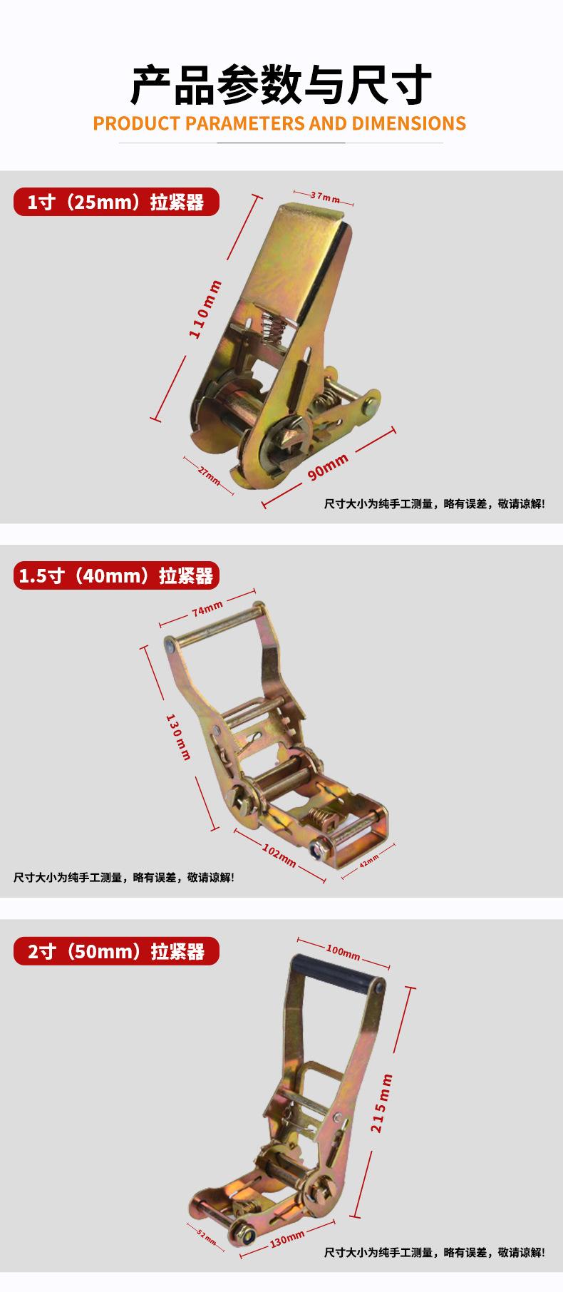 Tensor de trinquete para cinturón de carga, tensor de trinquete para camión, tensor autoblocante, tensor de cinturón para aeronaves, correa de unión para embalaje, cuerda