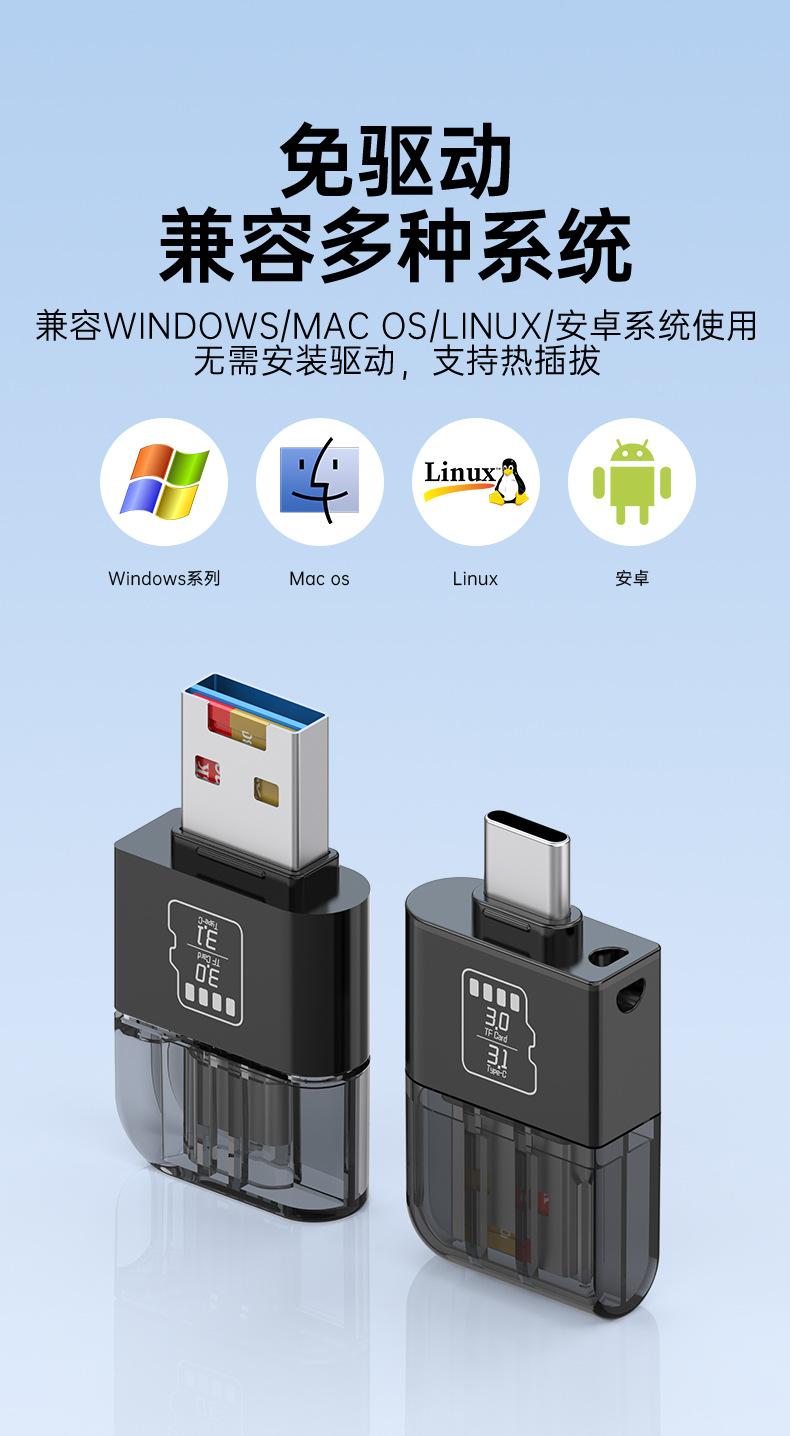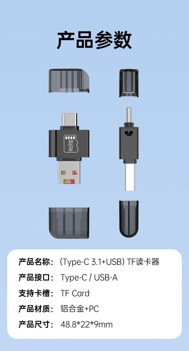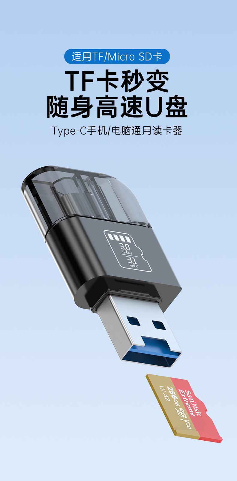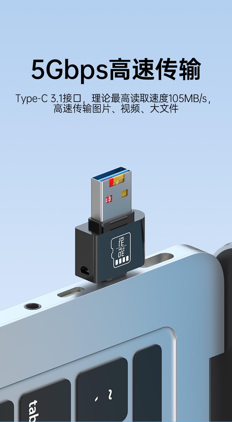 Lector de tarjetas de alta velocidad 3.1, lector de tarjetas TF oculto, universal, tipo C, para teléfono móvil, computadora, lector de tarjetas universal de 5 Gbps