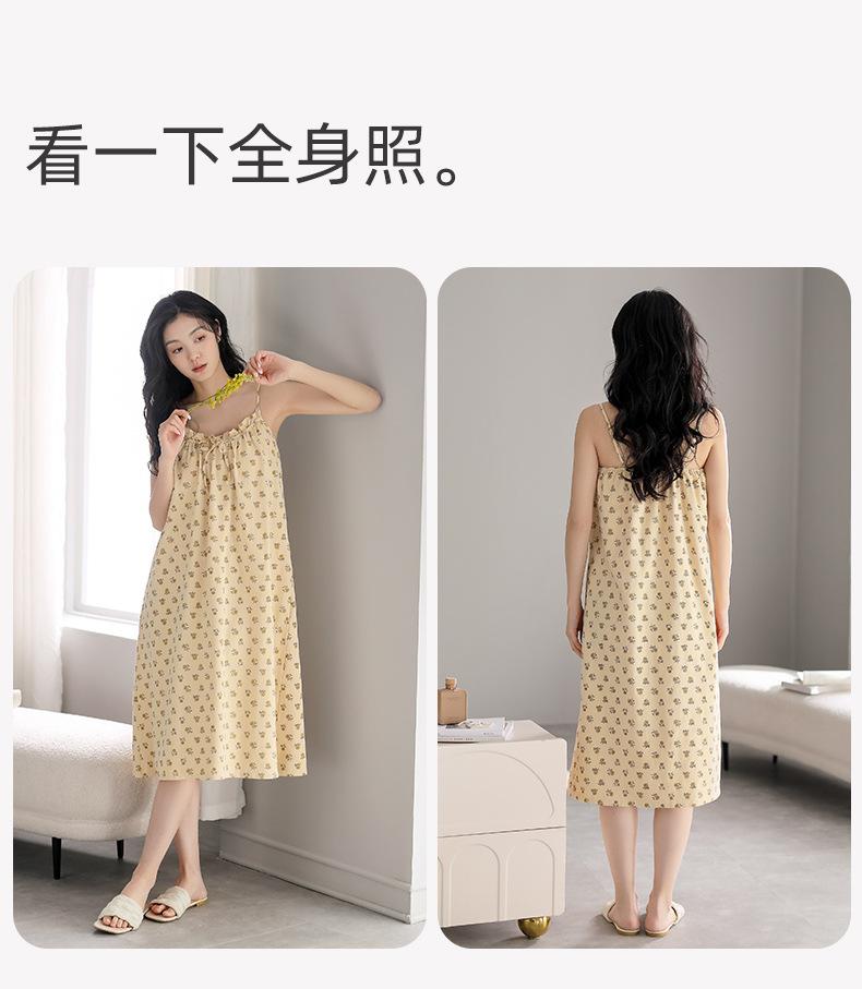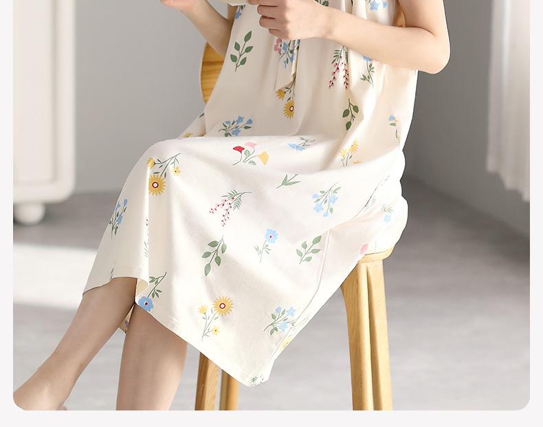 Compra Camisón de algodón puro con almohadilla para el pecho, vestido de verano sin mangas para mujer, ropa de dormir femenina para el hogar al por mayor en Joom.pro