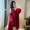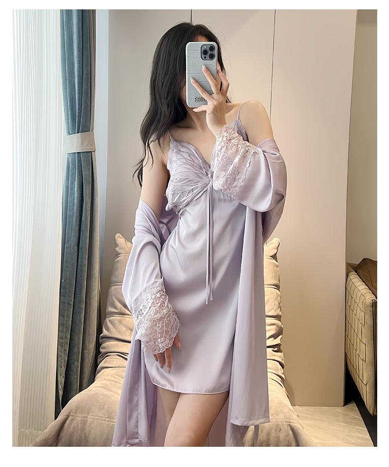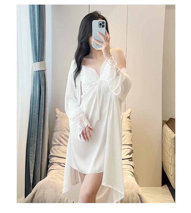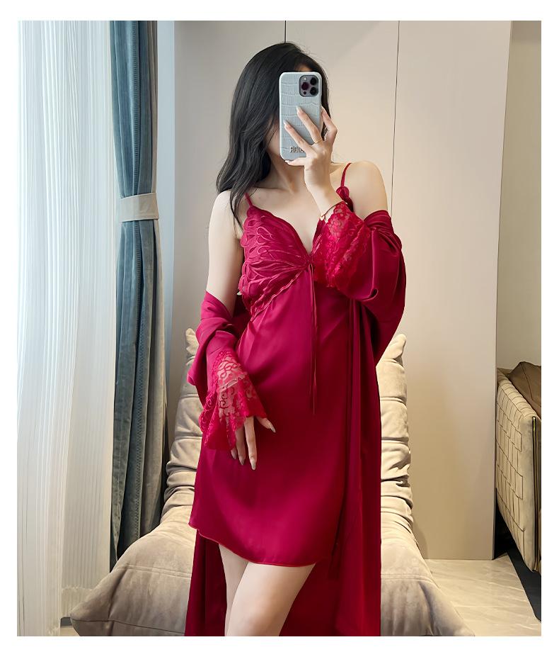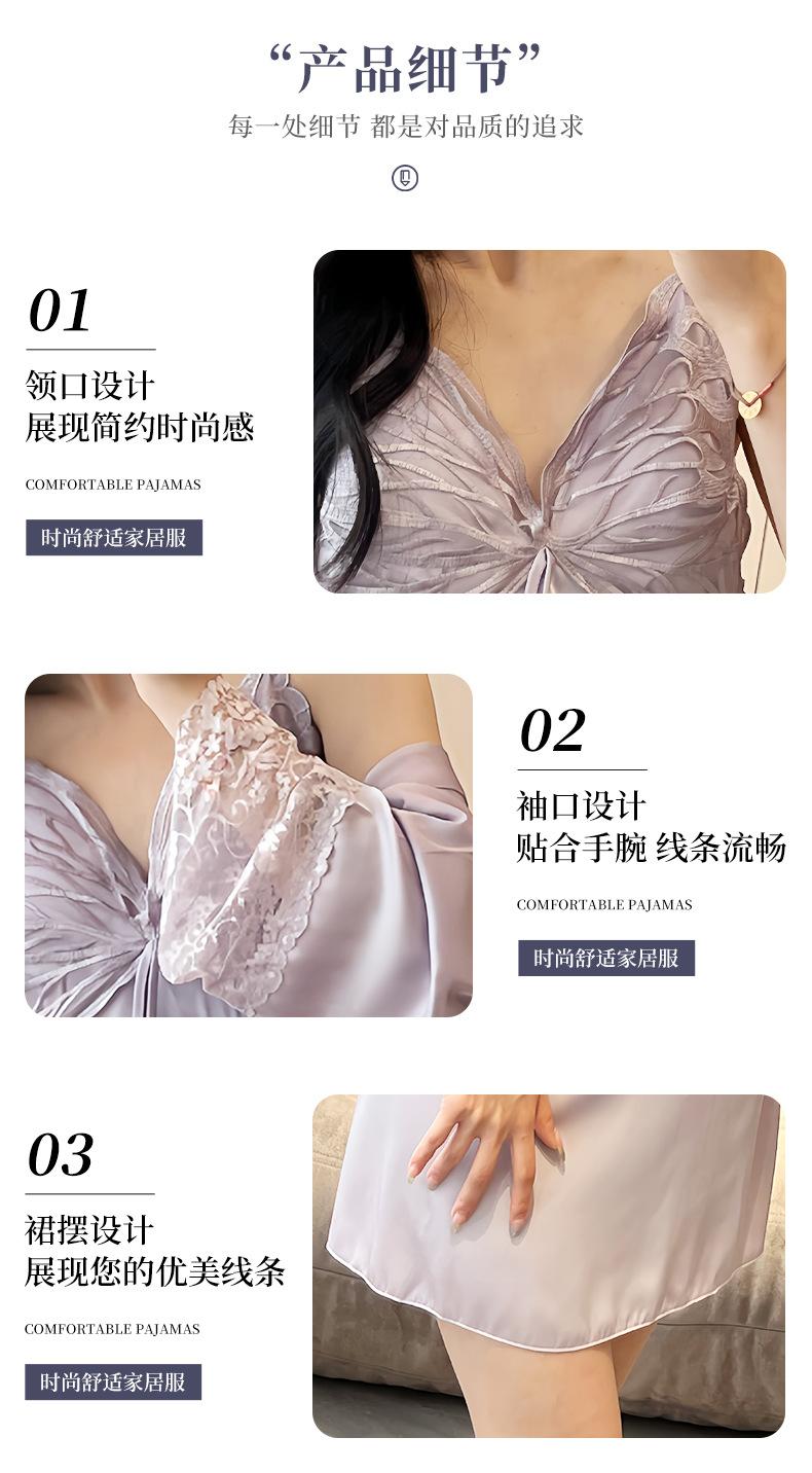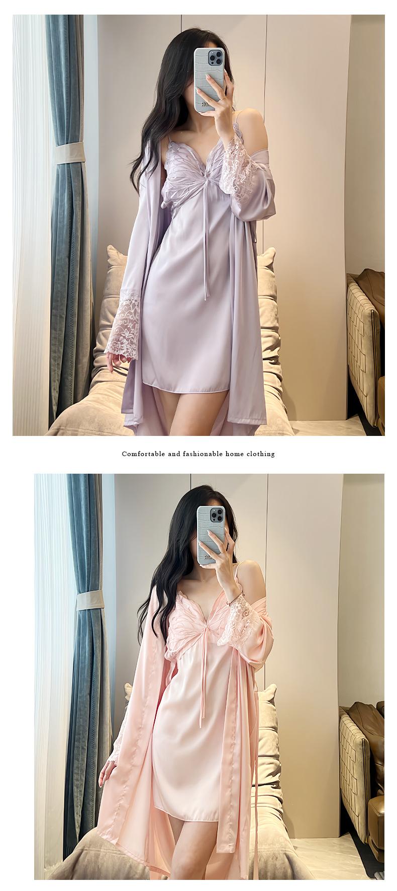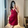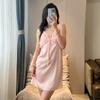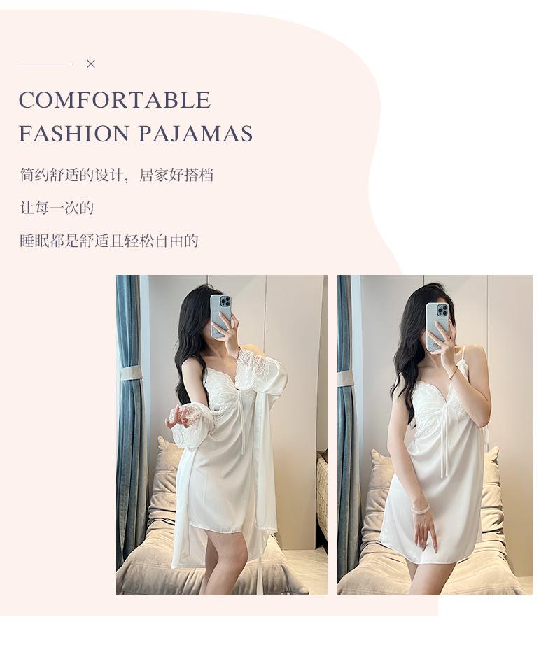 Pijama de verano para mujer, de seda helada, sexy, de encaje, con tirantes, con almohadilla para el pecho, ropa fina para el hogar, conjunto de dos piezas