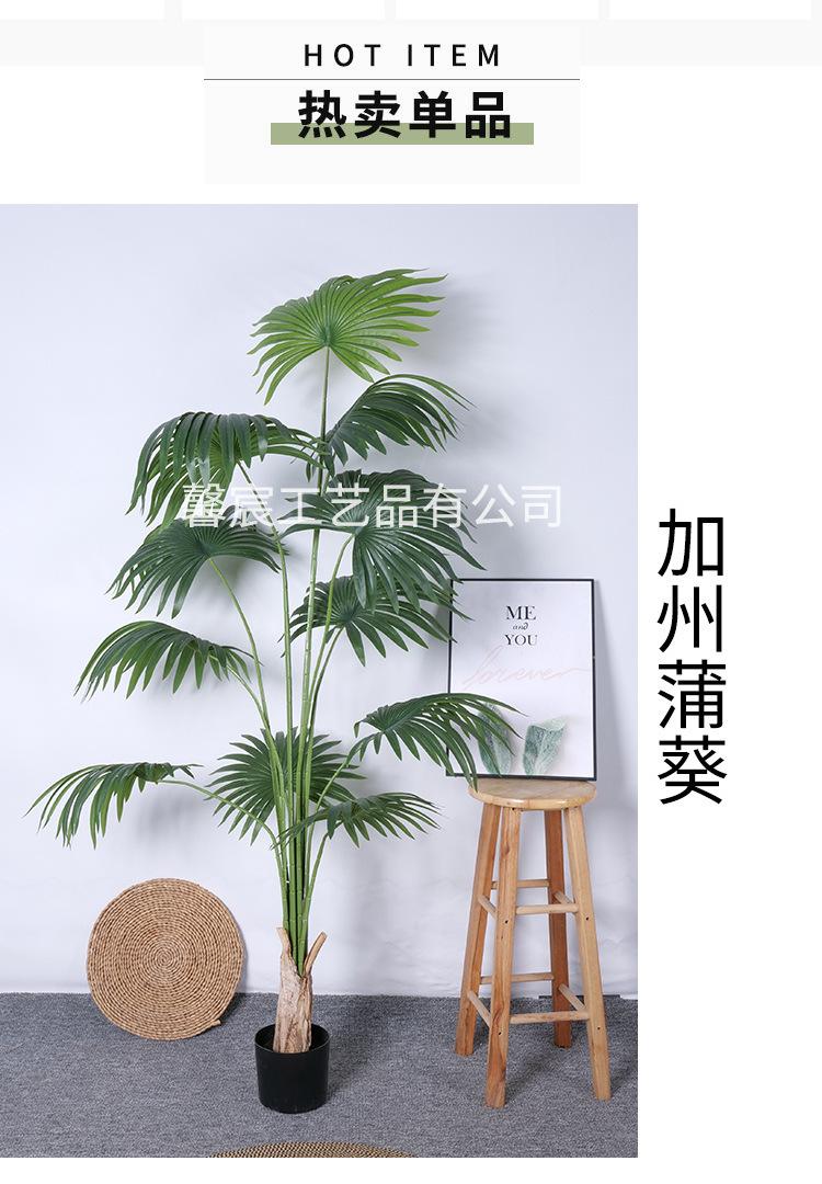 Simulación de nuevo estilo, abanico Pukui, árbol de girasol, estilo nórdico, plantación verde falsa, hoja redonda, adornos decorativos para suelo, bonsái de interior.