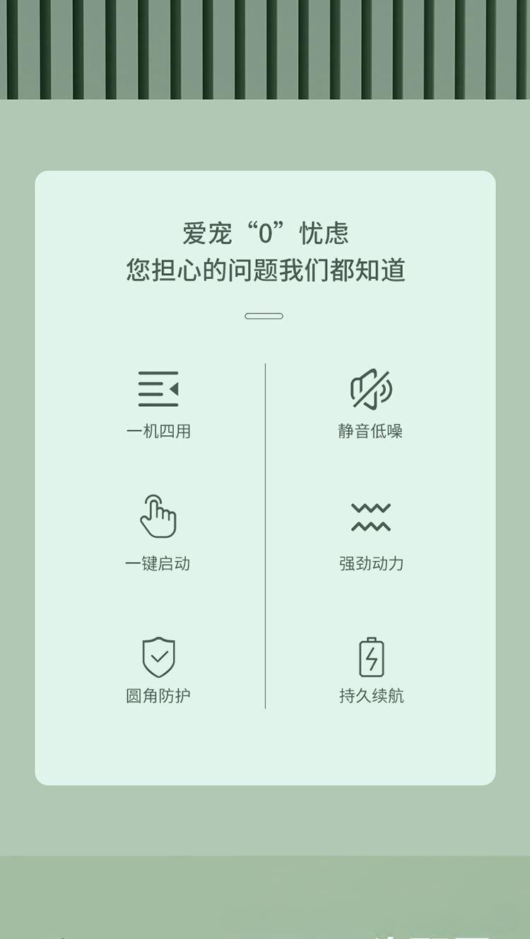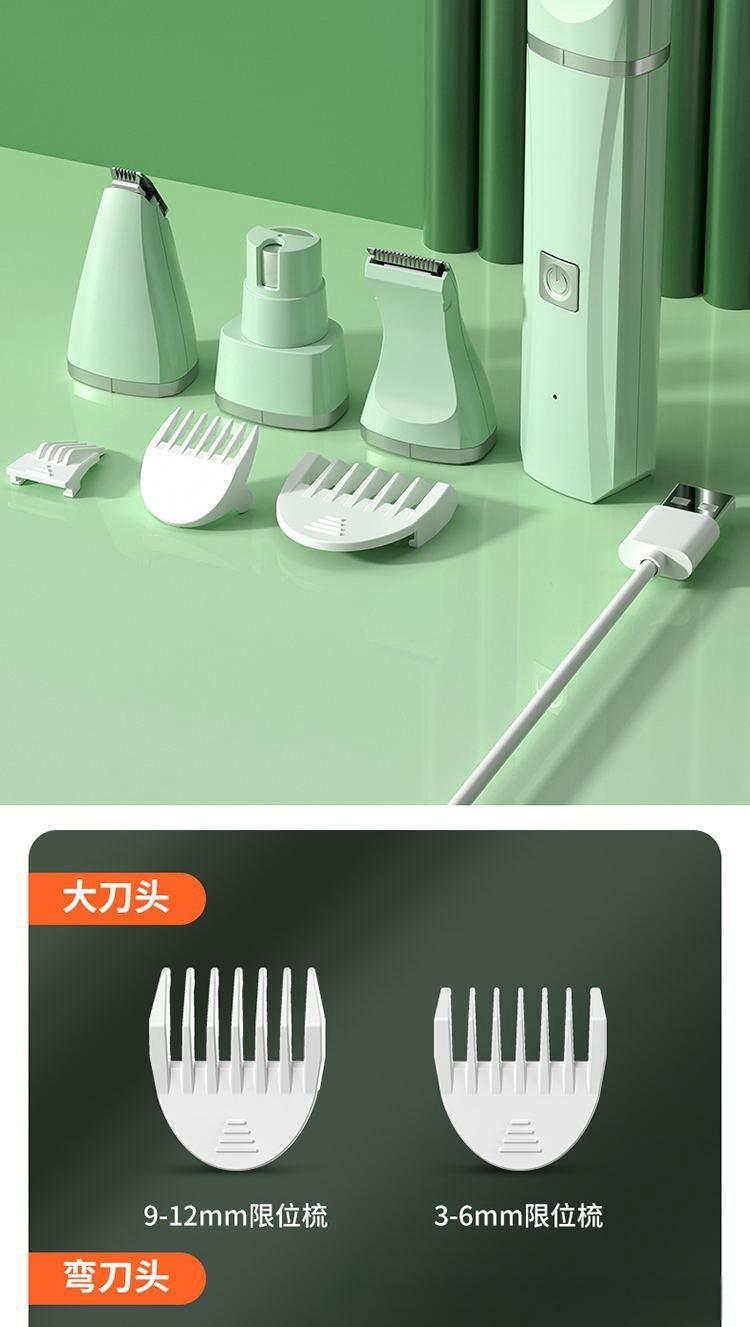 Accesorios del producto: caja de embalaje, manual de instrucciones, cuatro peines guía, un cable de carga USB, una botella de aceite lubricante, un cepillo de limpieza,