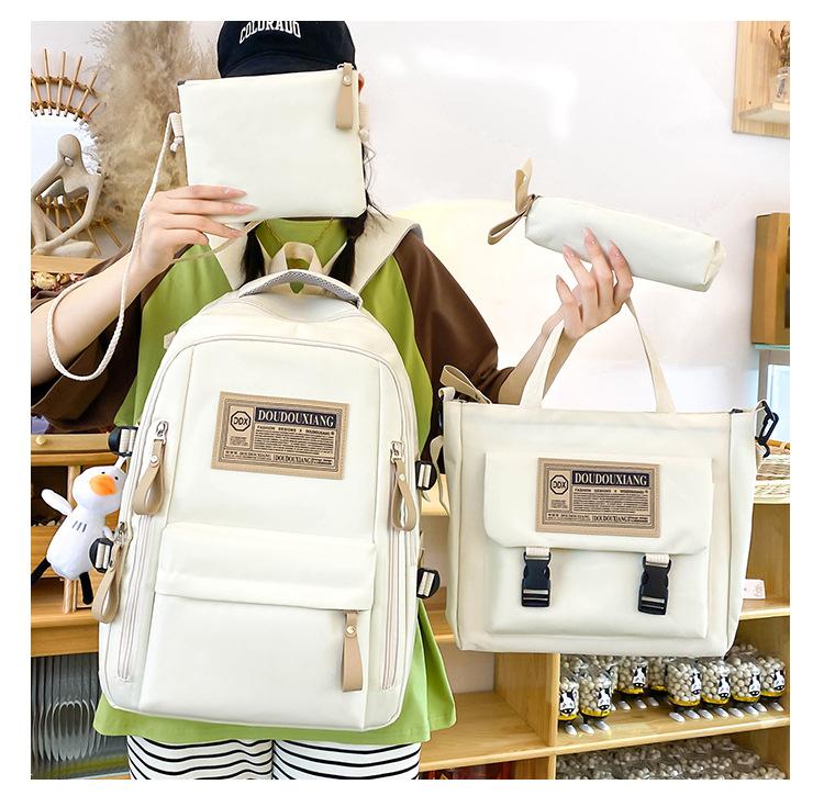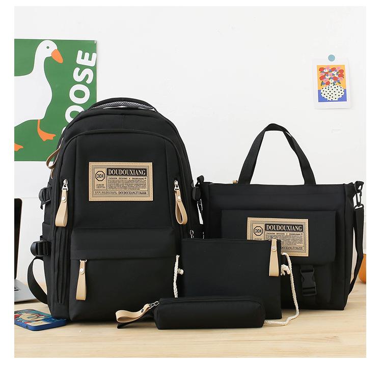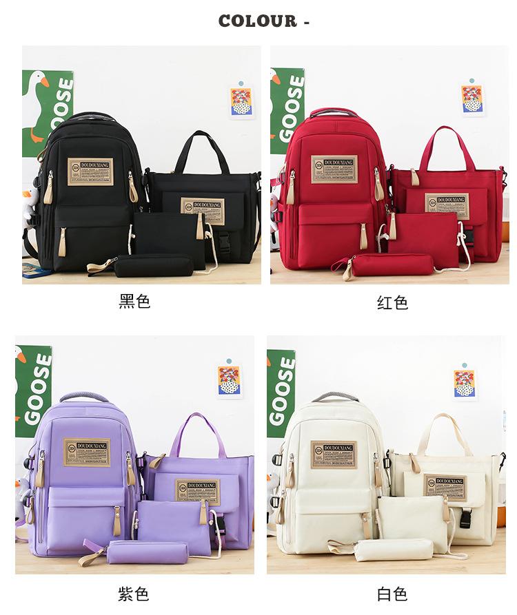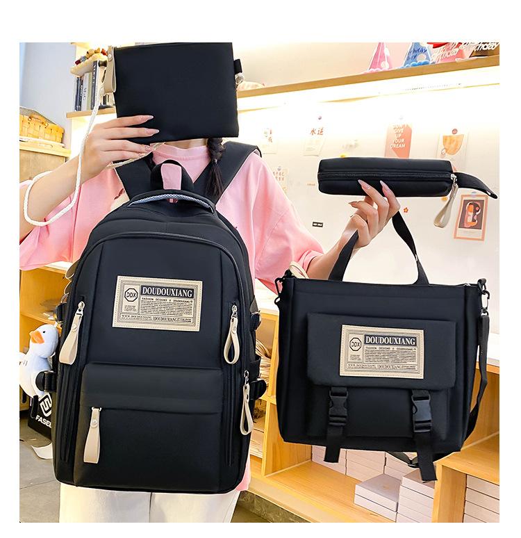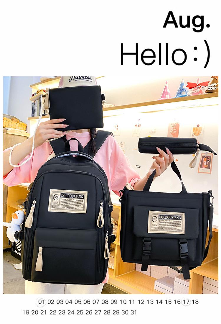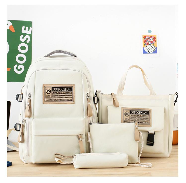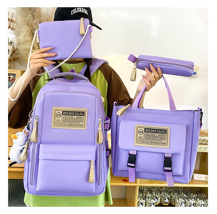 Mochila para Secundaria para Niña Nueva Tela Oxford Gran Capacidad Estilo Coreano Estilo Universitario Mochila de Cuatro Piezas para Estudiantes de Primaria