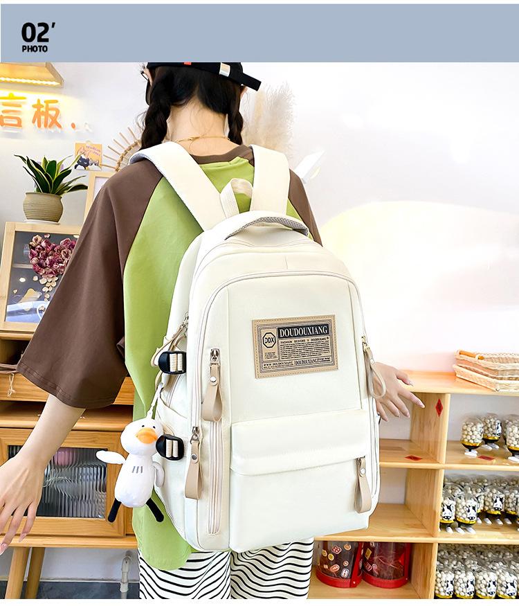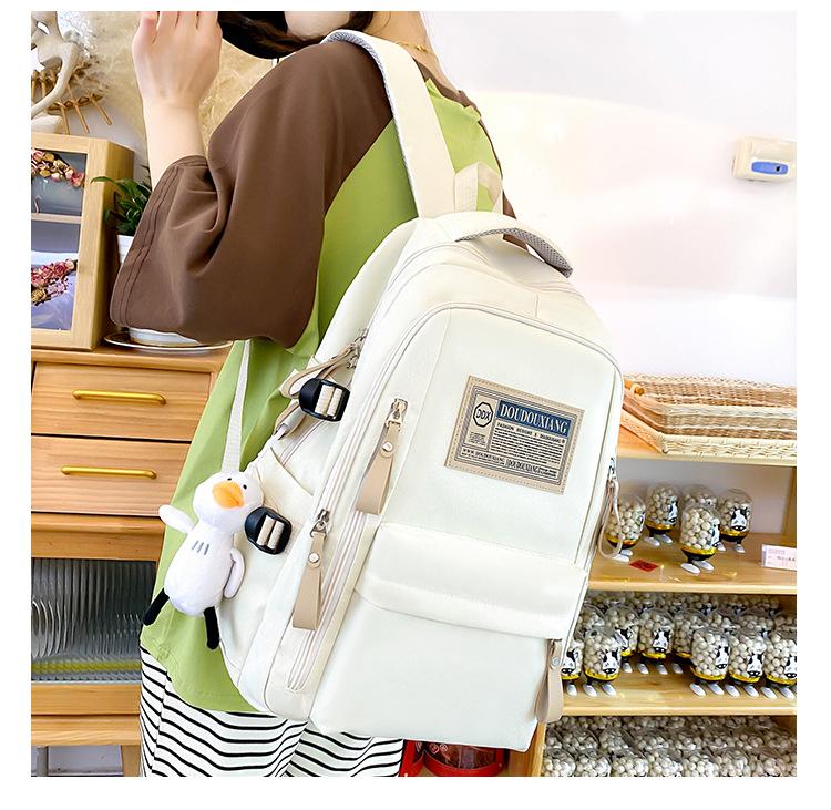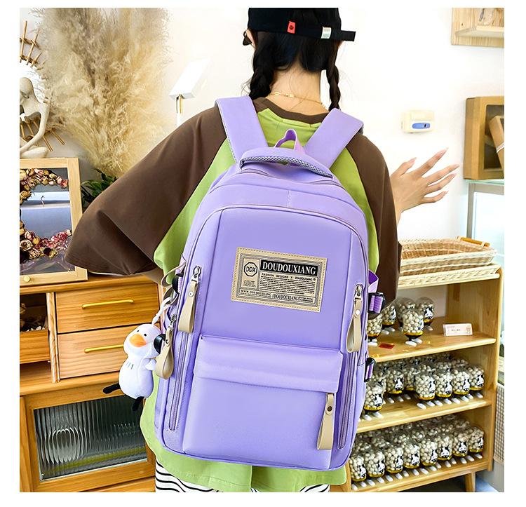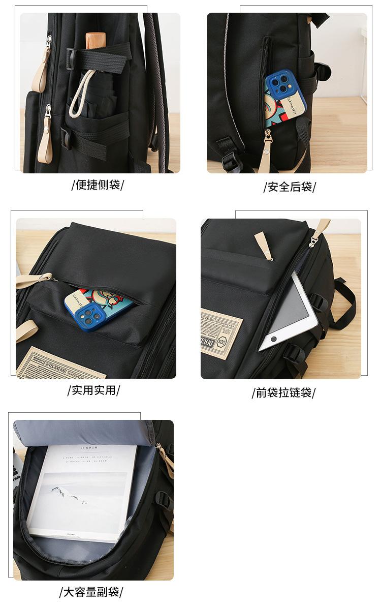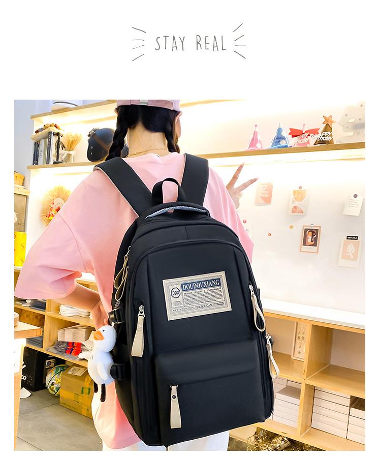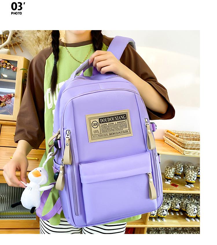 Mochila para Secundaria para Niña Nueva Tela Oxford Gran Capacidad Estilo Coreano Estilo Universitario Mochila de Cuatro Piezas para Estudiantes de Primaria