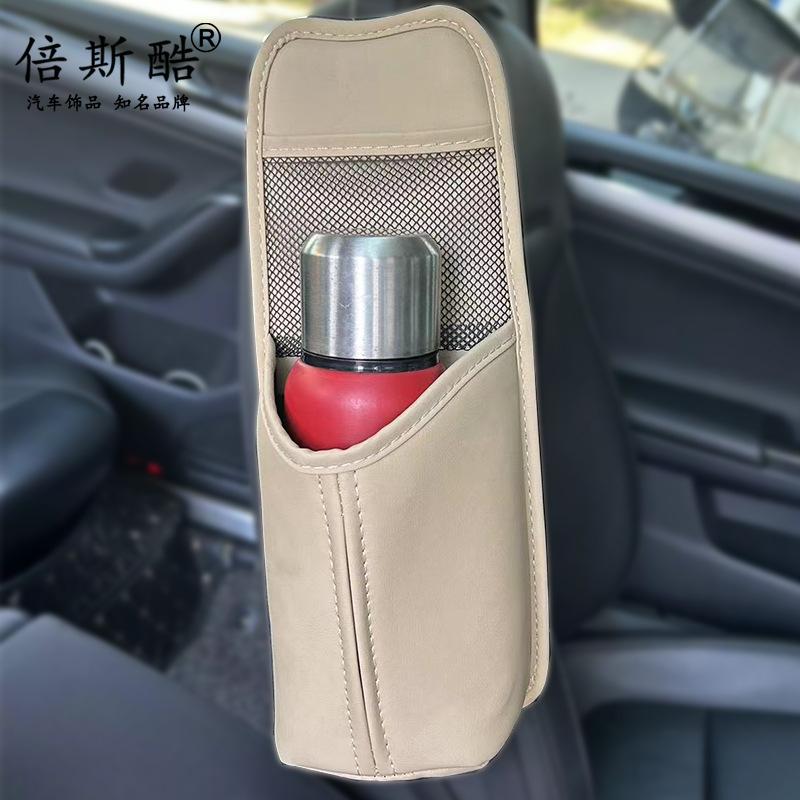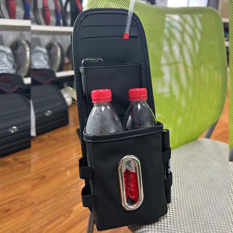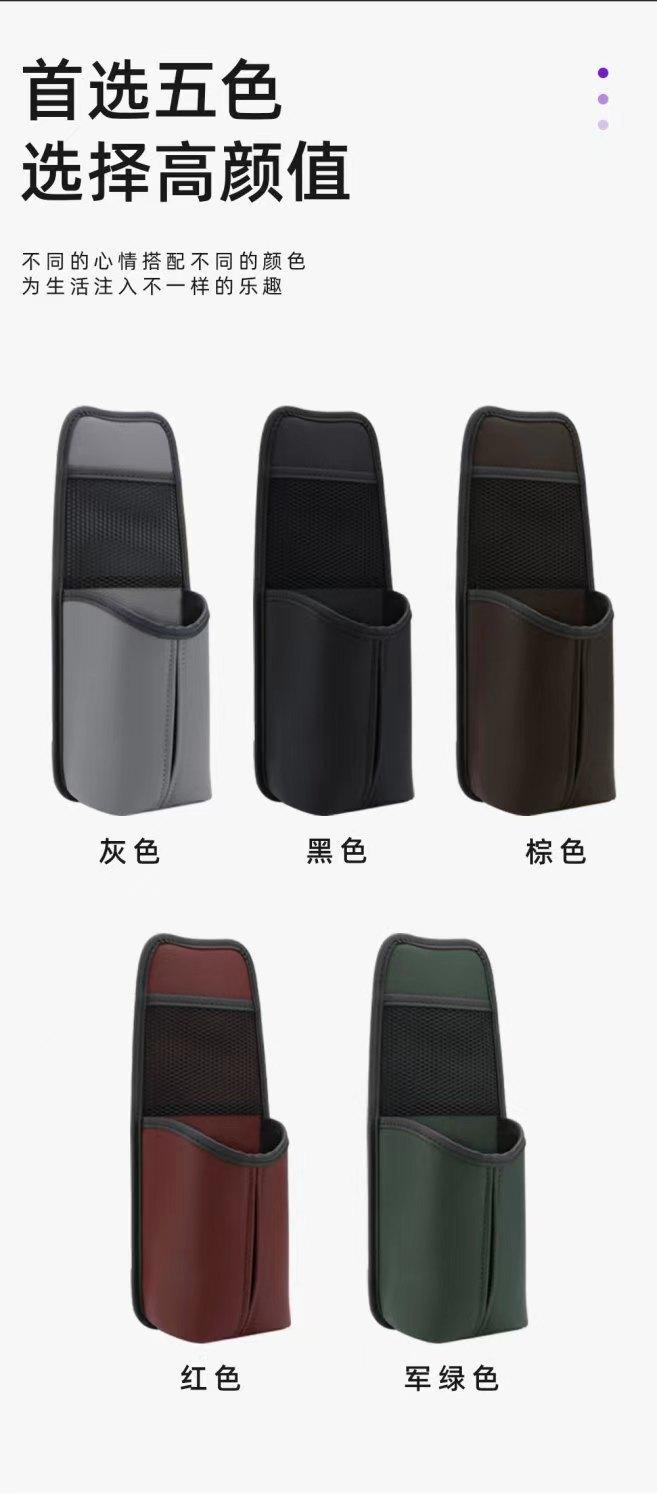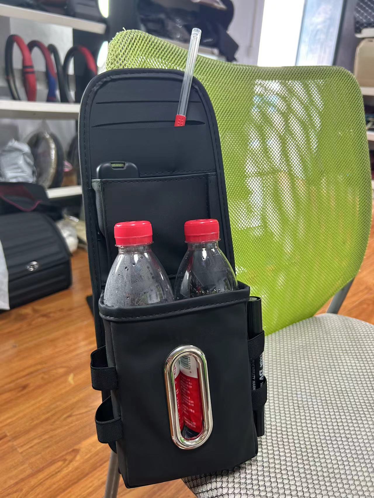 Black water cup side hanging, Black leather chair side storage pocket, Paper towel side hanging, Black seat si...