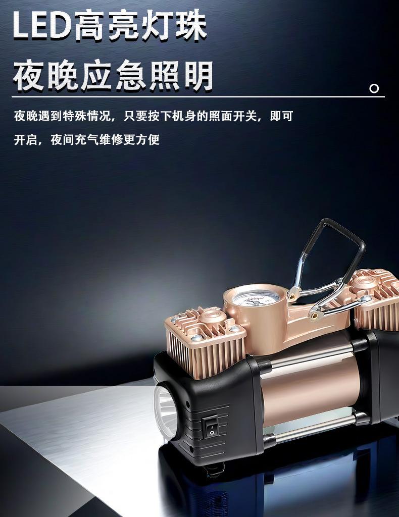 Bomba de aire portátil para coche, inflador de neumáticos eléctrico de alta potencia de 12 V, doble cilindro, generación