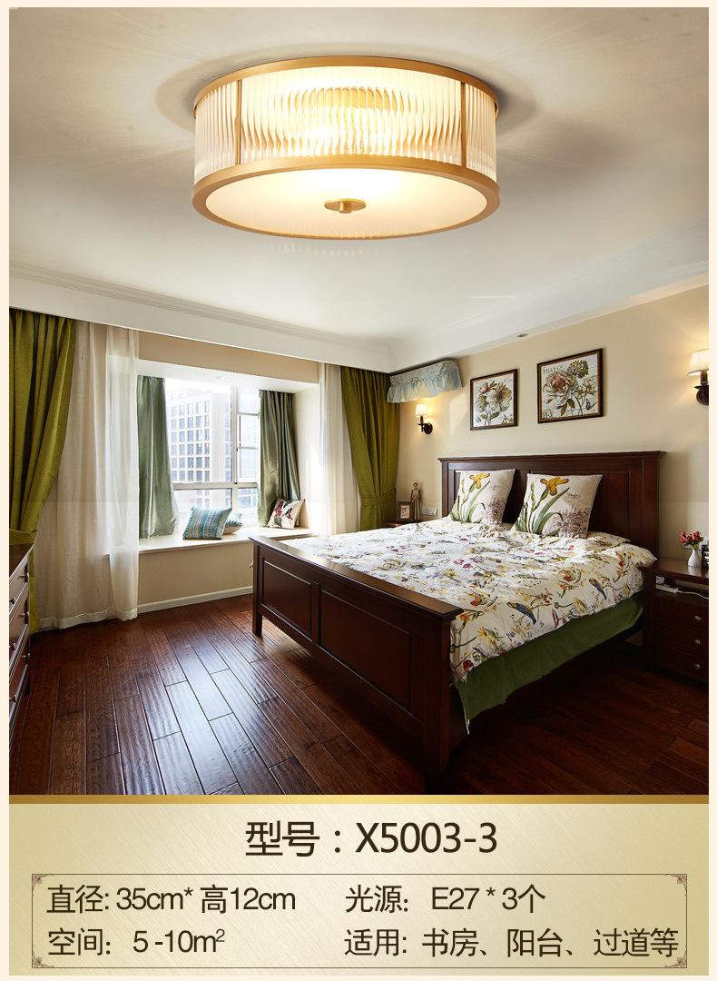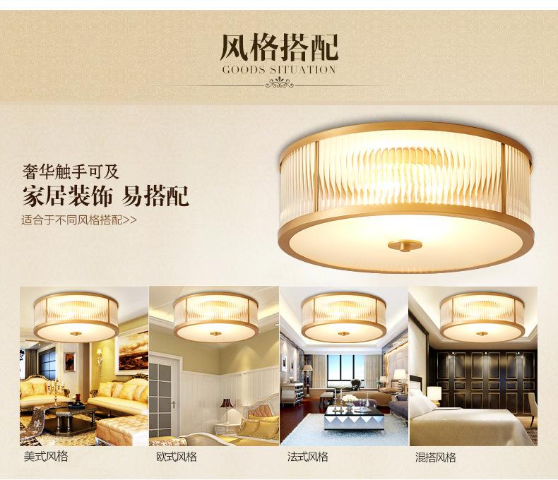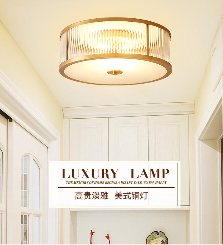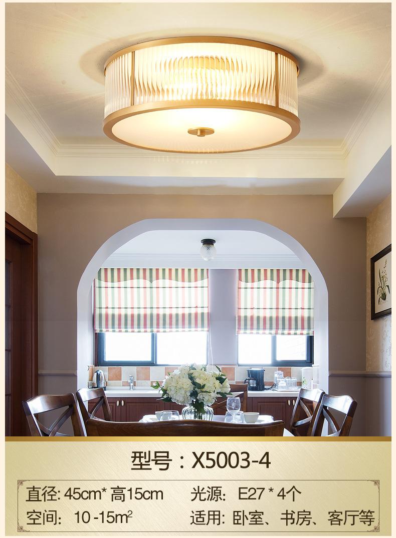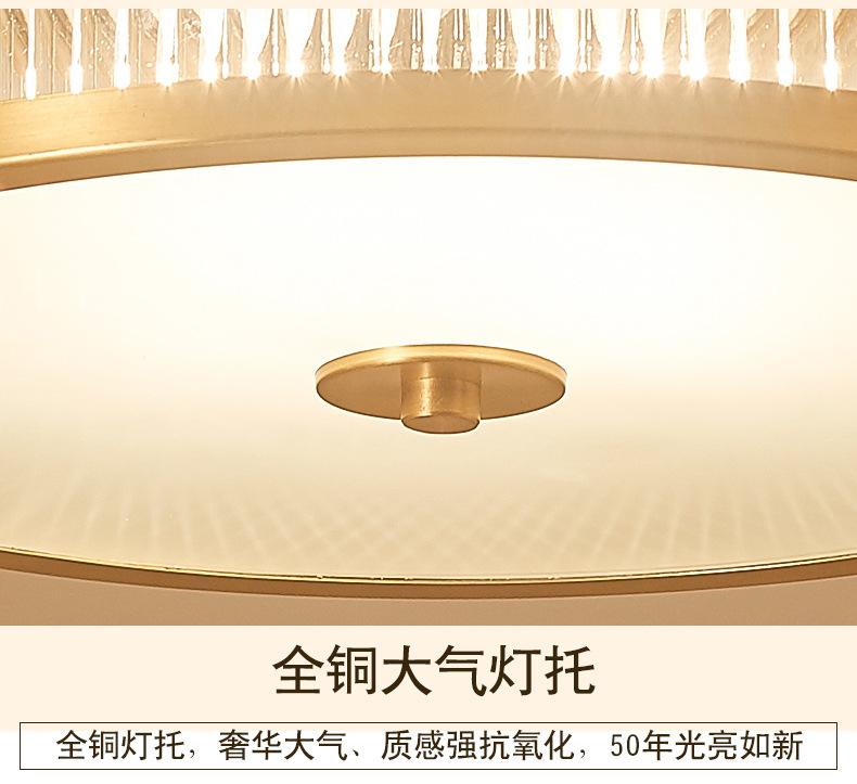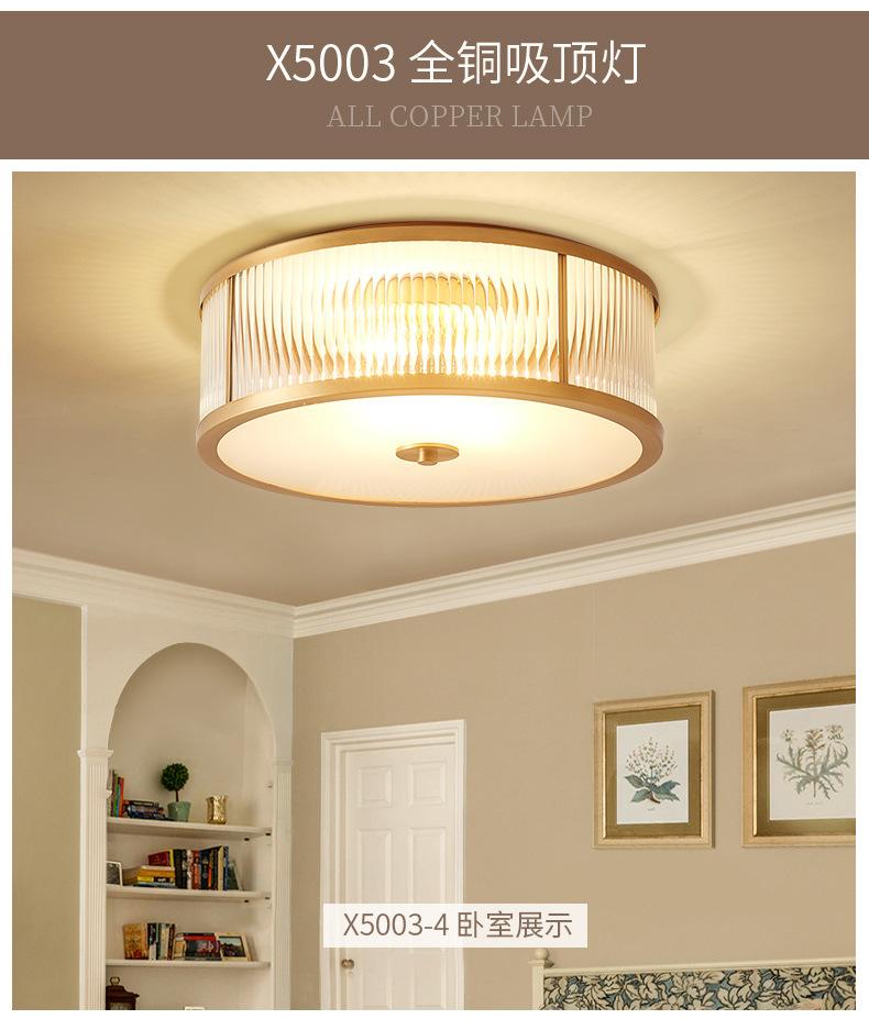 Lámpara de techo de cobre para dormitorio, lámpara americana para sala de estar, lámpara de estudio, lámpara redonda moderna y sencilla para dormitorio principal, lámpara para habitación