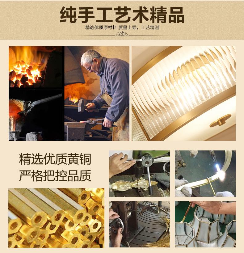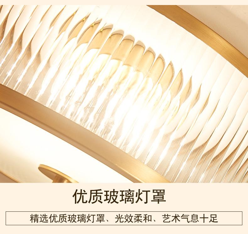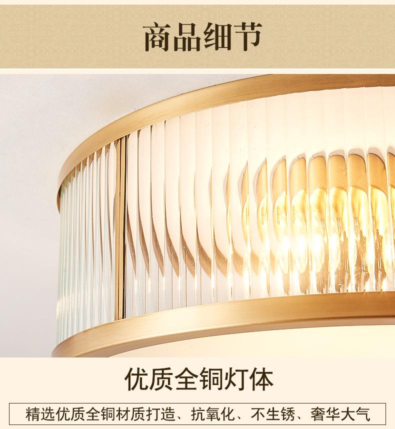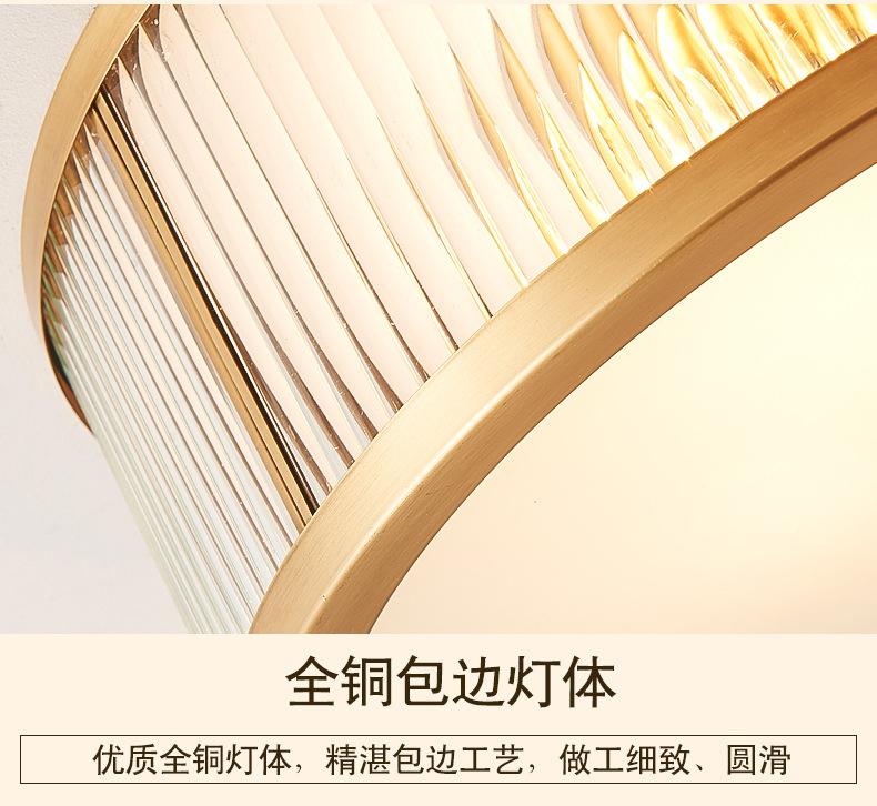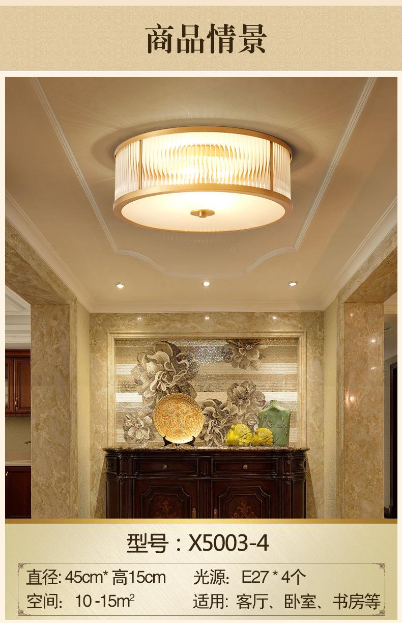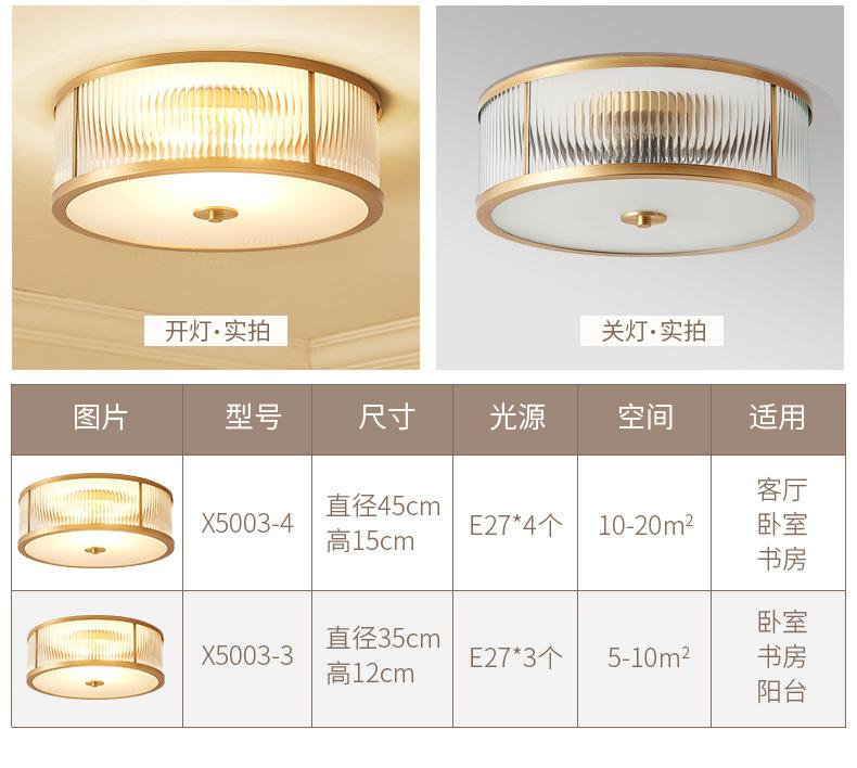 Lámpara de techo de cobre para dormitorio, lámpara americana para sala de estar, lámpara de estudio, lámpara redonda moderna y sencilla para dormitorio principal, lámpara para habitación