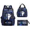 Mochila Escolar Estudiantil con Estampado de Messi, Set de 3 Piezas, Estuche Casual para Lápices, Guapo, Lindo y de Gran Capacidad
