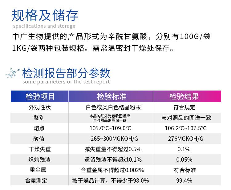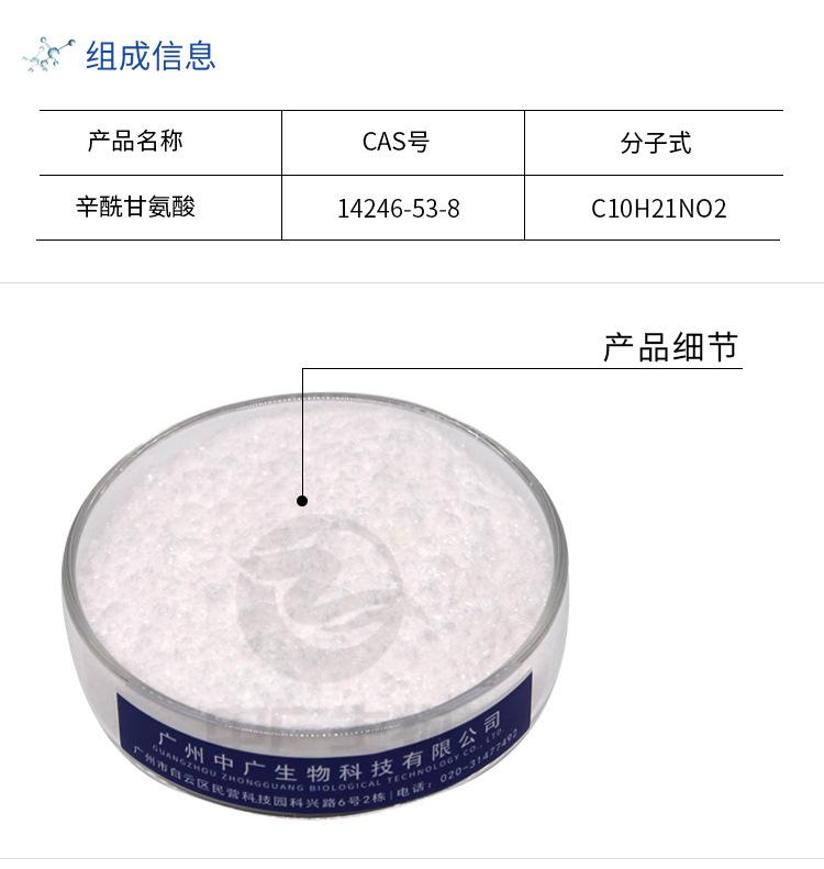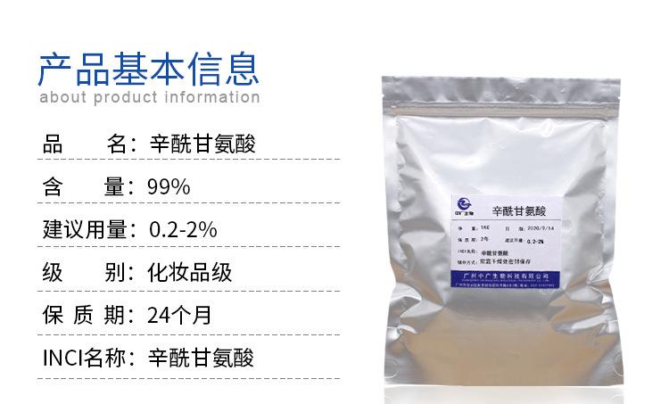 Zhongguang octanoil glicina biológica Cuidado de la piel Cosméticos Materias primas Venta al por mayor Aditivos de eficacia Punto 100g