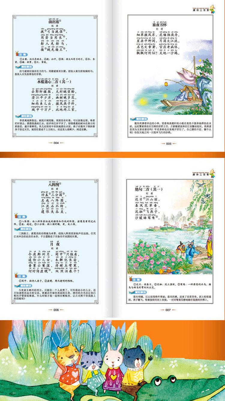 Compra Trescientas imágenes en color de poemas Tang y versiones fonéticas de libros extracurriculares para estudiantes de primaria de 123 grados [recomendación del director] al por mayor en Joom.pro