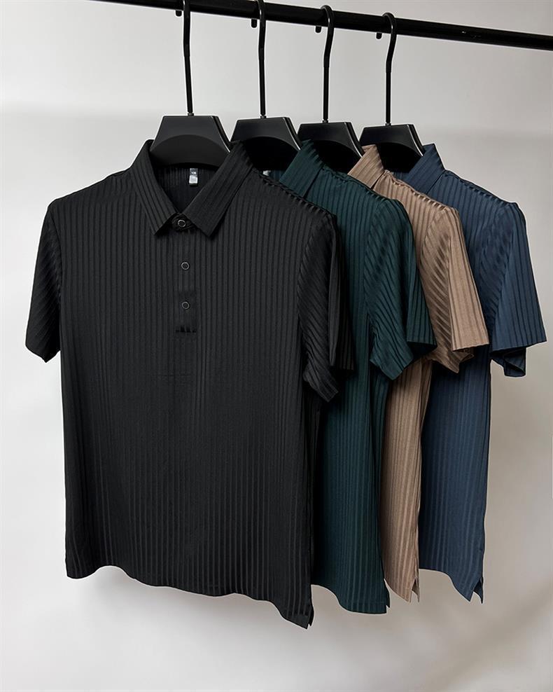 Camisa polo informal de verano a rayas de manga corta para hombre, estilo Amazon europeo y americano, disponible para uso diario.