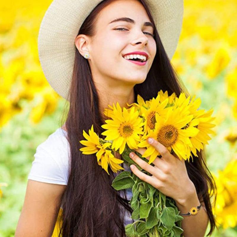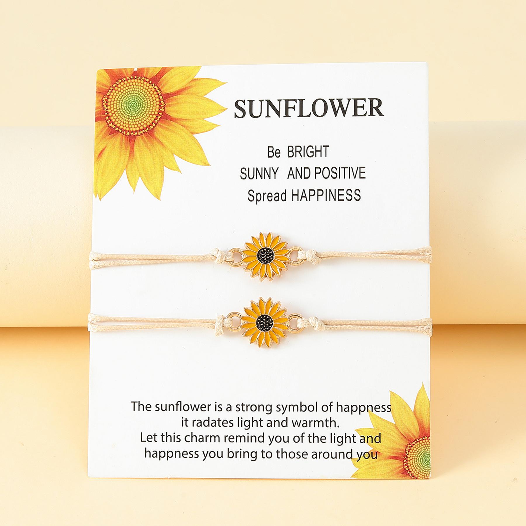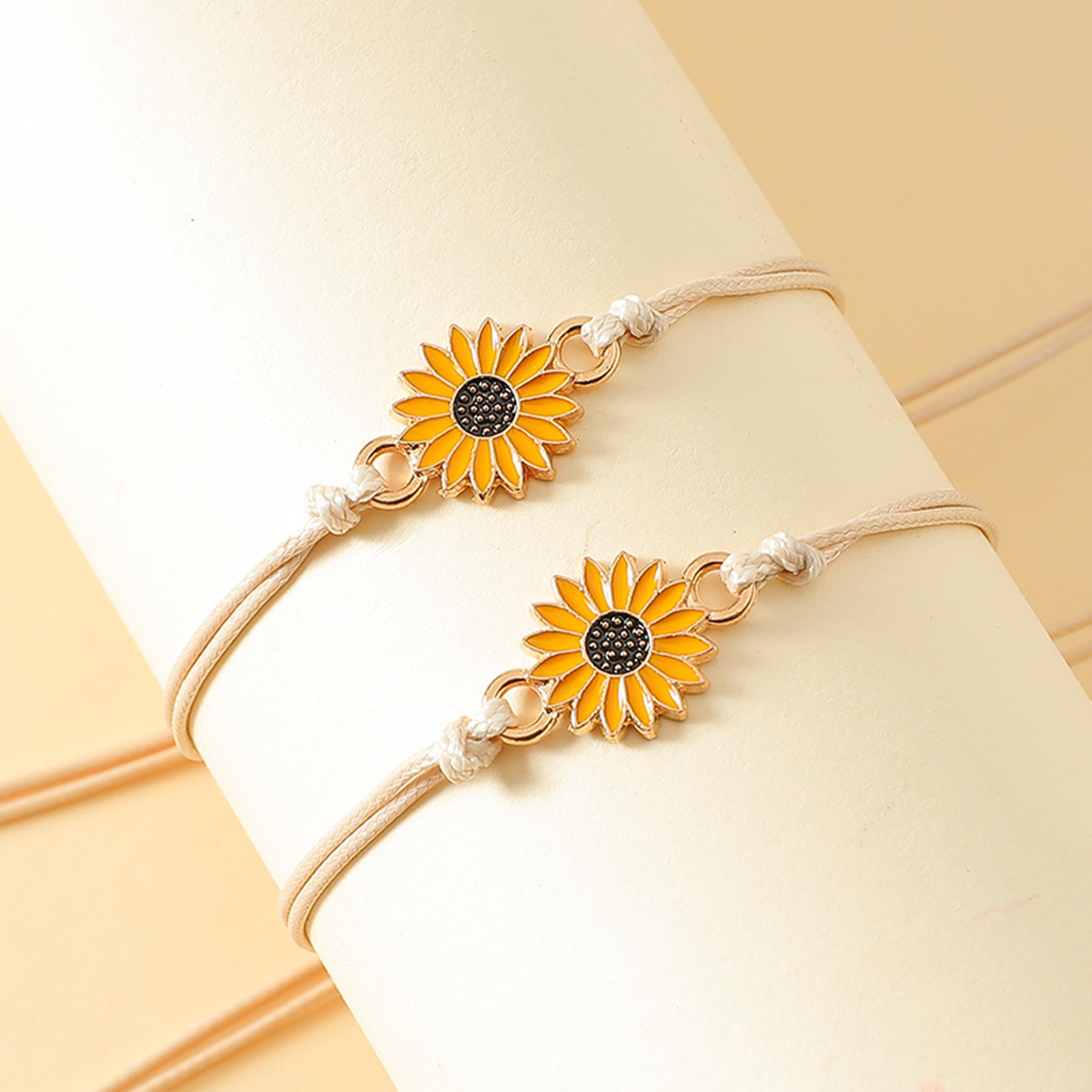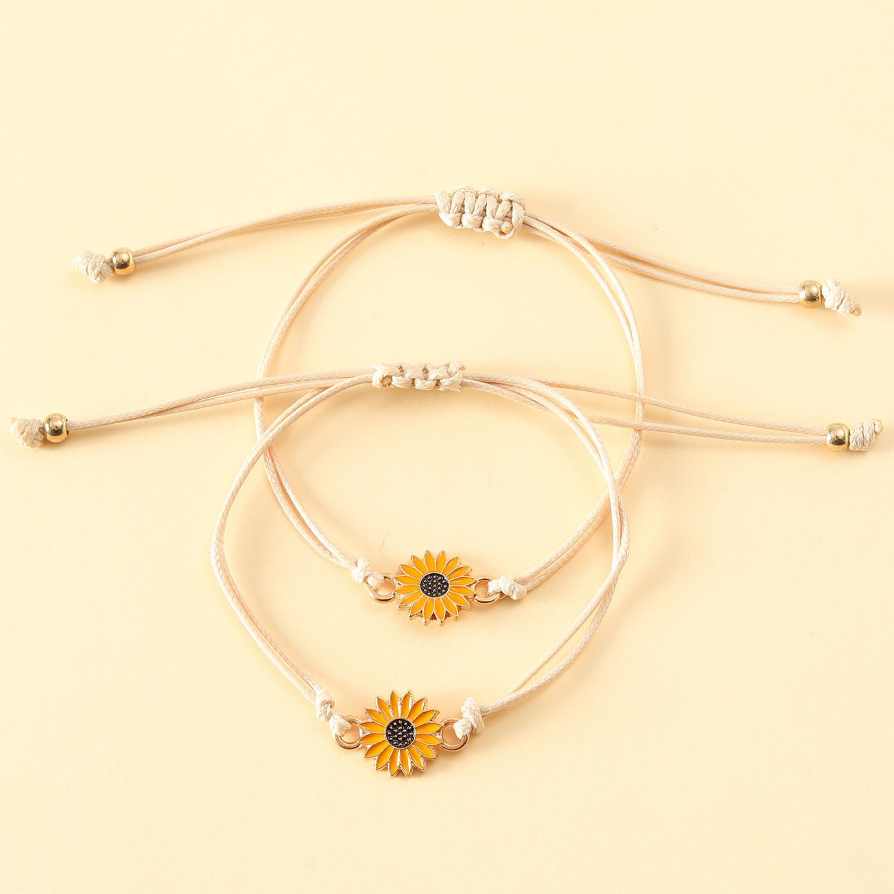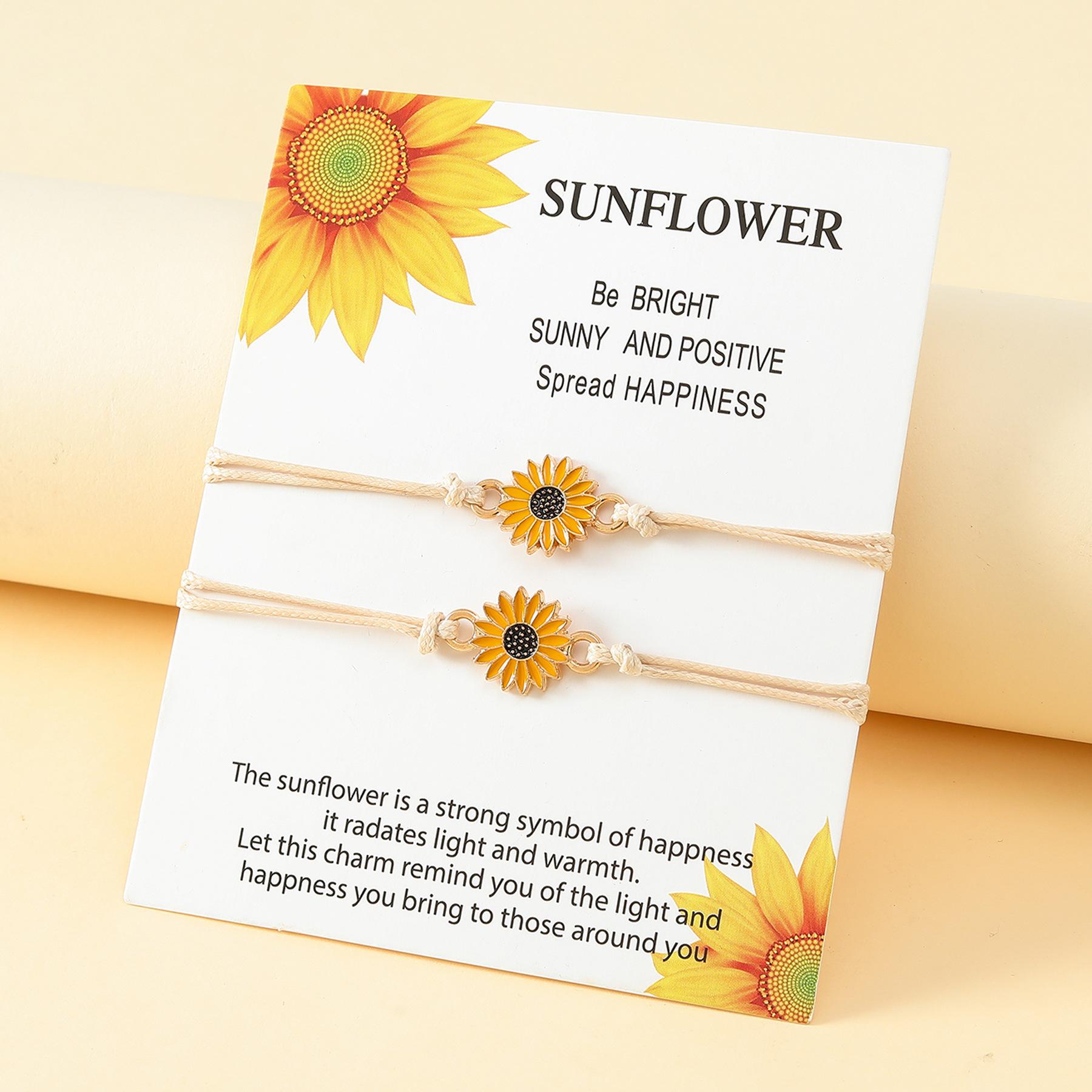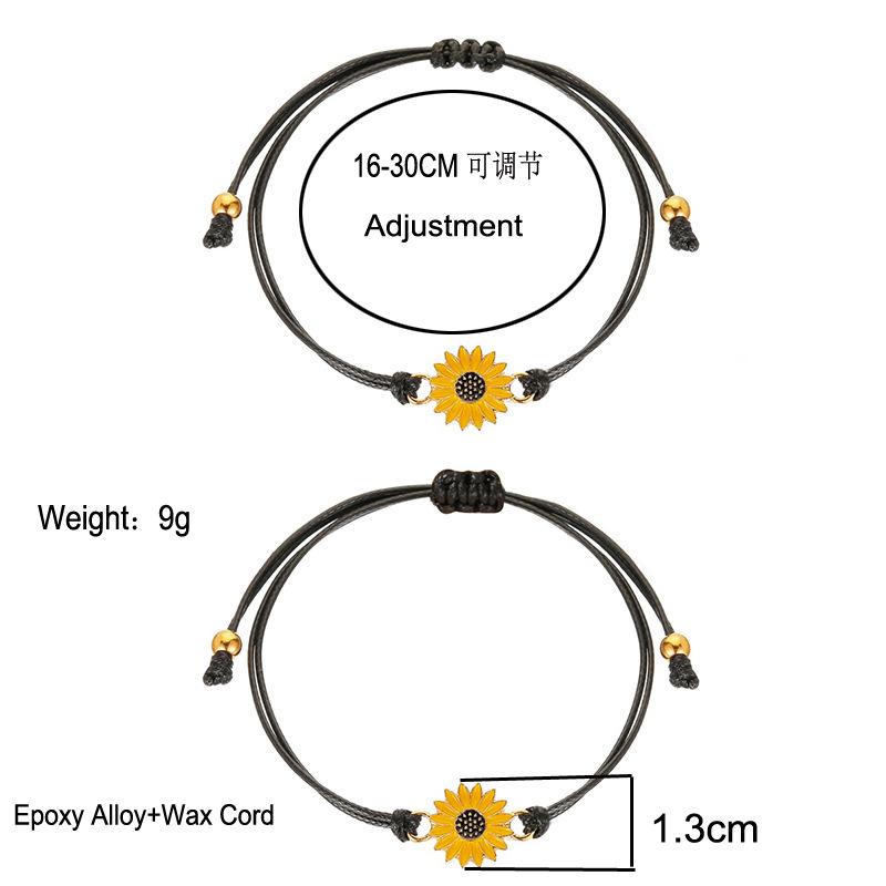 Nombre del producto:Set de pulseras de tarjeta de nueva amistad transfronteriza, pulsera trenzada de línea encerada de girasol con gota de aceite de aleación de personalidad europea y americana, unisex, regalo de San Valentín