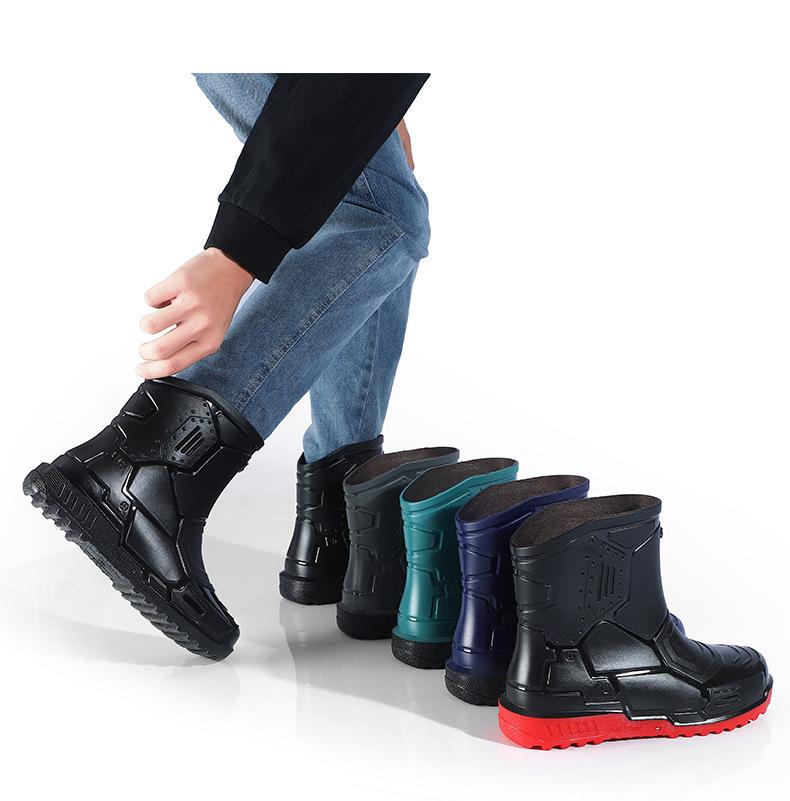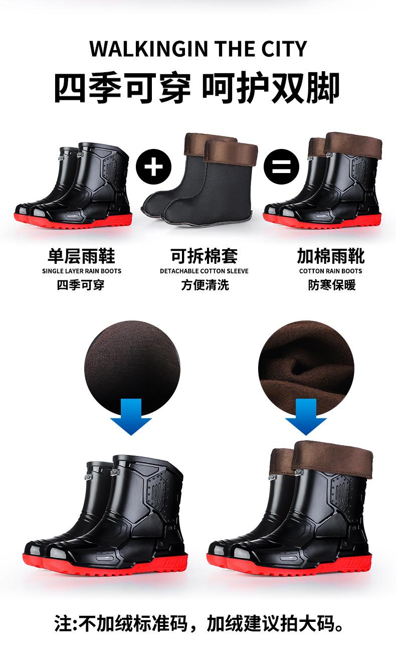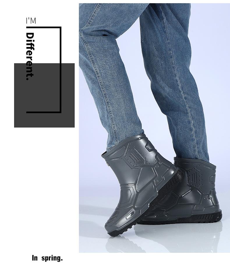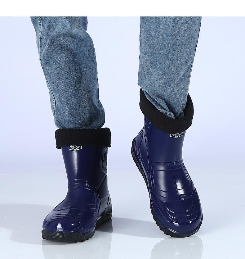 Moda Transfronteriza Botas de Lluvia para Hombre Botas de Lluvia de Caña Media Zapatos para Agua Antideslizantes Zapatos de Goma con Forro Polar para Pareja Zapatos de Trabajo para Cocina Lavado de Autos Pesca