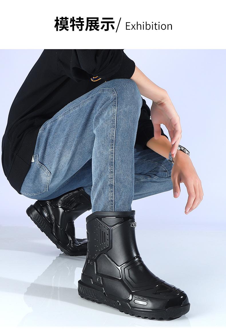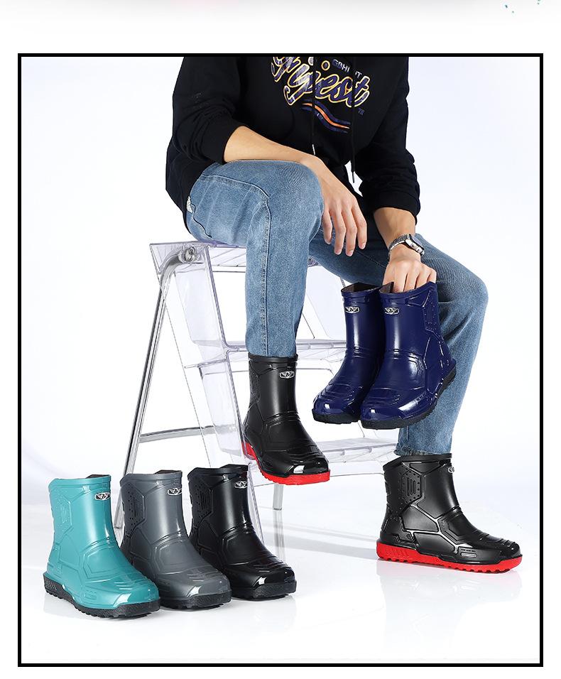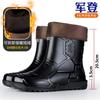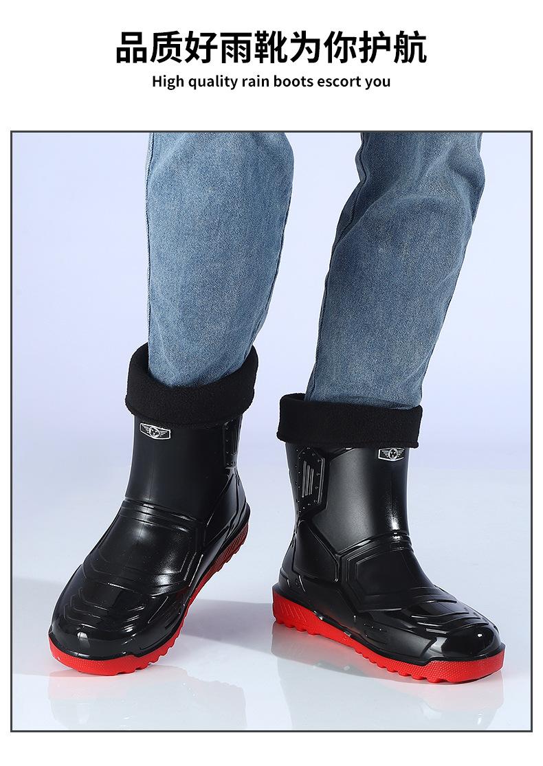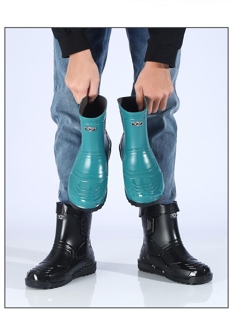 Moda Transfronteriza Botas de Lluvia para Hombre Botas de Lluvia de Caña Media Zapatos para Agua Antideslizantes Zapatos de Goma con Forro Polar para Pareja Zapatos de Trabajo para Cocina Lavado de Autos Pesca