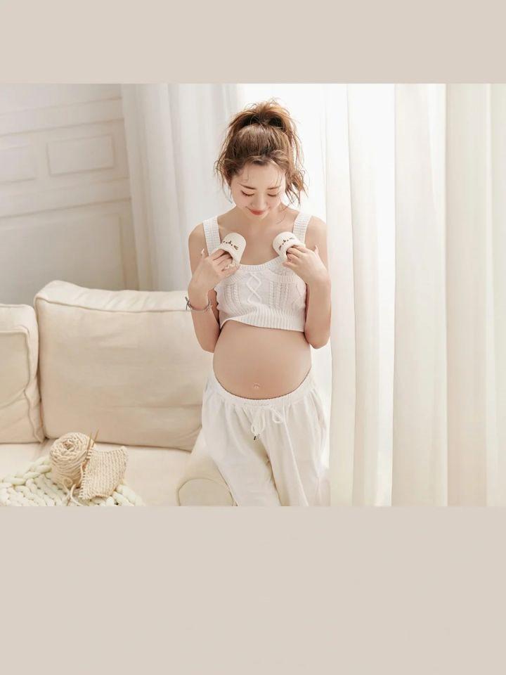 Estudio fotográfico de mujeres embarazadas, exposición de fotos, nueva moda, hermoso arte, traje de punto, ropa para fotografía de madres embarazadas