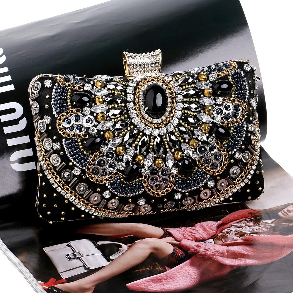 Bolso de noche de gran venta transfronterizo de Amazon AliExpress, bolso de mano de noche para mujer, estilo europeo y americano, con diamantes para banquetes.