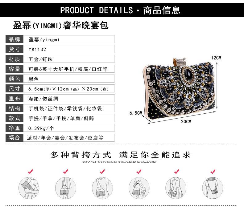 [Stock listo para venta al por mayor] Suministro transfronterizo de Yingmi, bolso de noche con incrustaciones de diamantes, bolso de noche para banquete europeo y americano, bolso de mano para vestir