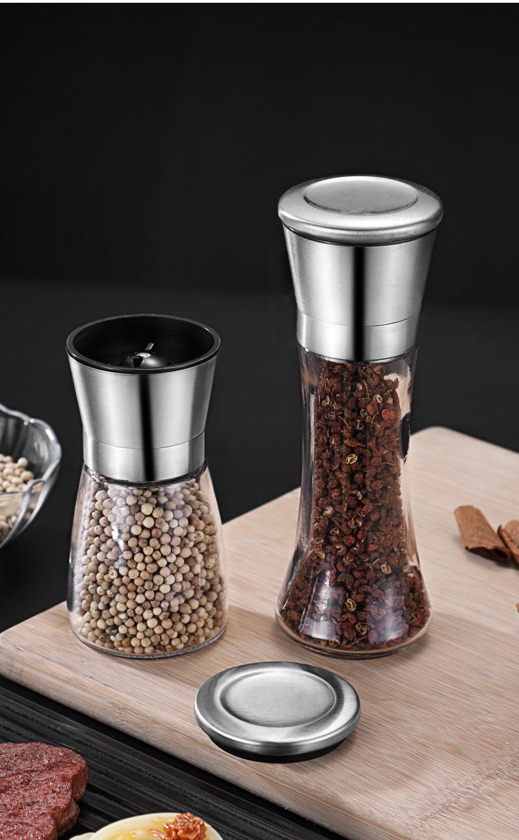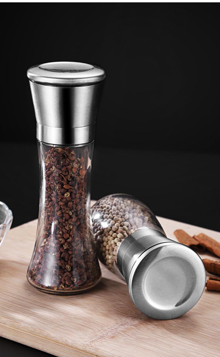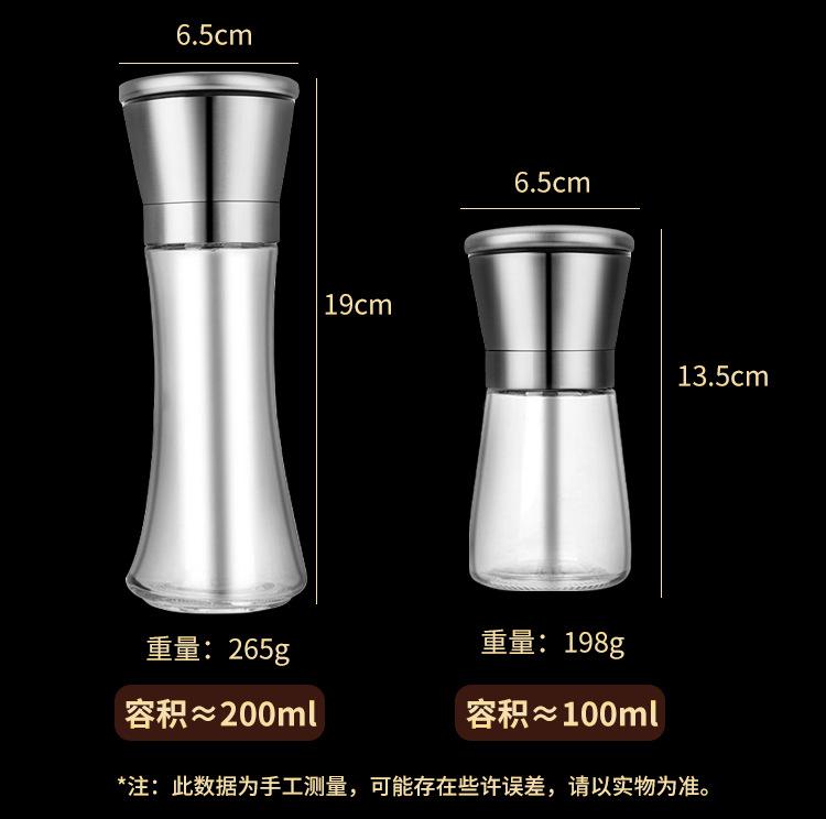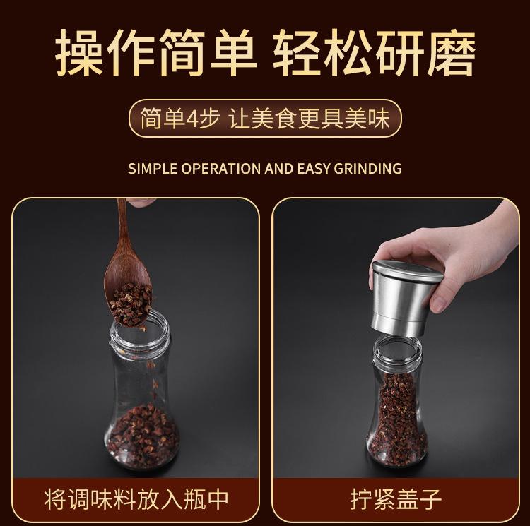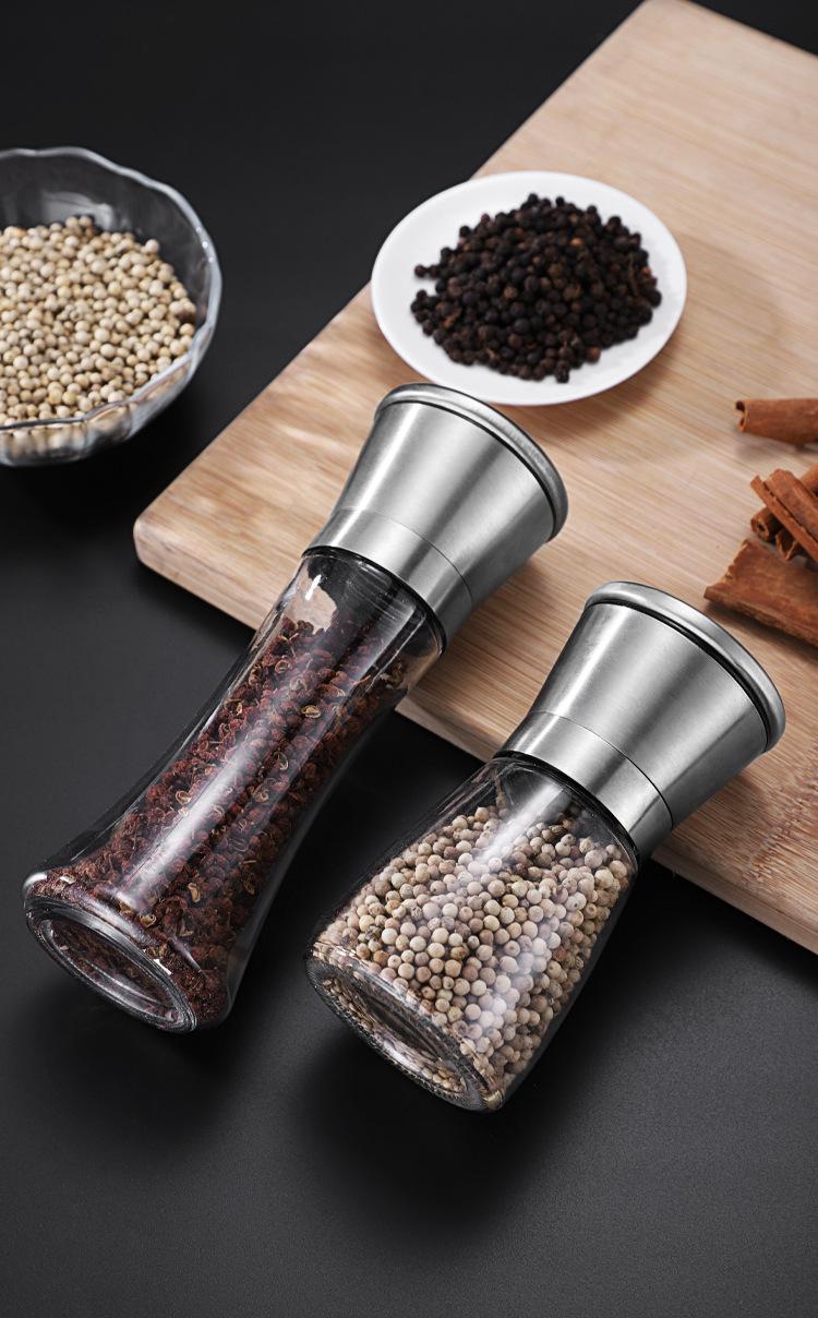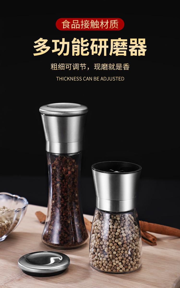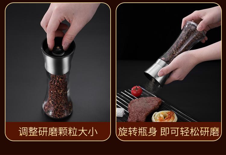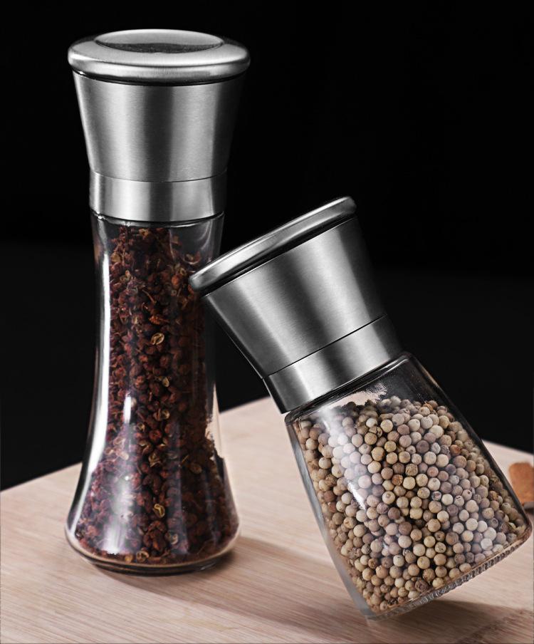 Molinillo de pimienta de acero inoxidable 304, herramienta de molienda manual de cocina, botella de condimento de vidrio creativa, botella para moler pimienta