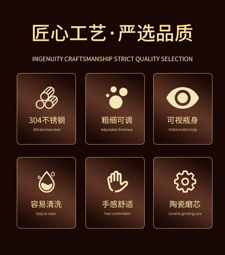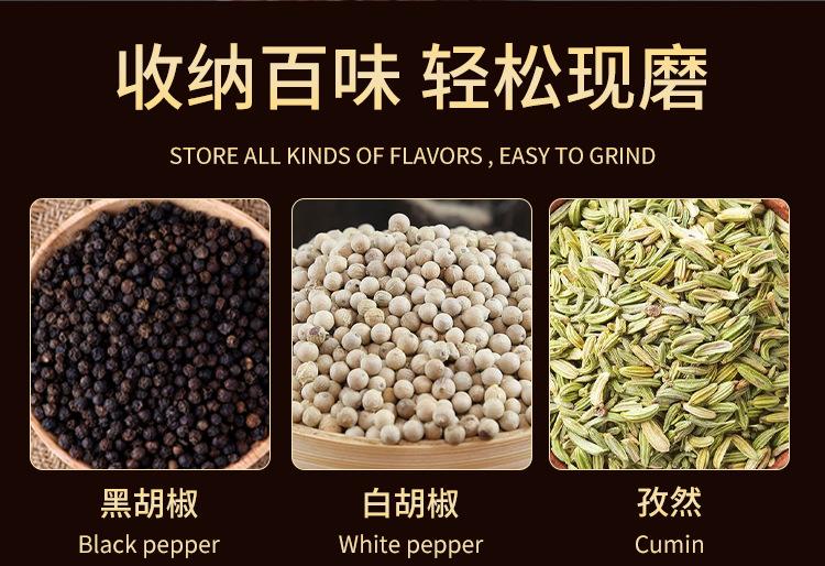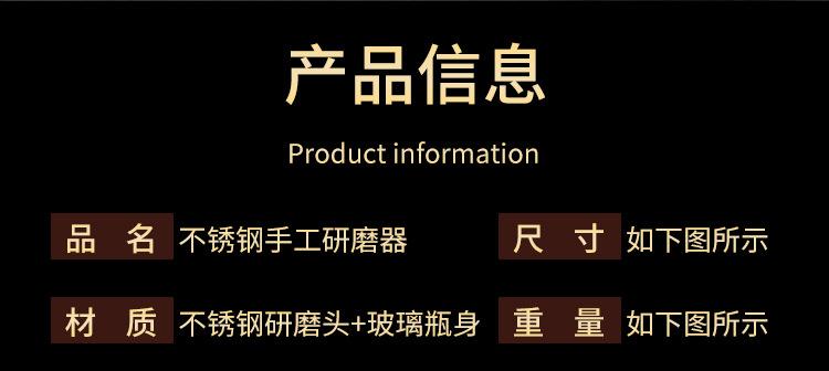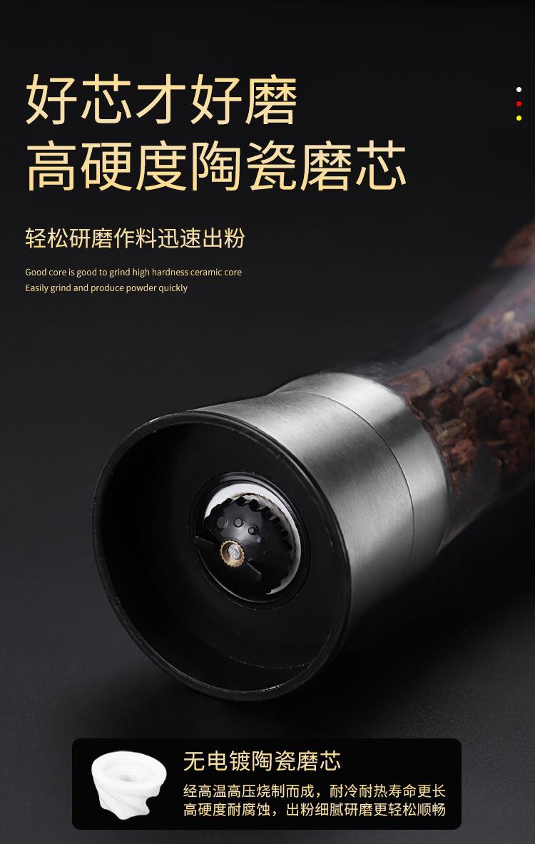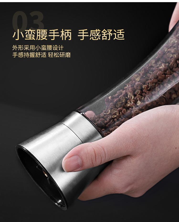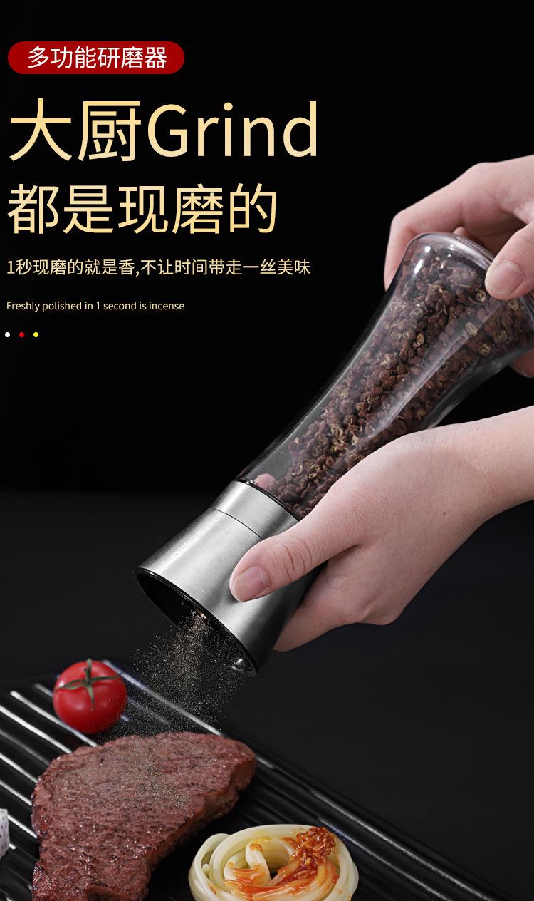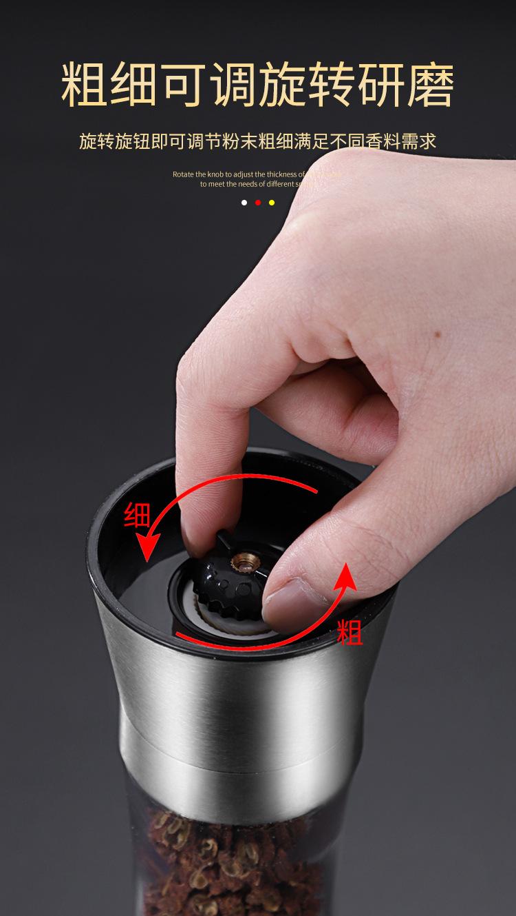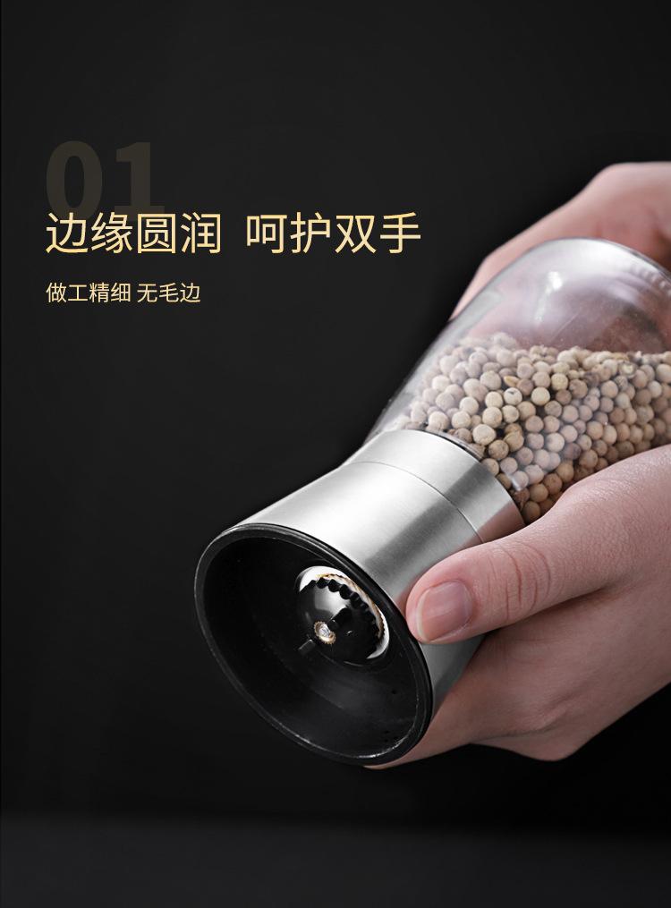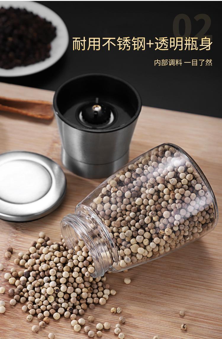 Molinillo de pimienta de acero inoxidable 304, herramienta de molienda manual de cocina, botella de condimento de vidrio creativa, botella para moler pimienta