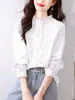 Camisa de gasa azul para mujer, diseño Sense Niche, costuras de encaje sueltas, nuevo estilo 2024, camisa básica antiedad