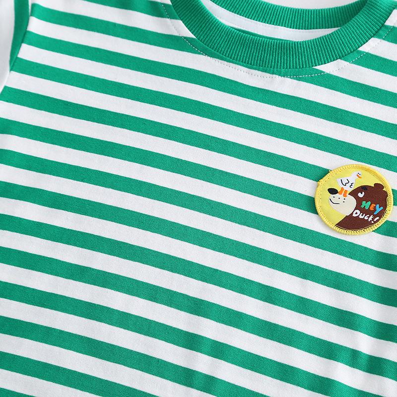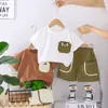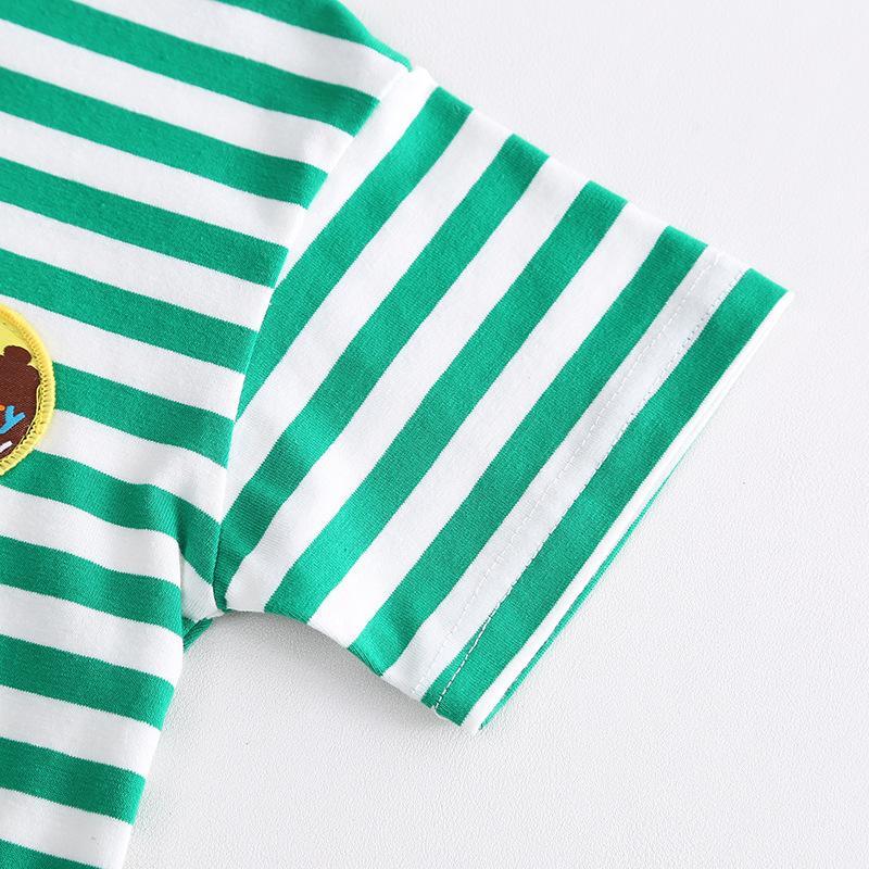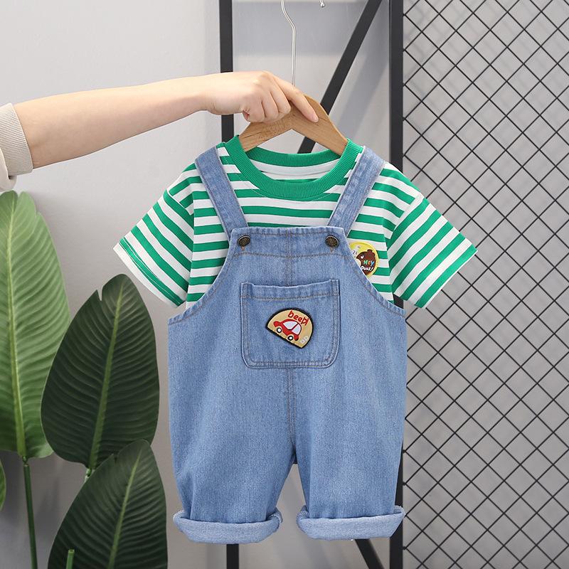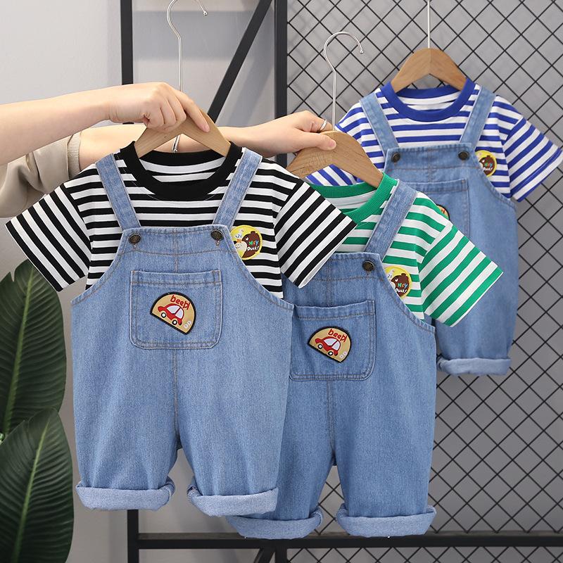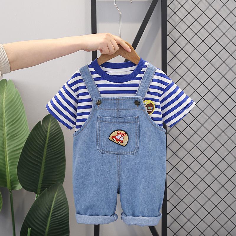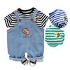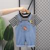 Ropa infantil transfronteriza, nuevo traje de verano a rayas de manga corta para niño, traje infantil para bebé, pantalones con tirantes, traje de dos piezas