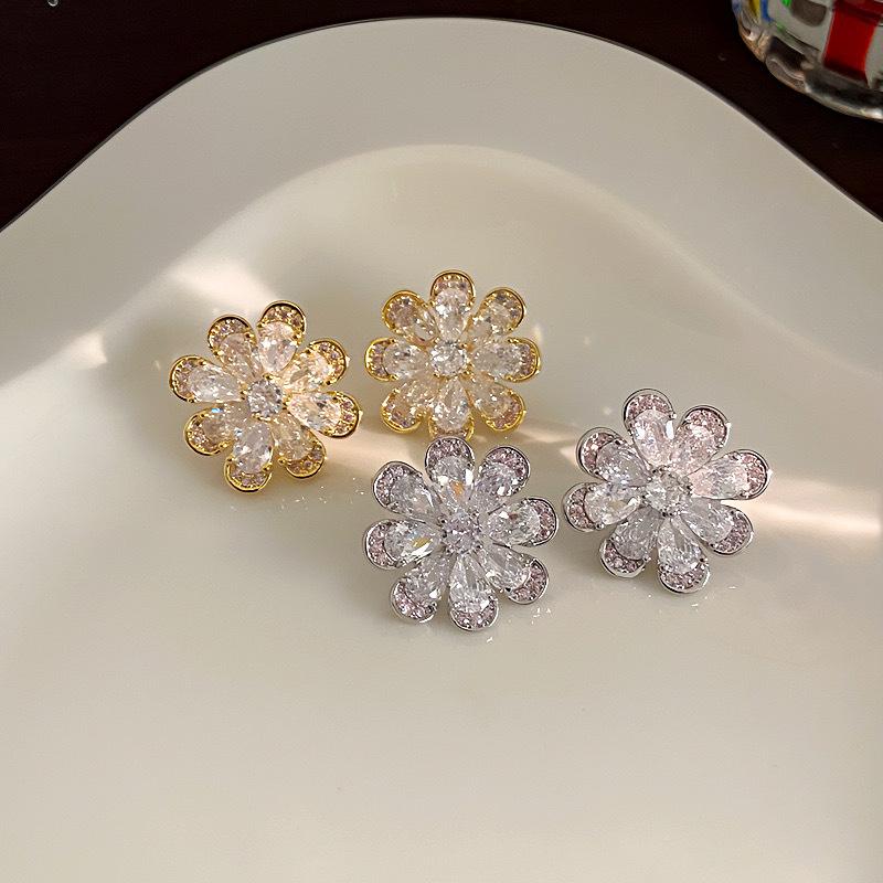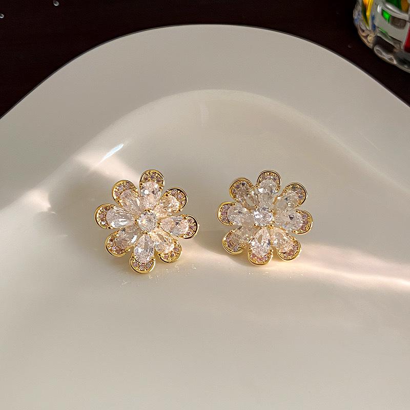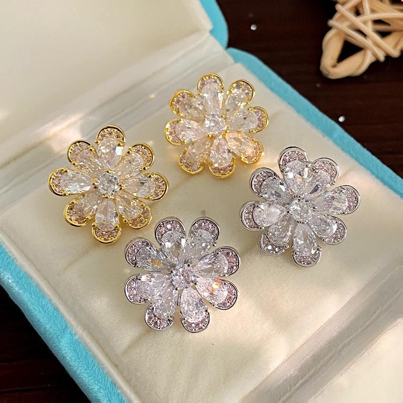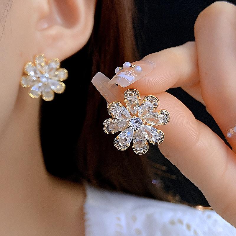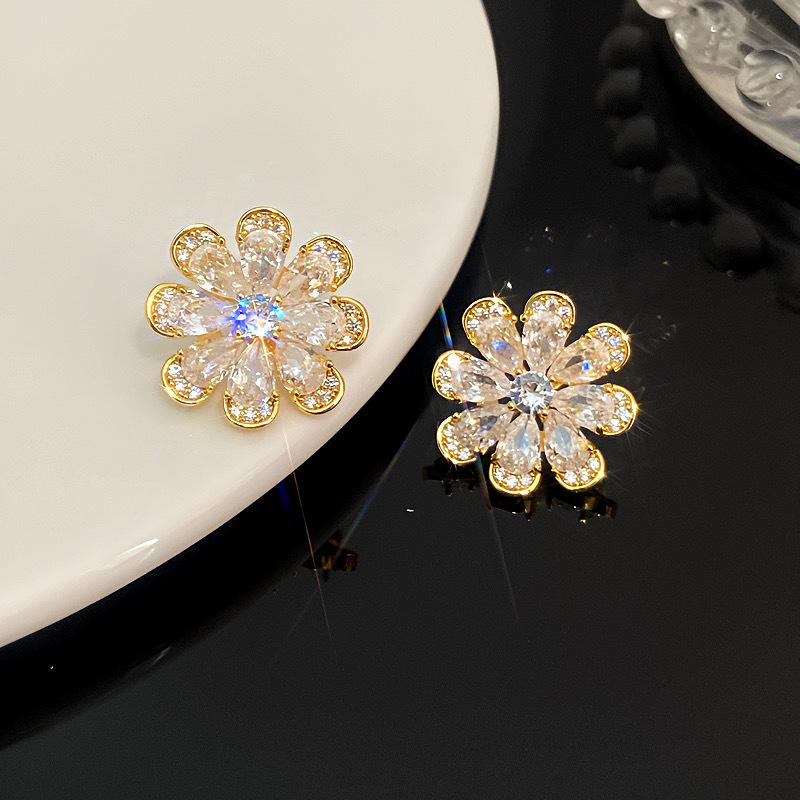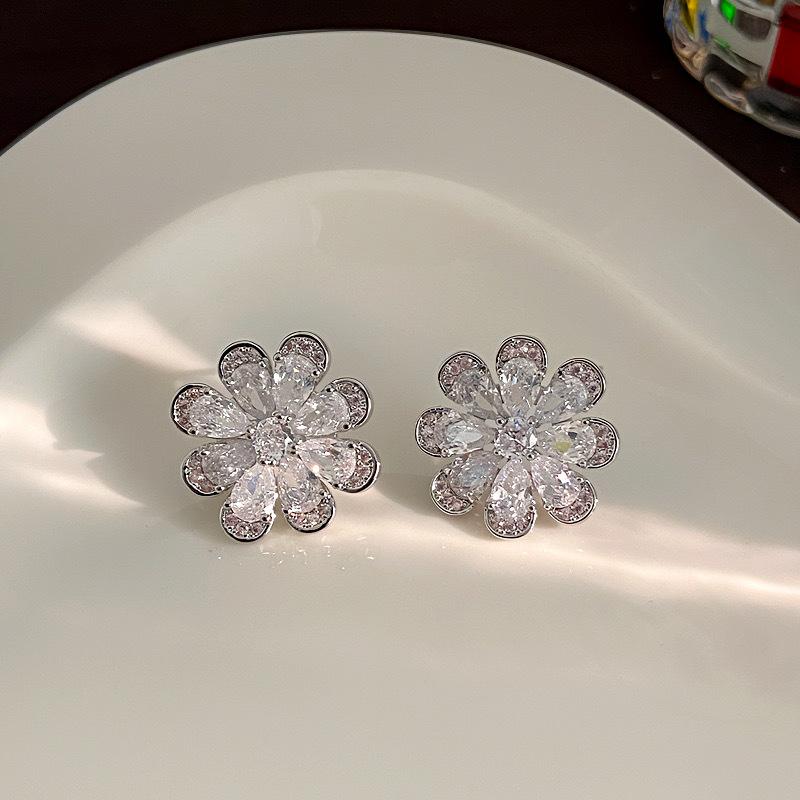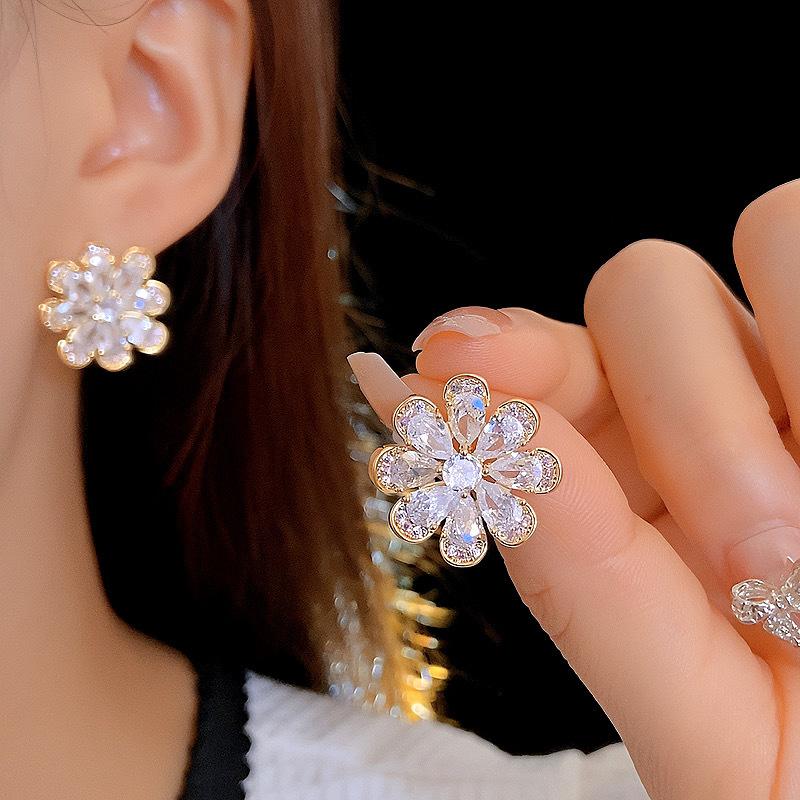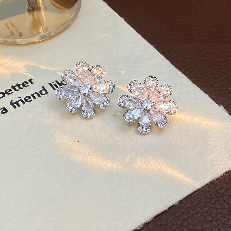 Pendientes de lujo ligeros con forma de flor de cristal y circonita, de Corea del Sur, elegantes y modernos, sencillos, combinables y geniales.