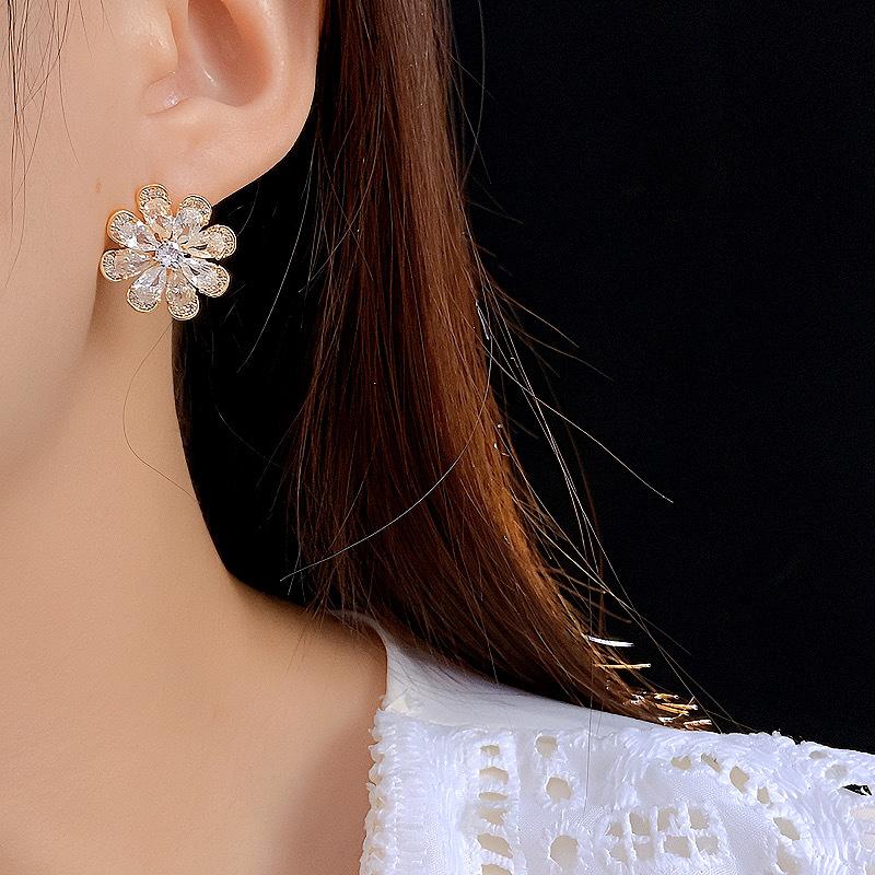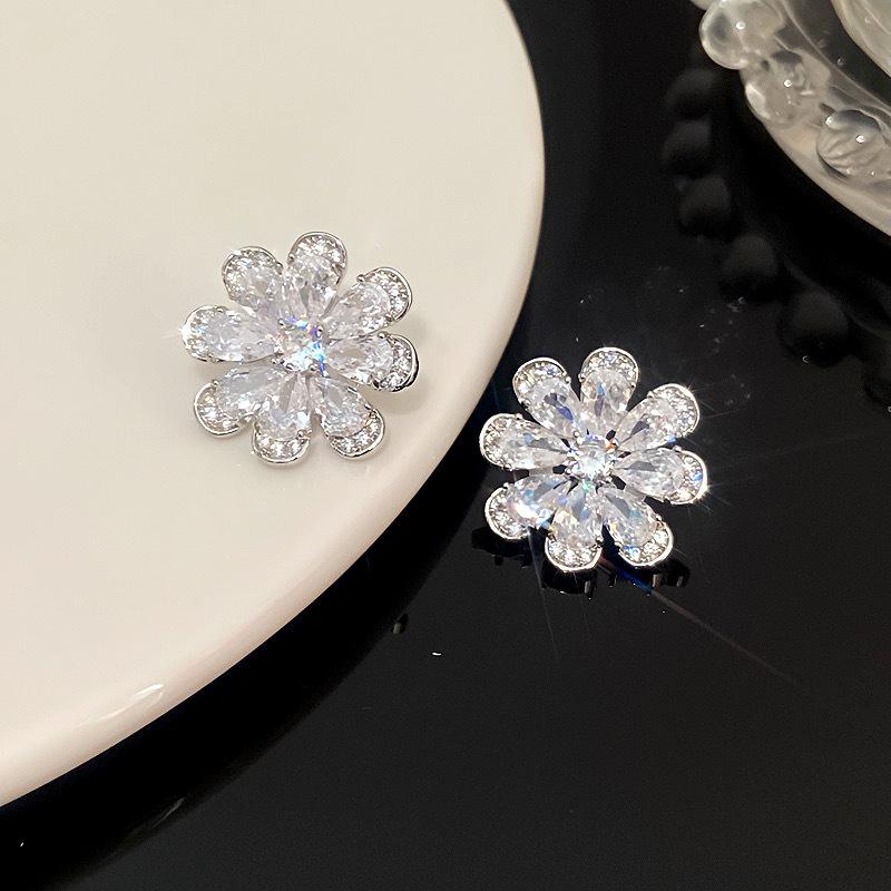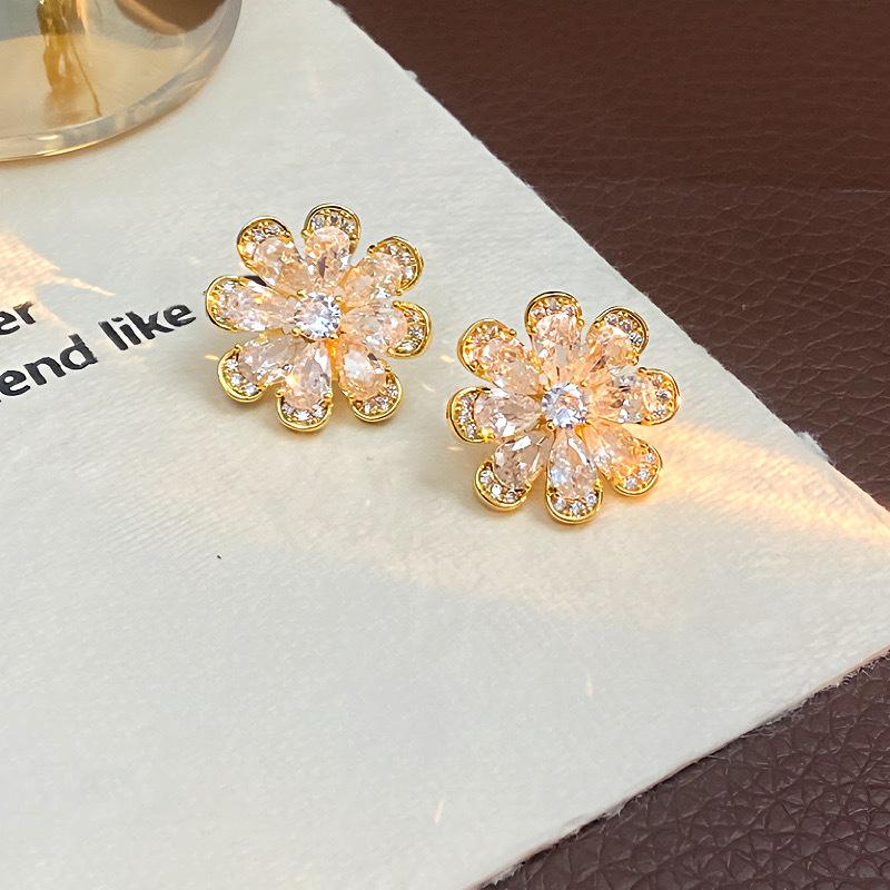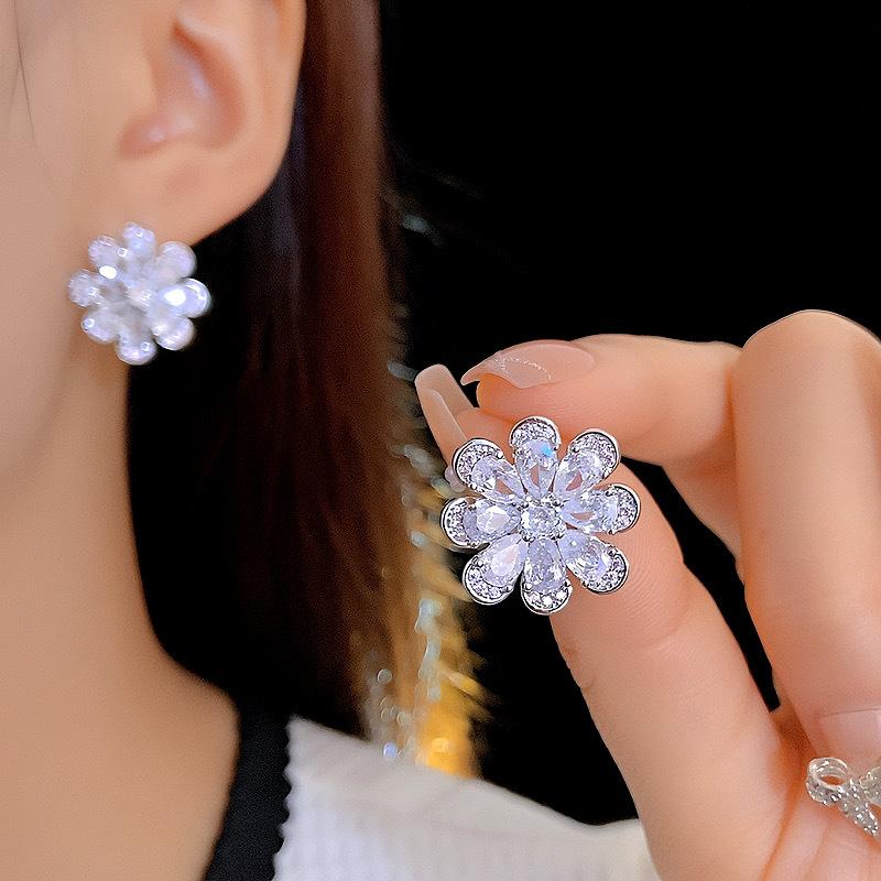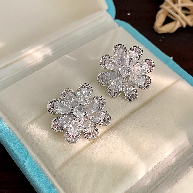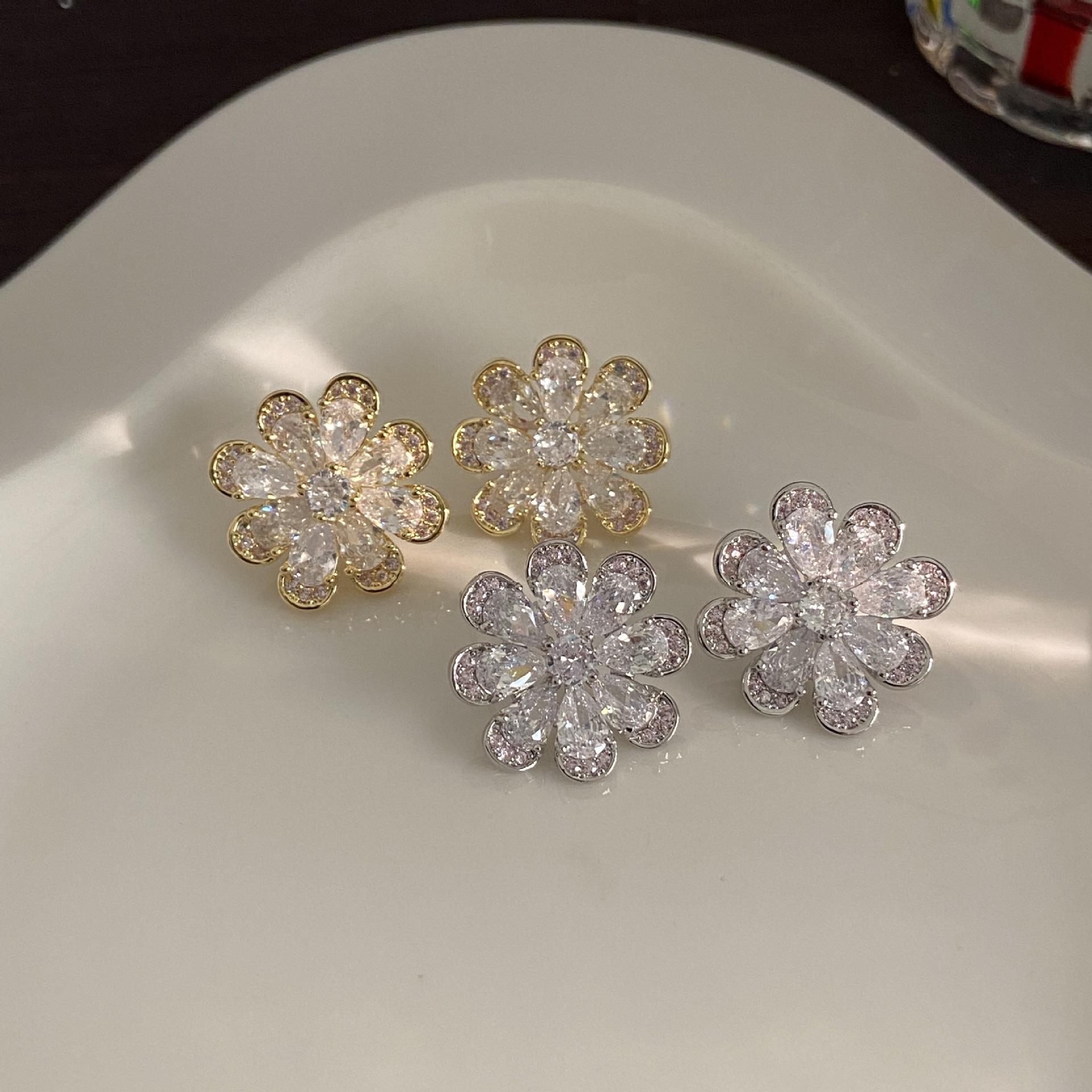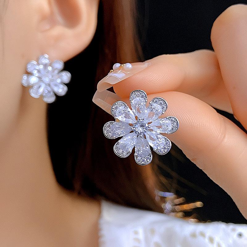 Pendientes de lujo ligeros con forma de flor de cristal y circonita, de Corea del Sur, elegantes y modernos, sencillos, combinables y geniales.