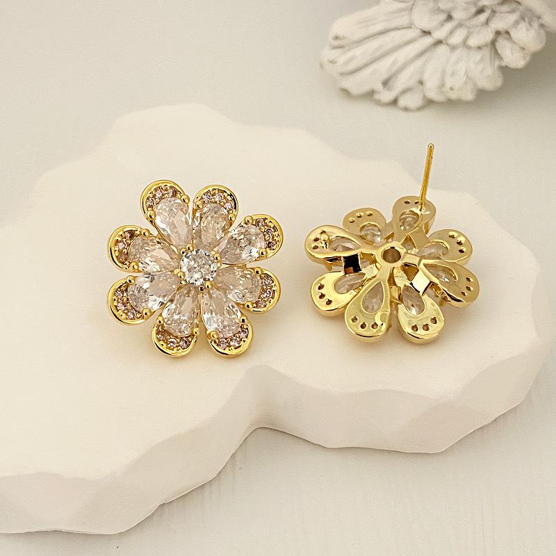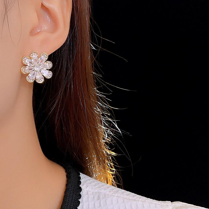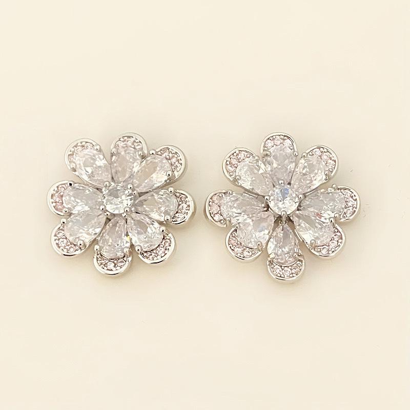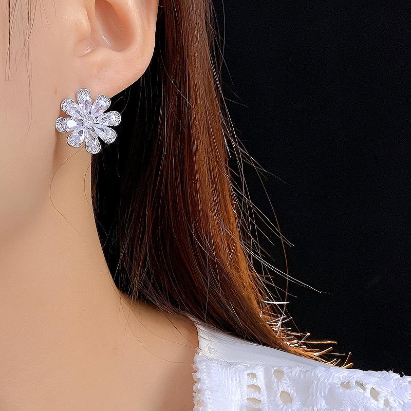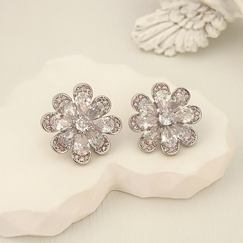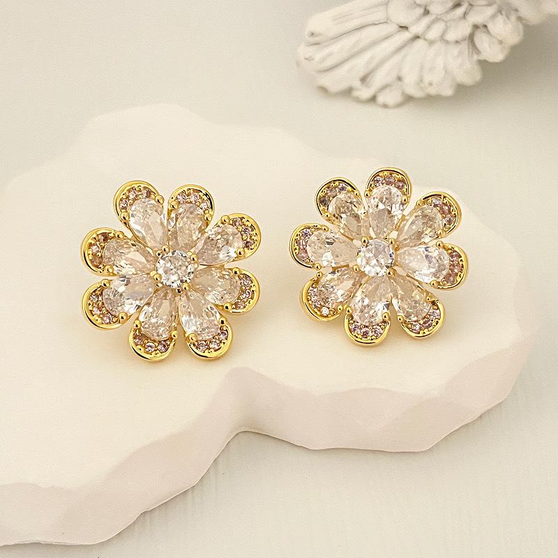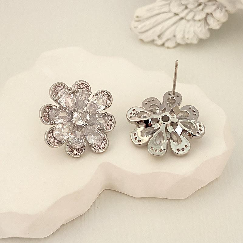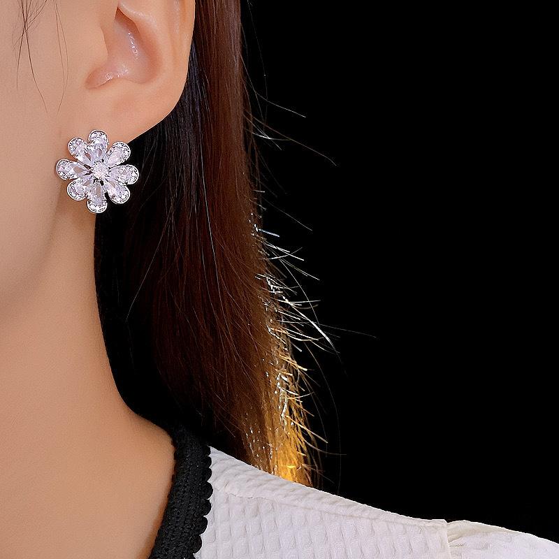 Pendientes de lujo ligeros con forma de flor de cristal y circonita, de Corea del Sur, elegantes y modernos, sencillos, combinables y geniales.