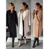 Abrigo de lana cruzado de manga larga sencillo de otoño e invierno de Amazon para mujer
