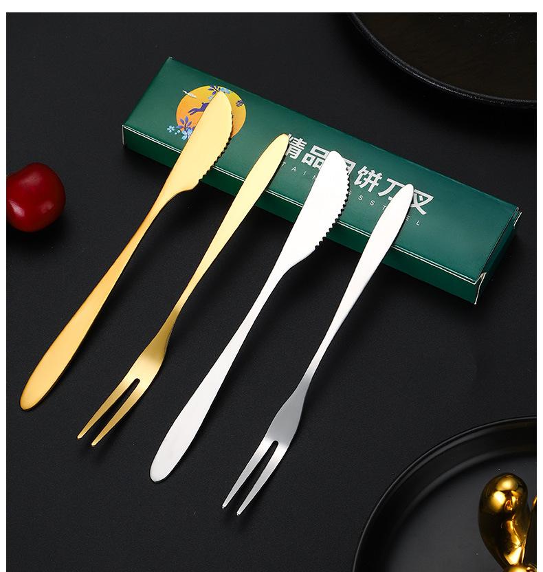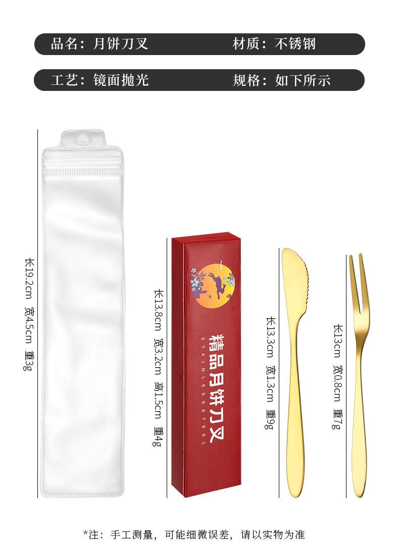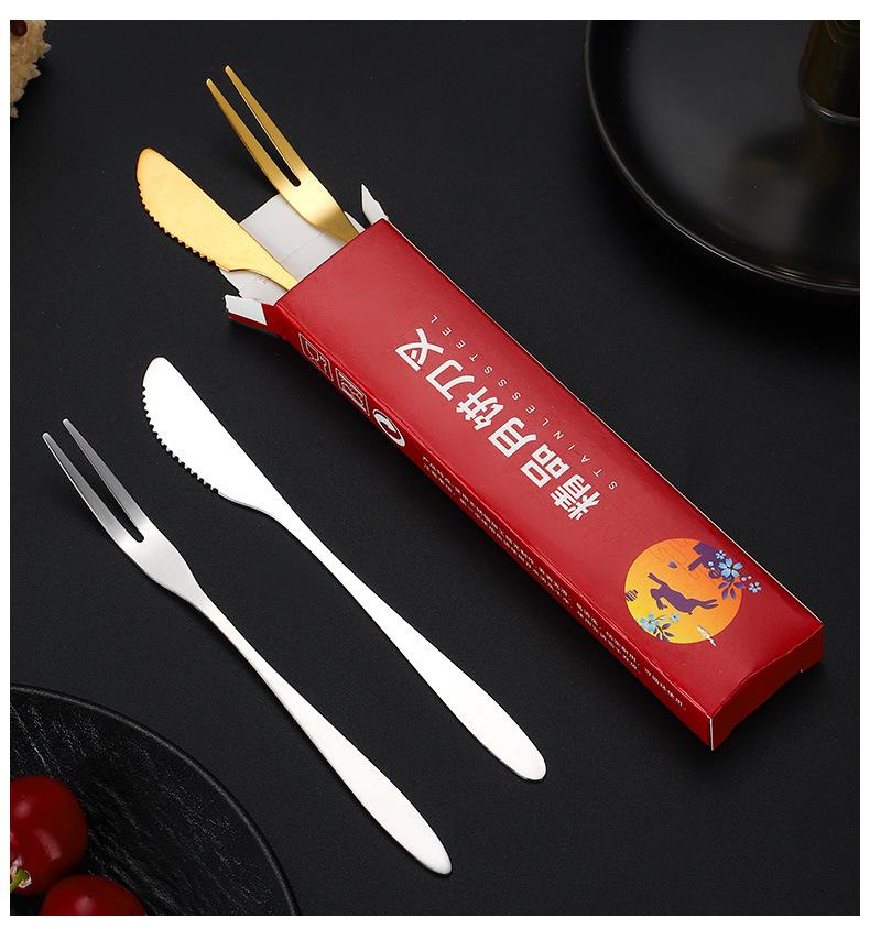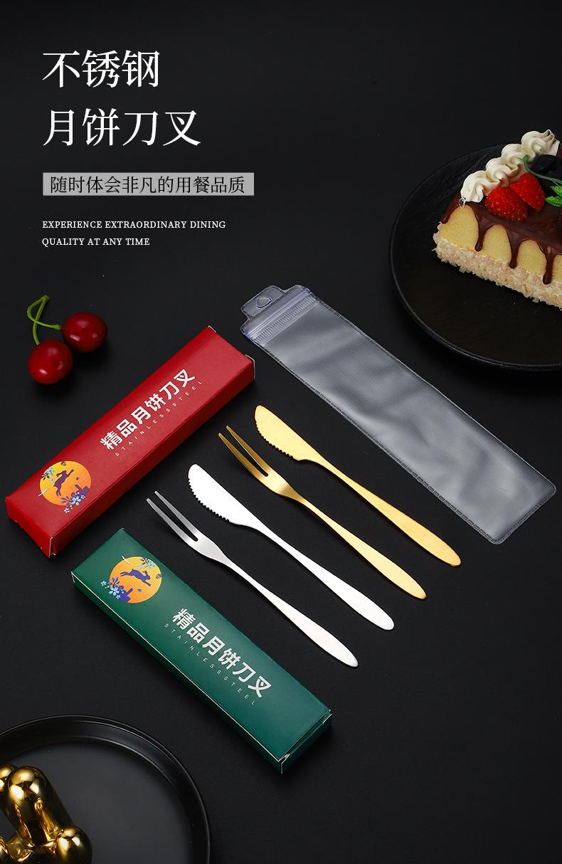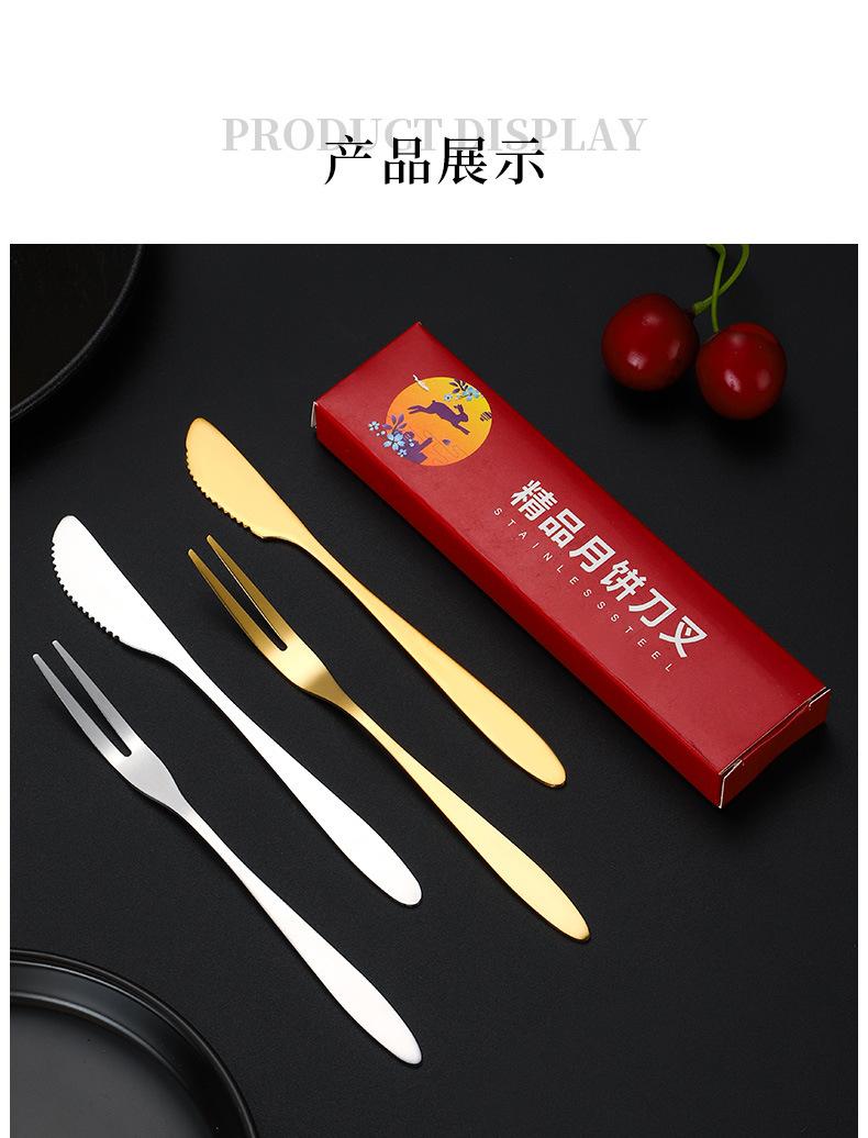 Juego de tenedor y cuchillo para pastel de luna de acero inoxidable Juego de regalos de empresa para hotel del Festival del Medio Otoño Cuchillo para postre Tenedor para fruta Fabricantes Venta al por mayor